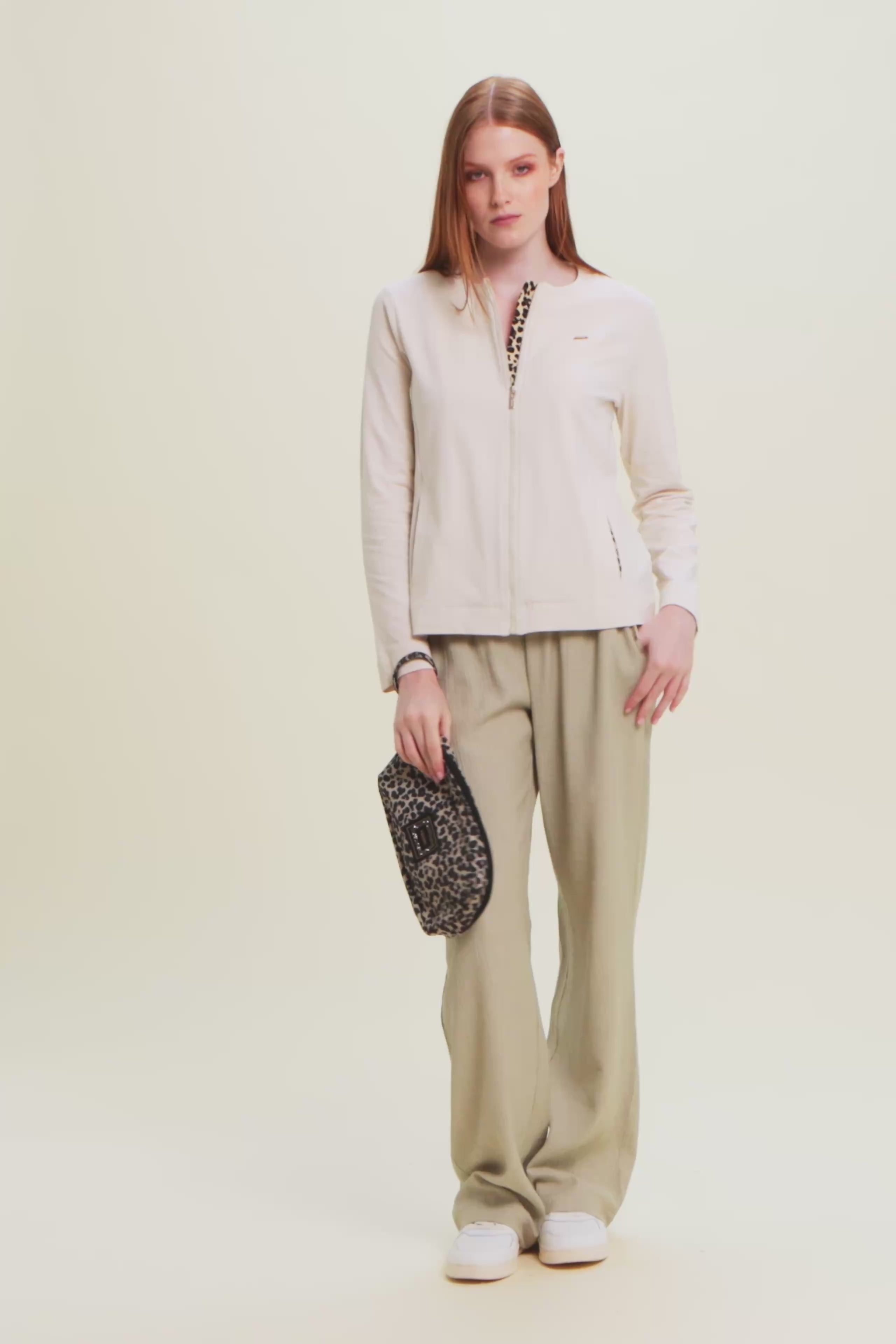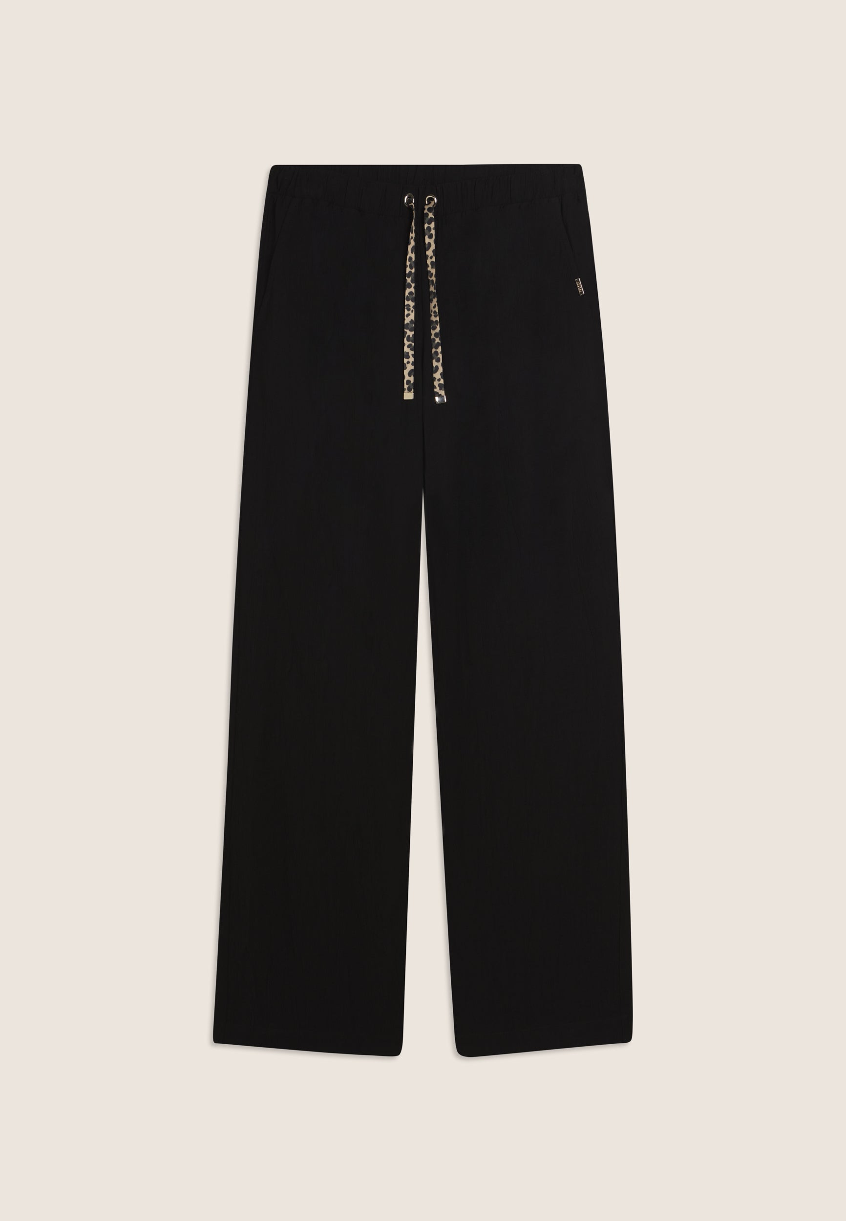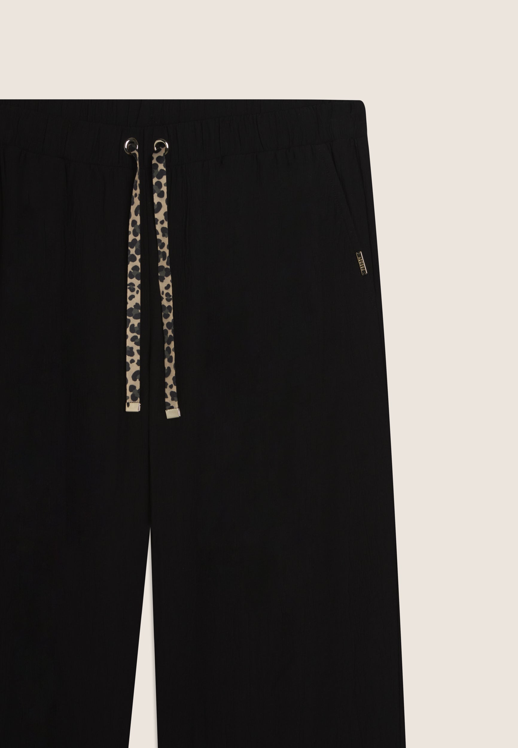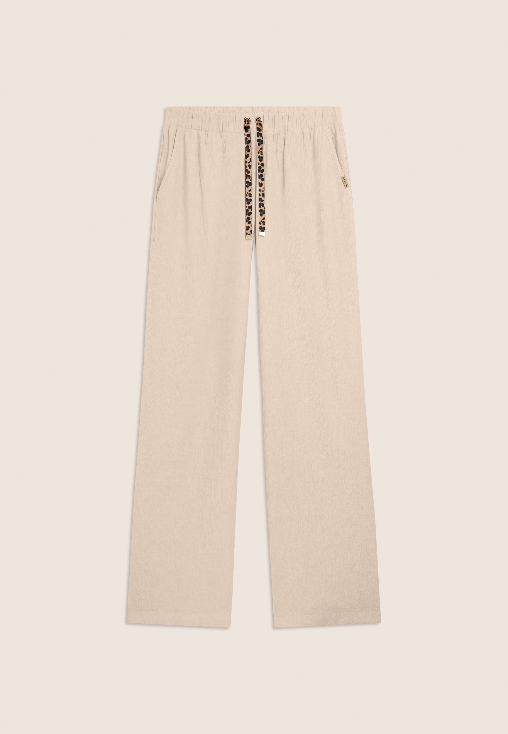 Pantalón largo de mujer con corte holgado y línea suave. La tela crinkle en tejido plano es ligera, fluida y se caracteriza por un elegante efecto arrugado que le confiere movimiento. La cintura regular es ajustable gracias al cordón interior, mientras que los bolsillos al bies añaden practicidad. La placa dorada con el logotipo de Freddy decora discretamente el bolsillo izquierdo. Ideal para los momentos de ocio y los días dinámicos, combina estilo y comodidad.