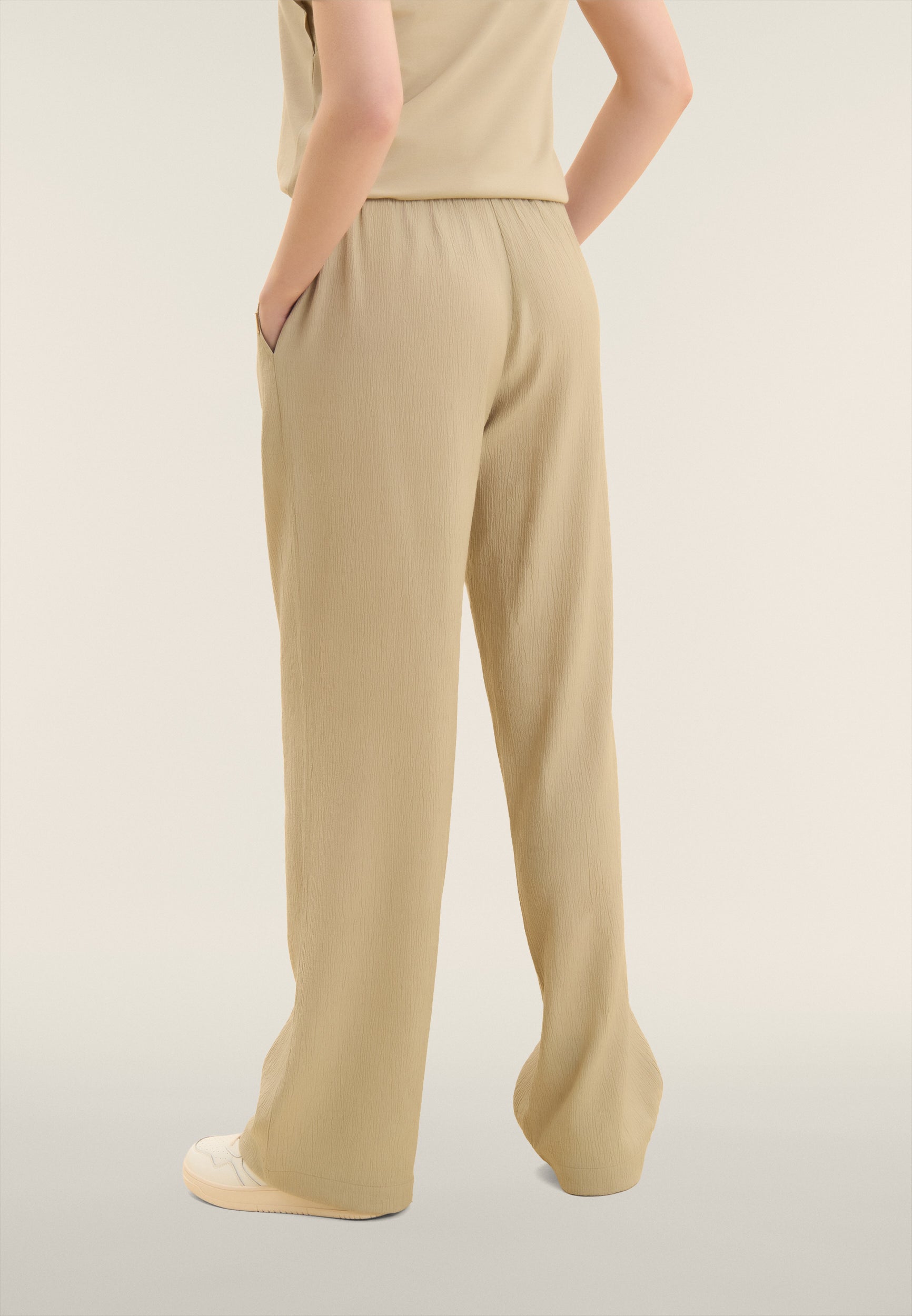 Pantalón de pernera ancha en tejido crinkle fluido