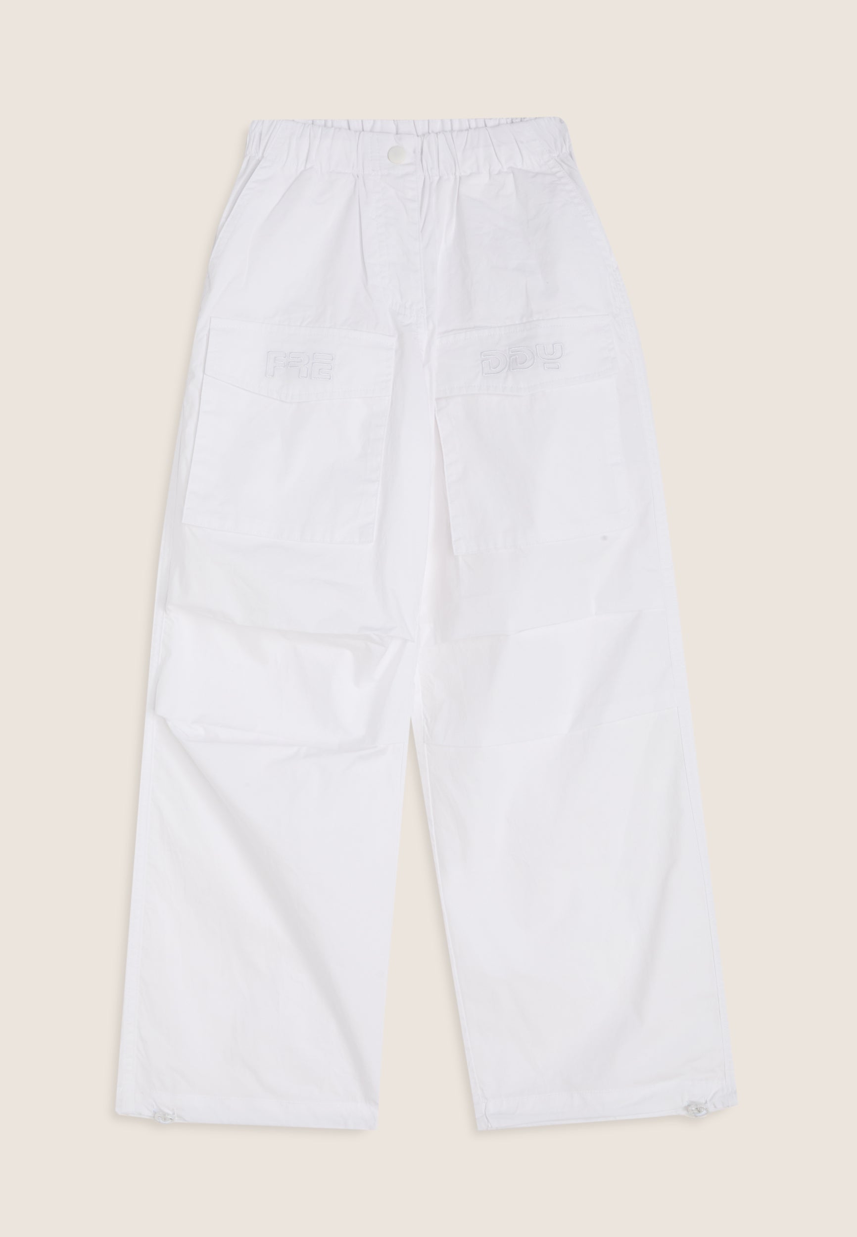 Dal look urbano e disinvolto, questi parachute pants da bambina sono realizzati in leggero popeline di cotone e caratterizzati da una vestibilità oversize comoda e attuale. Il design presenta tasche anteriori interne alla francese e ampi tasconi cargo con patta, applicati sul fronte coscia e sul retro, per uno stile deciso e funzionale. La gamba ampia è regolabile al fondo con coulisse e stopper, per un fit personalizzabile. La vita è rifinita con elastico interno e chiusura con bottone a occhiello. Il logo FREDDY è ricamato in modo originale, metà su ciascun tascone anteriore, per un tocco distintivo e creativo.