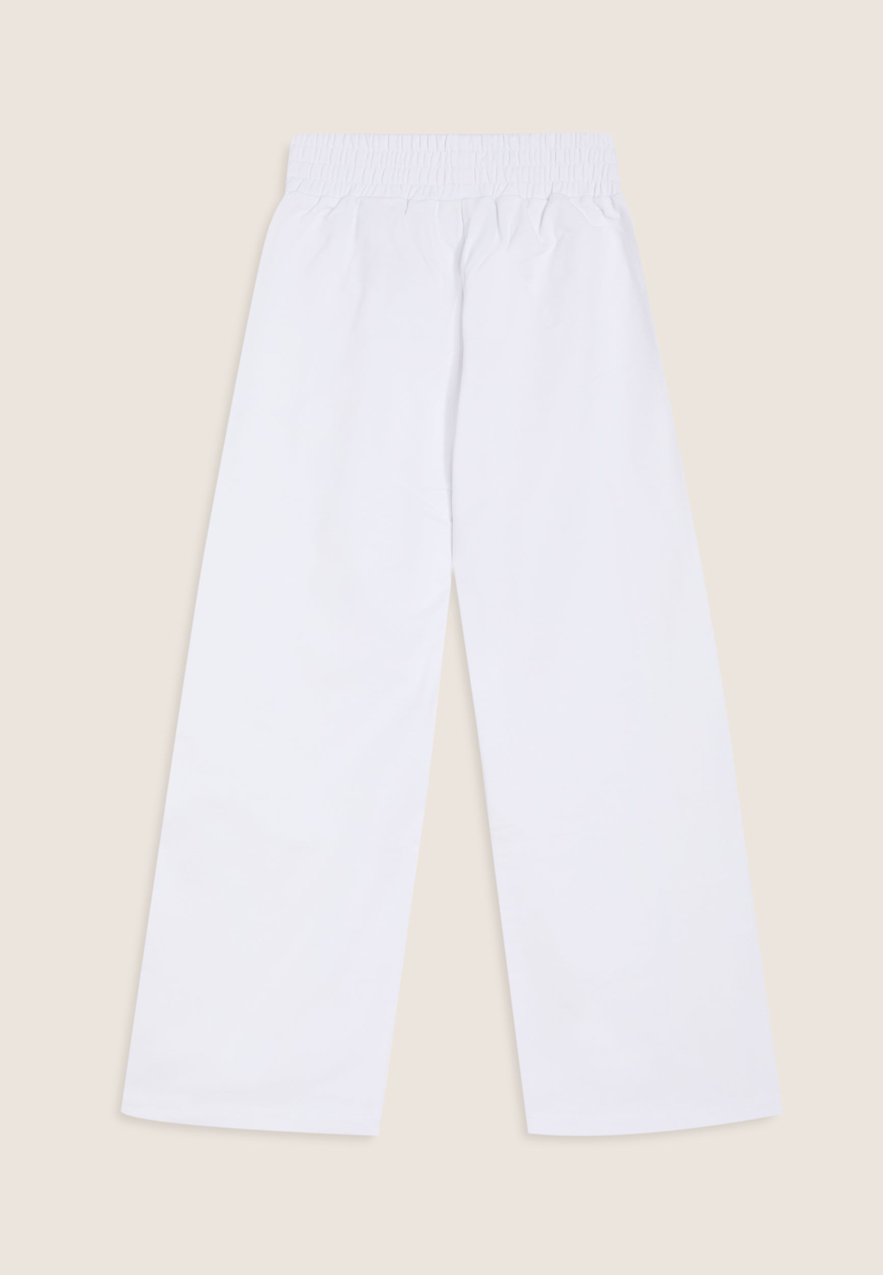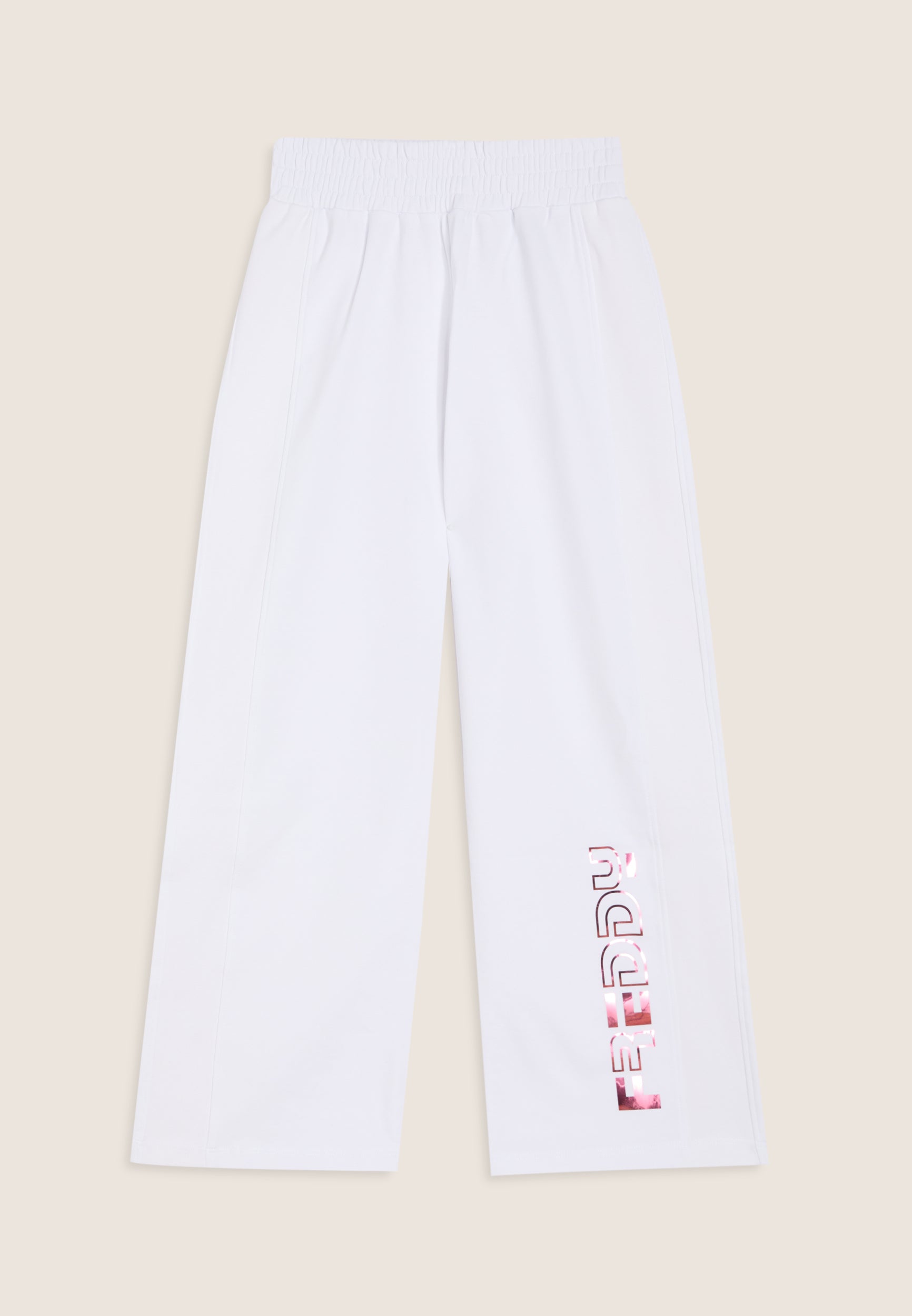 Dallo stile essenziale ma ricercato, questi pantaloni wide leg da bambina sono realizzati in morbido cotone elasticizzato per garantire comfort e libertà nei movimenti. La linea ampia della gamba è valorizzata da cuciture decorative lungo la lunghezza, che slanciano la figura mantenendo un tocco contemporaneo. La vita con elastico interno assicura una vestibilità pratica e confortevole. Il dettaglio distintivo è il logo FREDDY con texture fantasia stampato in verticale sul fondo gamba sinistro, per un look sportivo ma curato nei minimi dettagli.