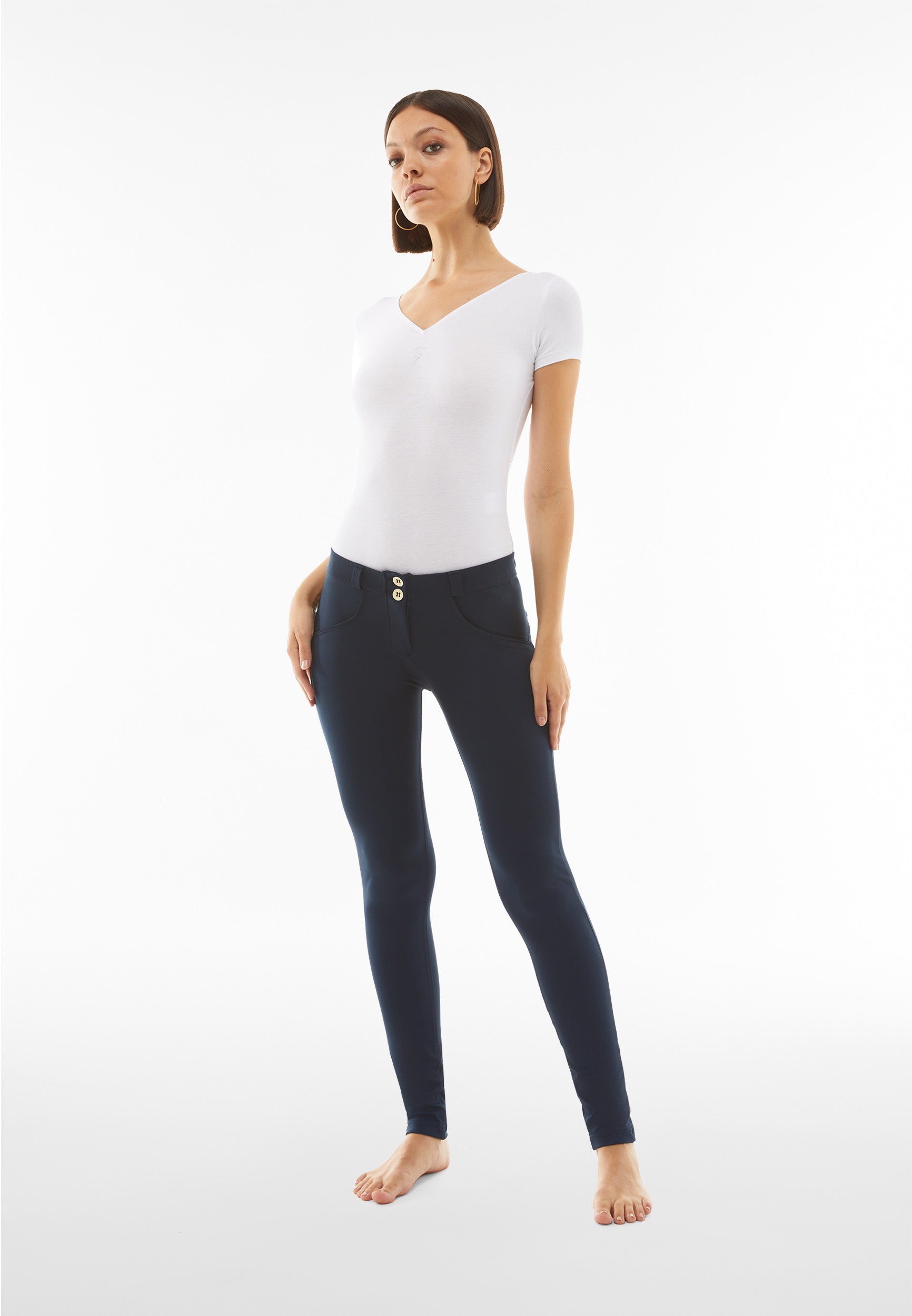 Pantalón push-up de la línea WR.UP® de tejido técnico transpirable sostenible, perfecto para poner de relieve tu belleza en cualquier ocasión. El modelo presenta cintura regular con cierre de dos botones, trabillas, largo regular y ajuste pitillo para un agradable ceñido a las líneas del cuerpo.