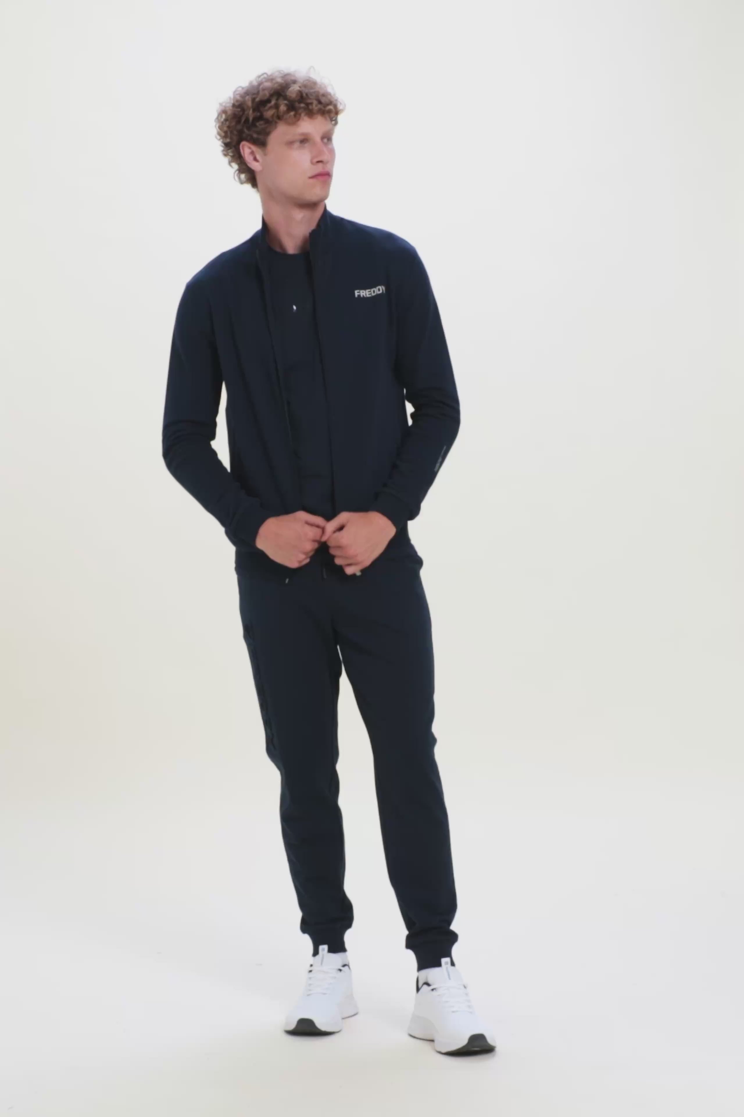 Este pantalón deportivo para hombre presenta corte ajustado y puños acanalados. Cintura acanalada con cordón ajustable. Presenta bolsillos delanteros al bies y un bolsillo trasero de parche. El maxilogotipo Freddy en relieve en el muslo derecho añade carácter al look. El tejido interlock elástico garantiza comodidad y un ajuste perfecto.