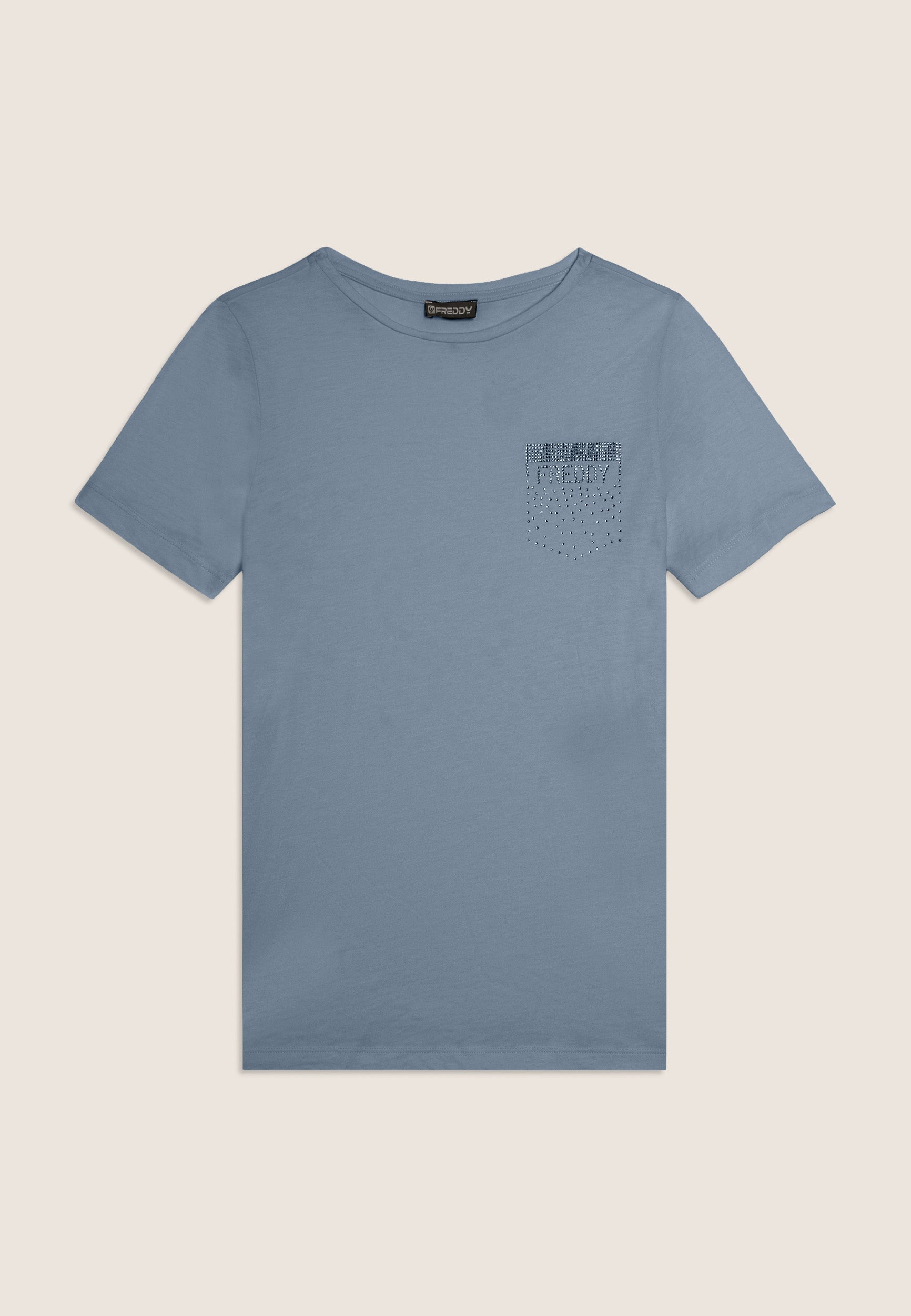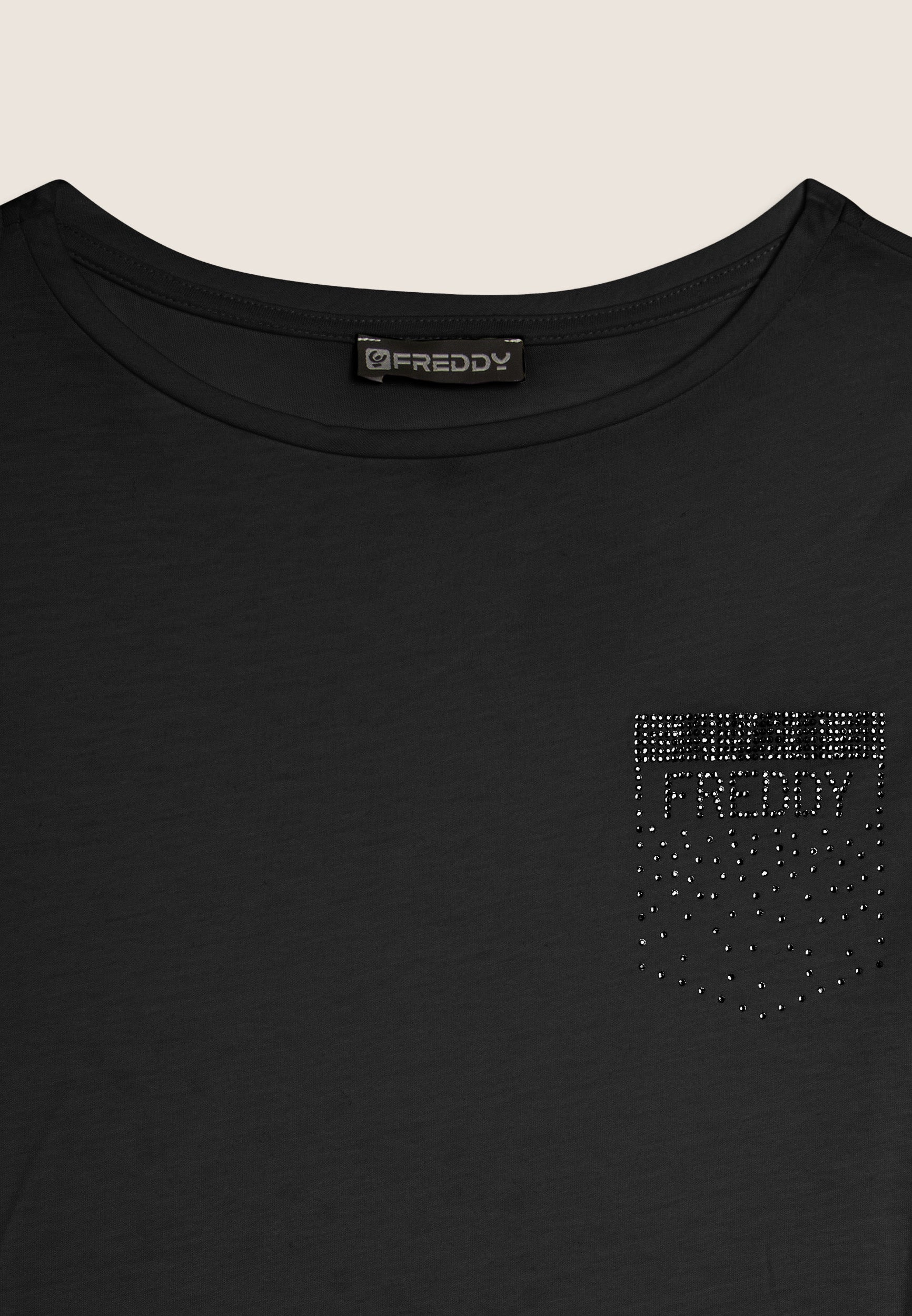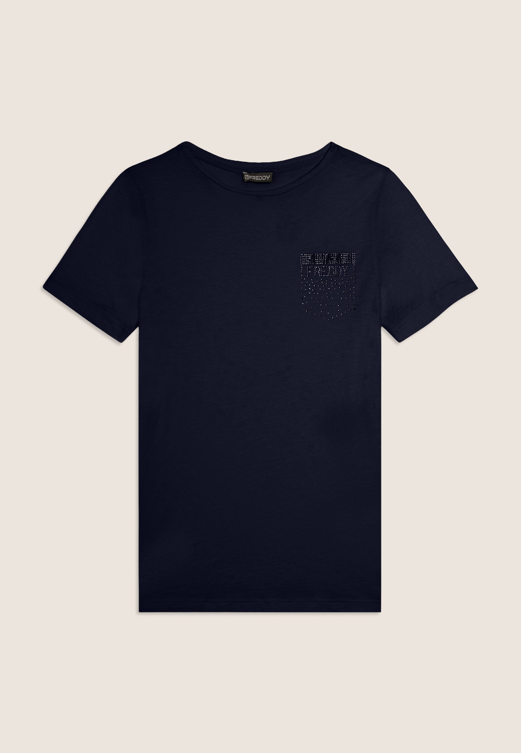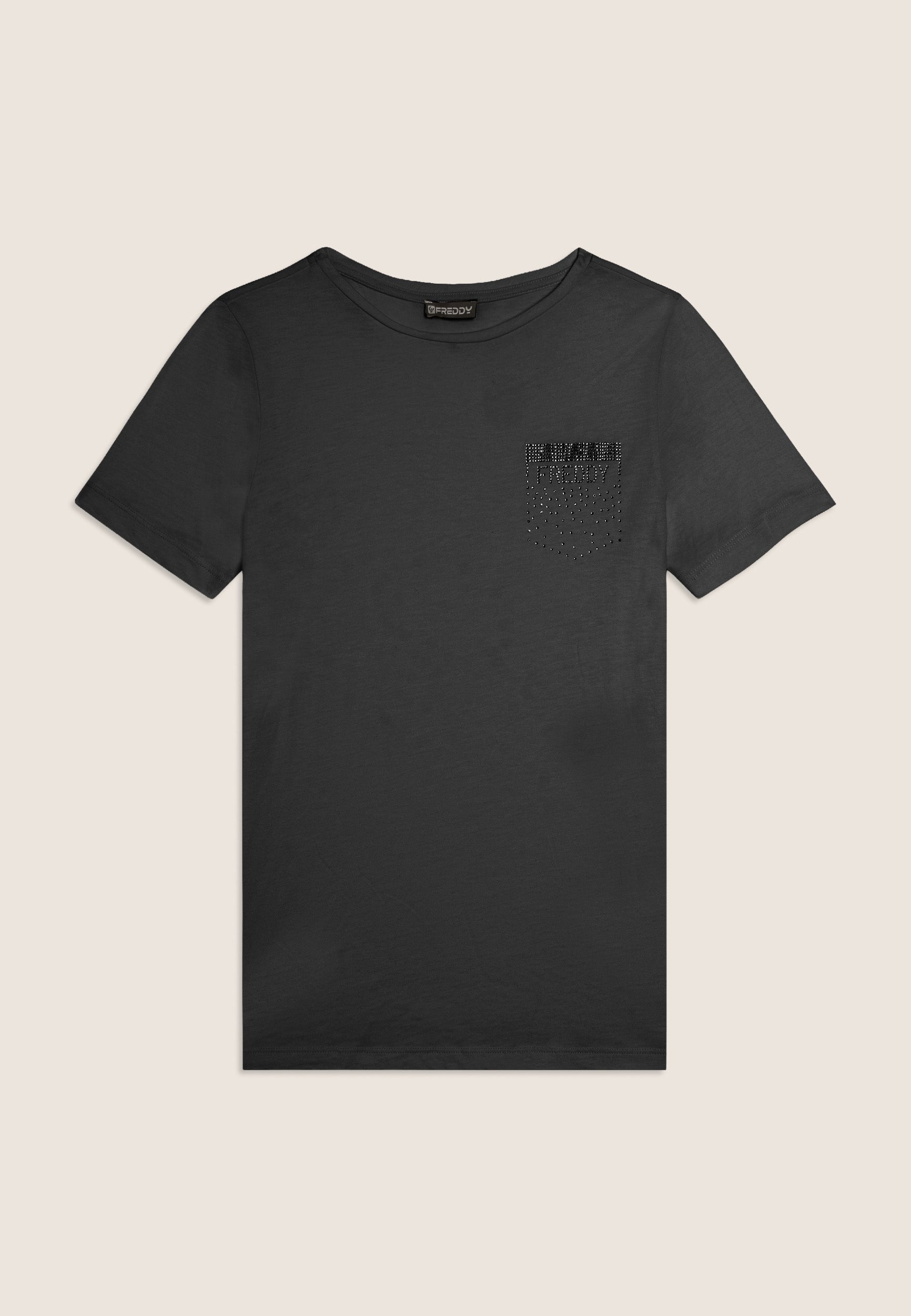 T-shirt manica corta con strass a forma di taschino FREDDY