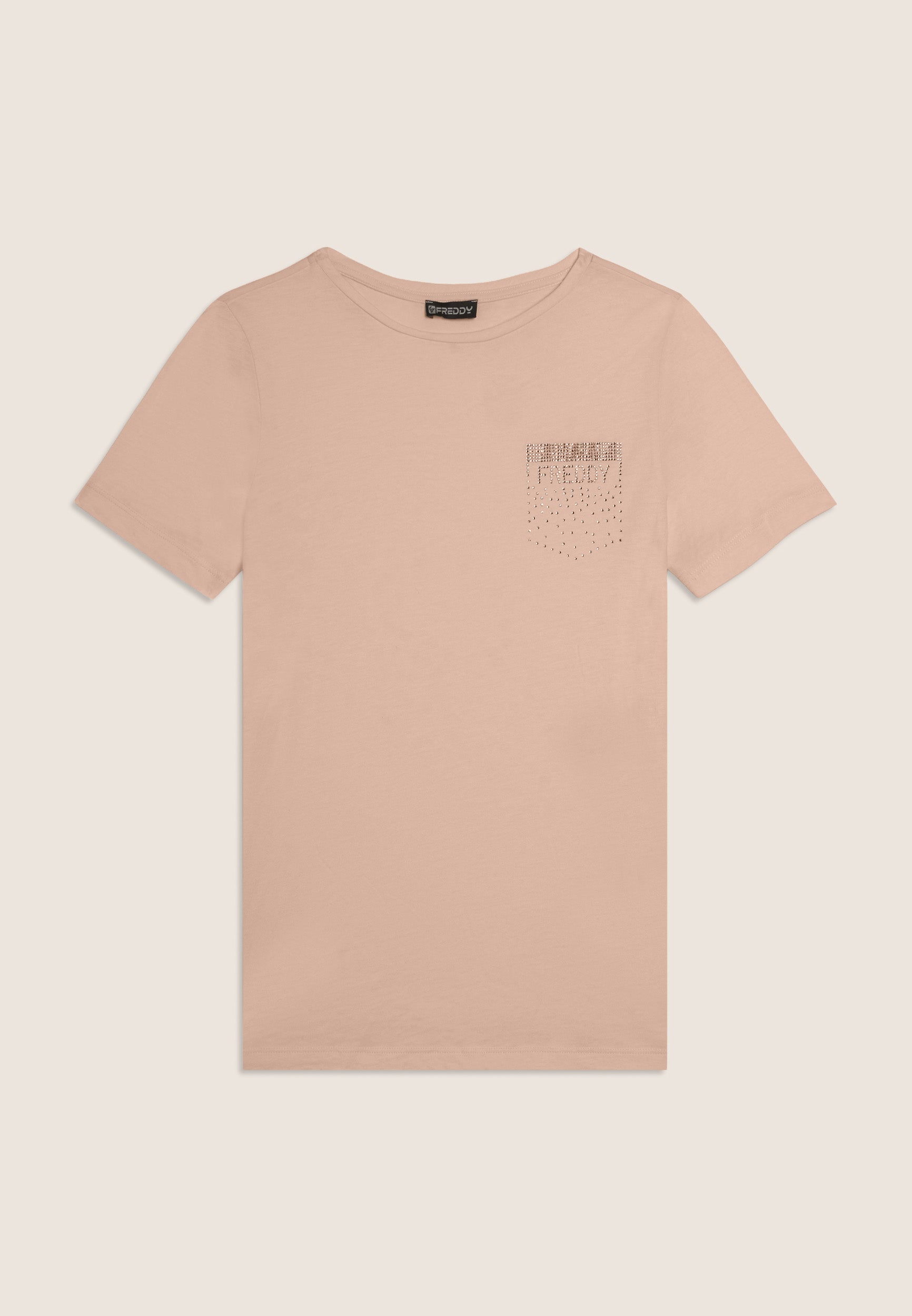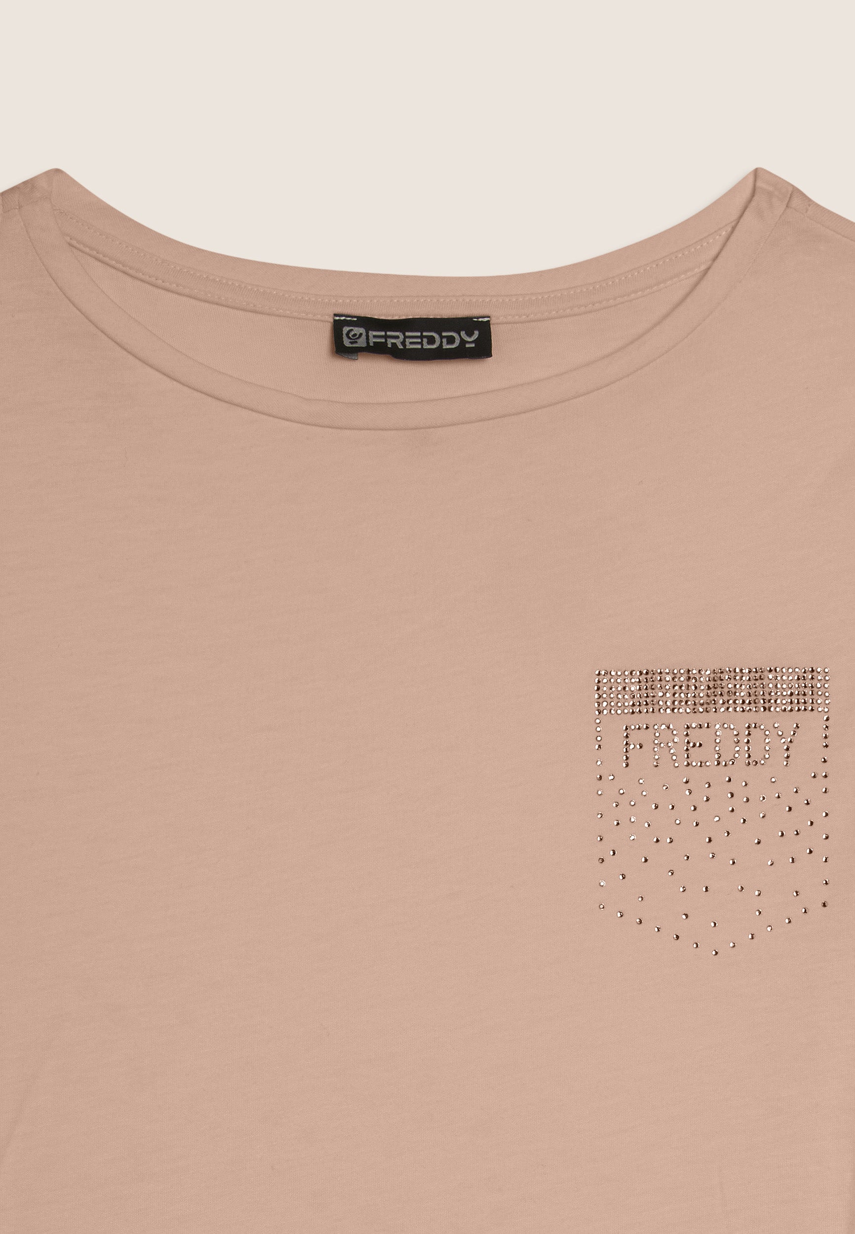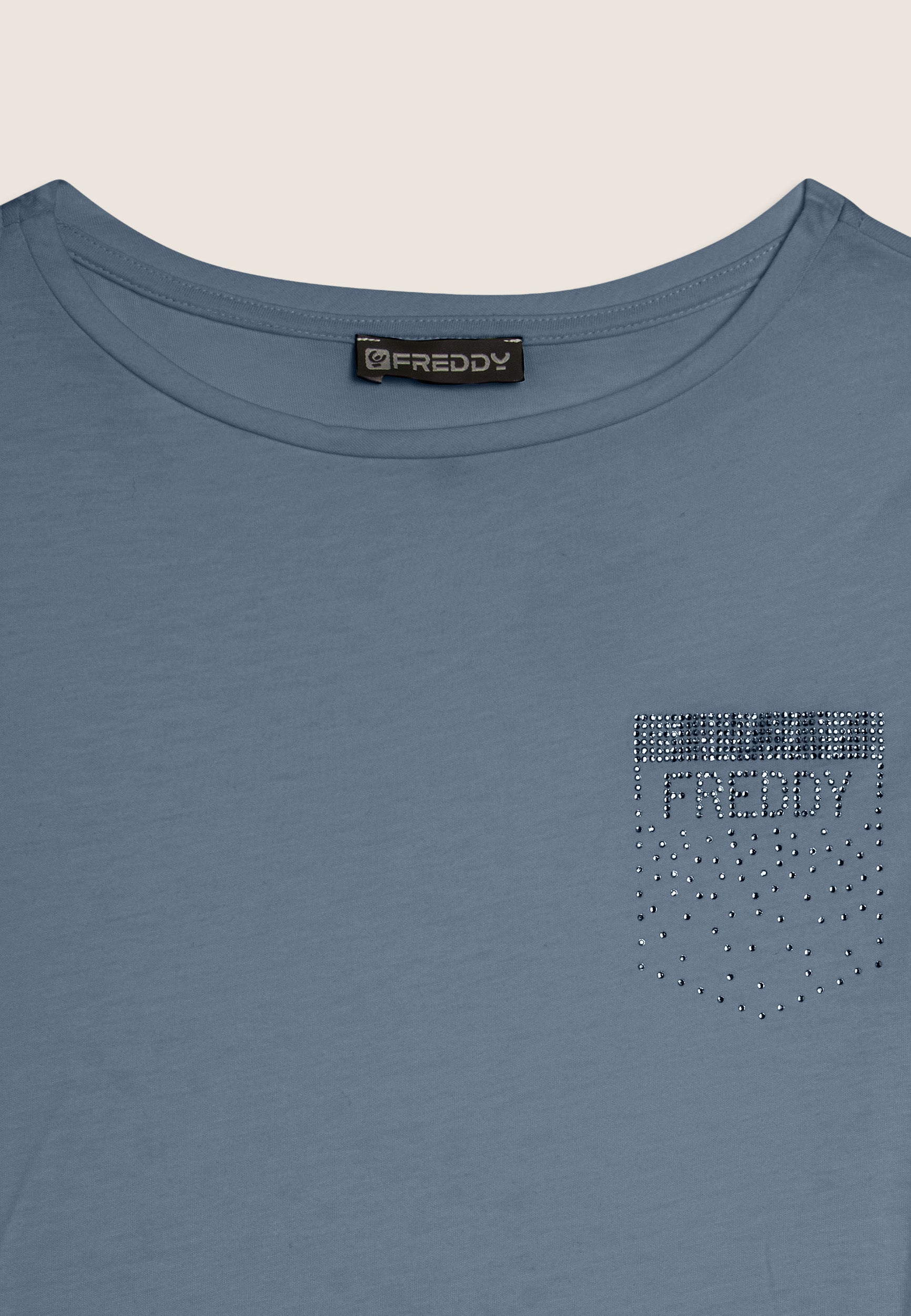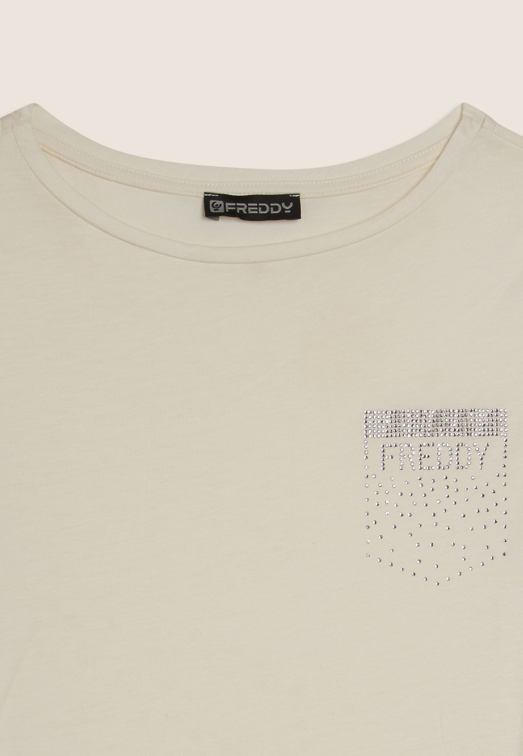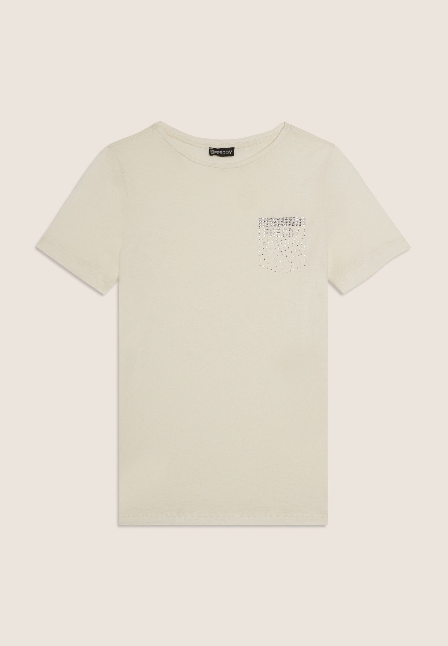 T-shirt manica corta con strass a forma di taschino FREDDY