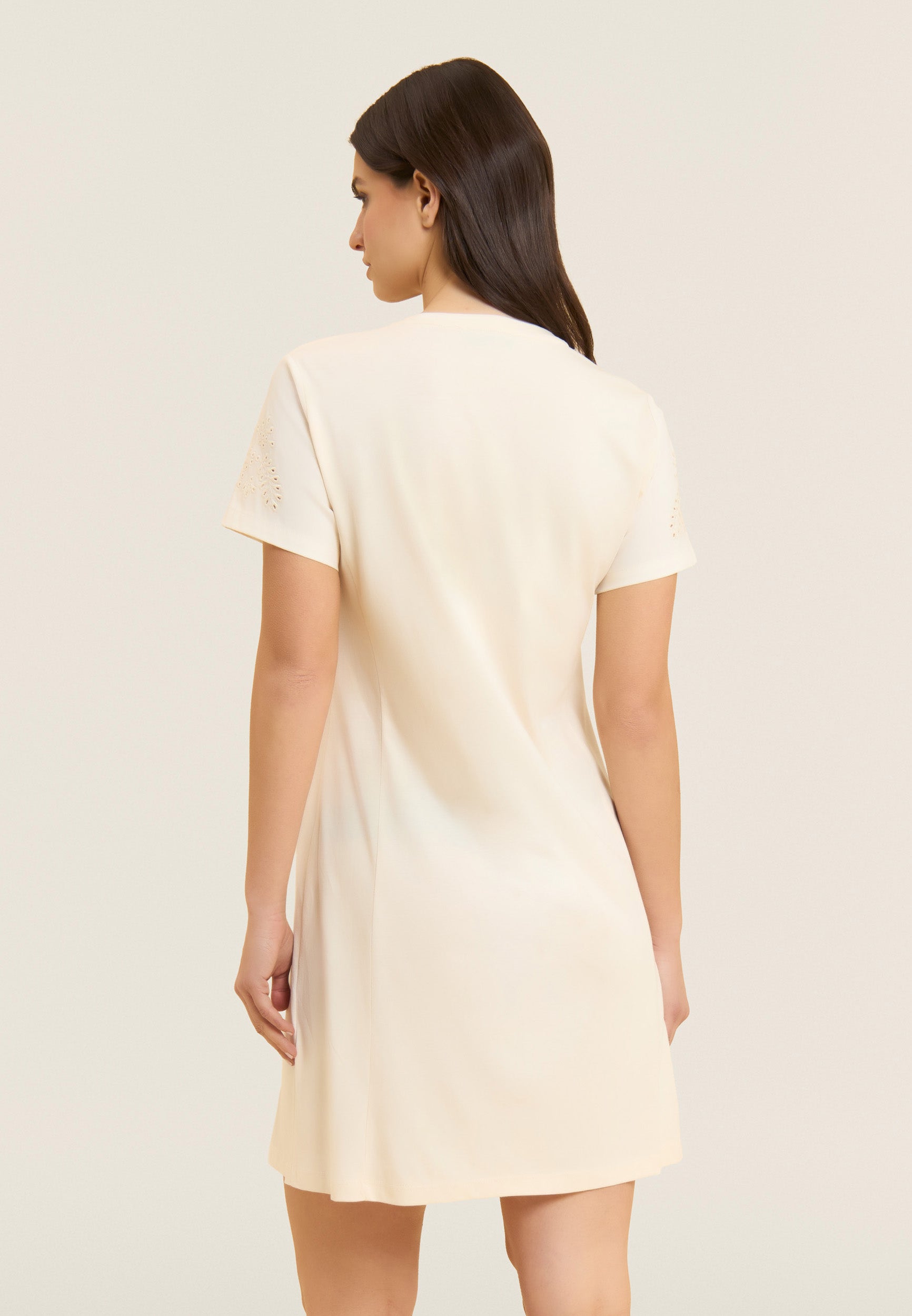 Vestido con bordado suizo en las mangas