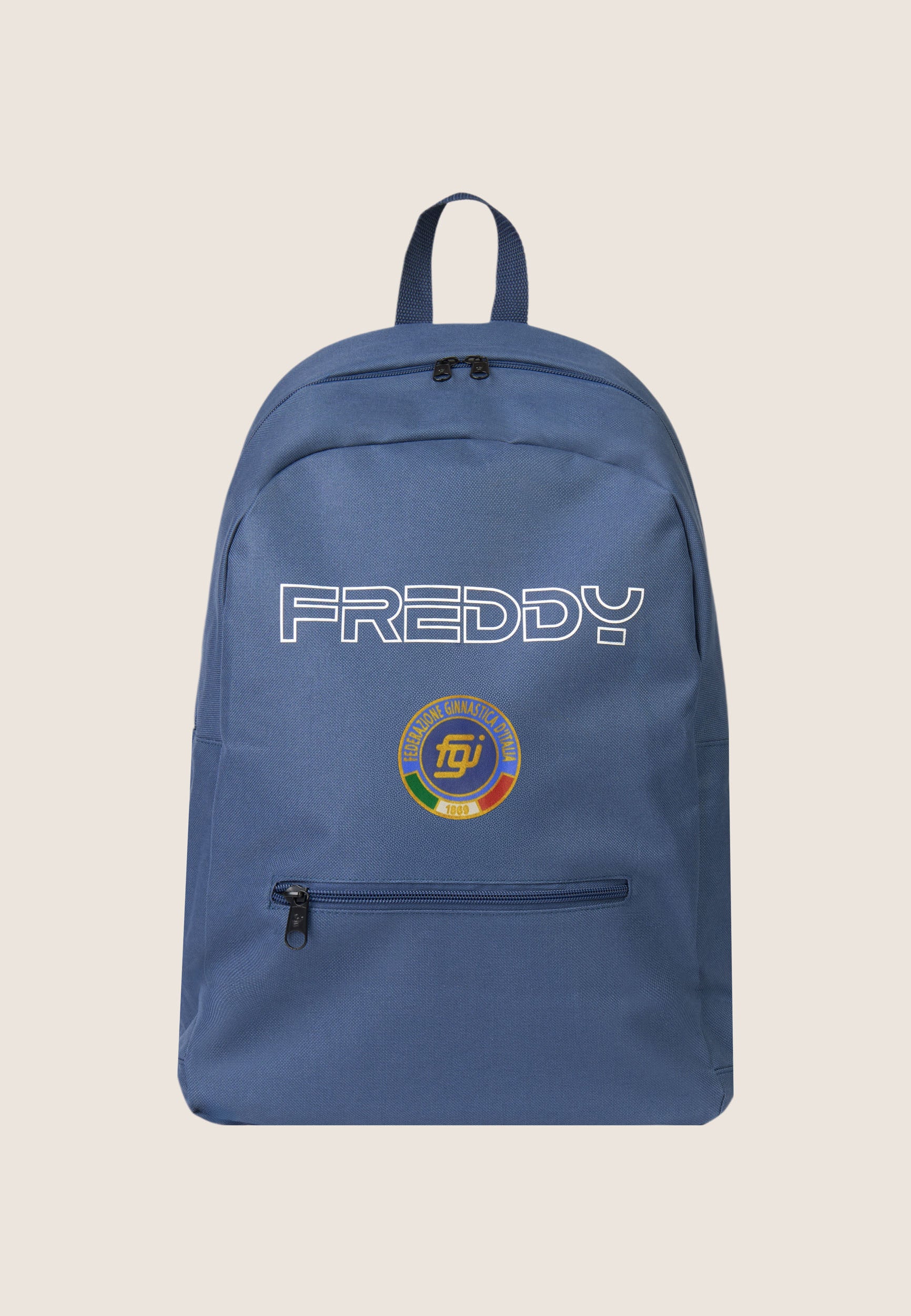 Questo zaino è uno degli accessori creati da Freddy per la Federazione Ginnastica d’Italia e unisce praticità e stile sportivo. Capiente e funzionale, presenta una chiusura con zip a doppio cursore sul lato superiore, tasca anteriore con zip per gli oggetti più piccoli, spalline imbottite e regolabili per il massimo comfort. Il grande logo Freddy e l’emblema FGI stampati sul fronte rendono questo accessorio un simbolo di appartenenza alla squadra.