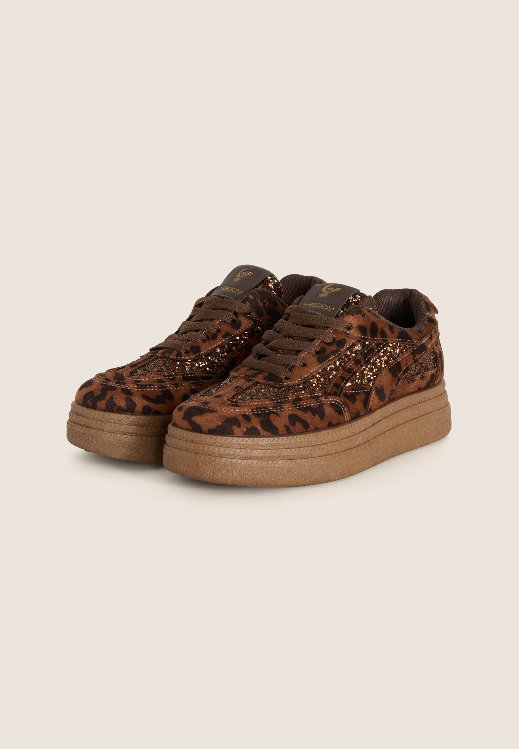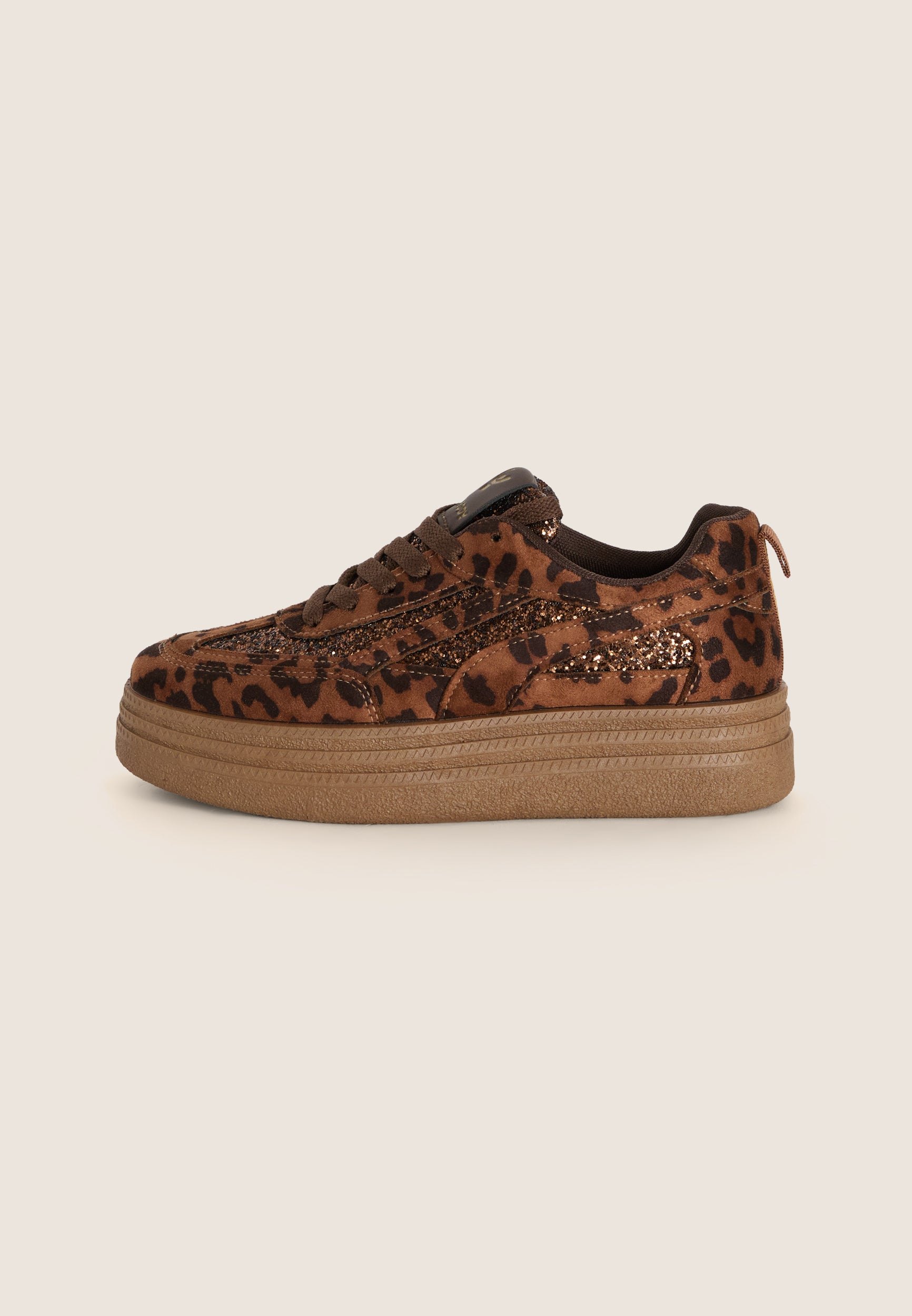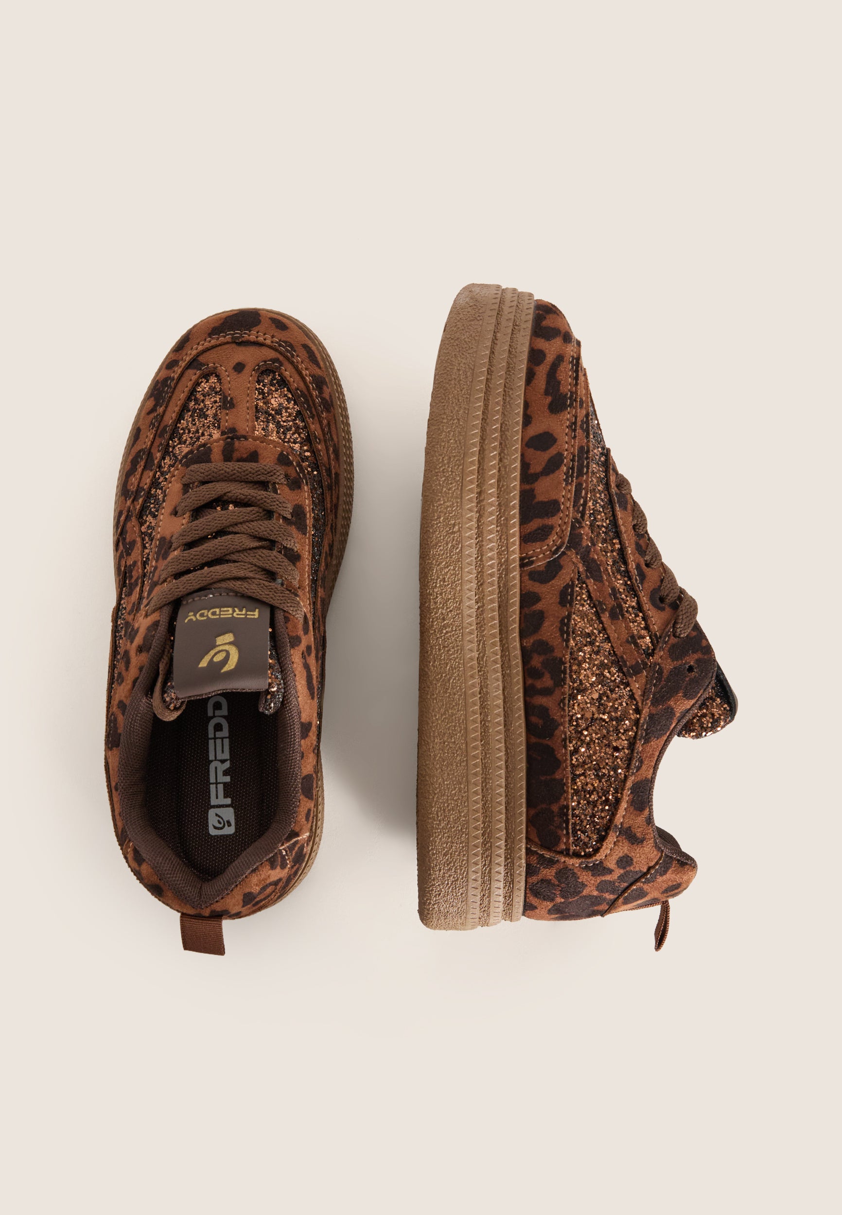 Zapatillas deportivas con plataforma para mujer en tejido animal print con purpurina