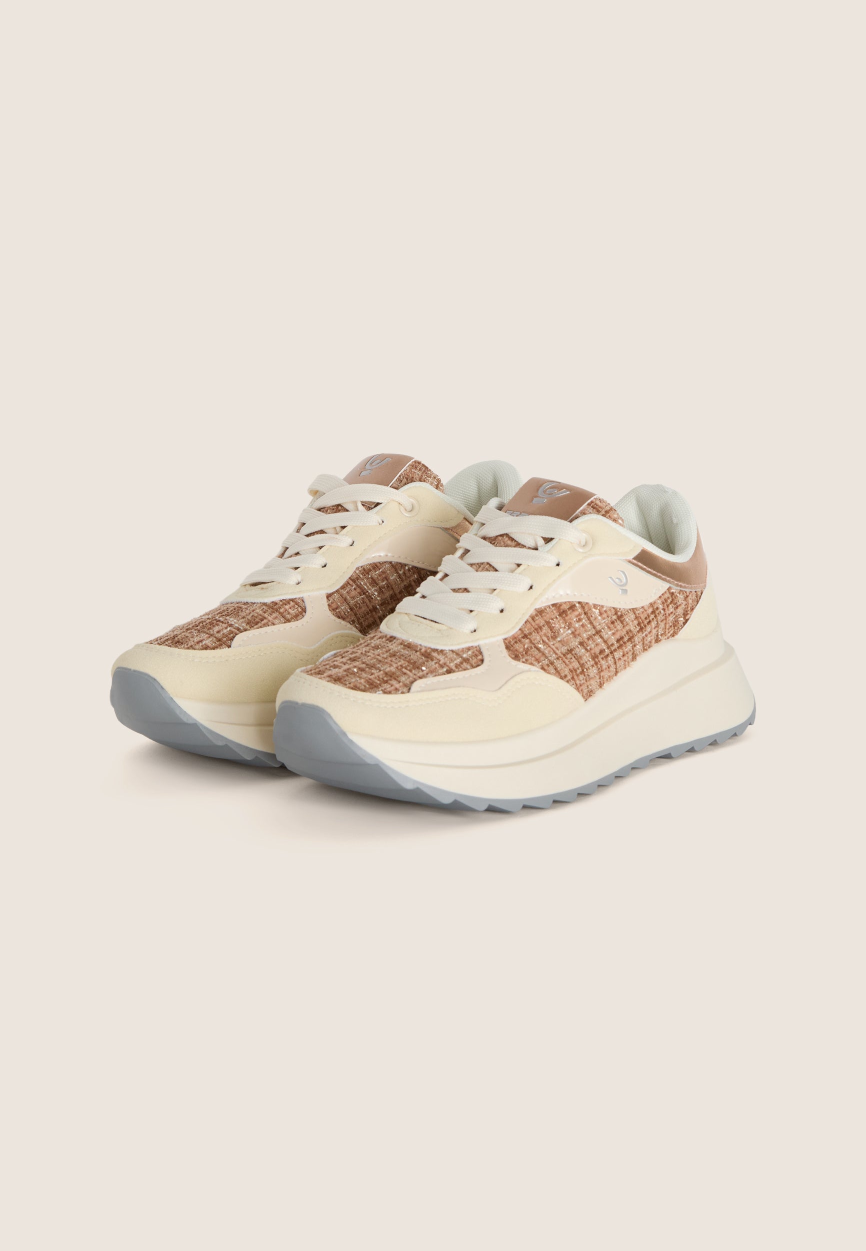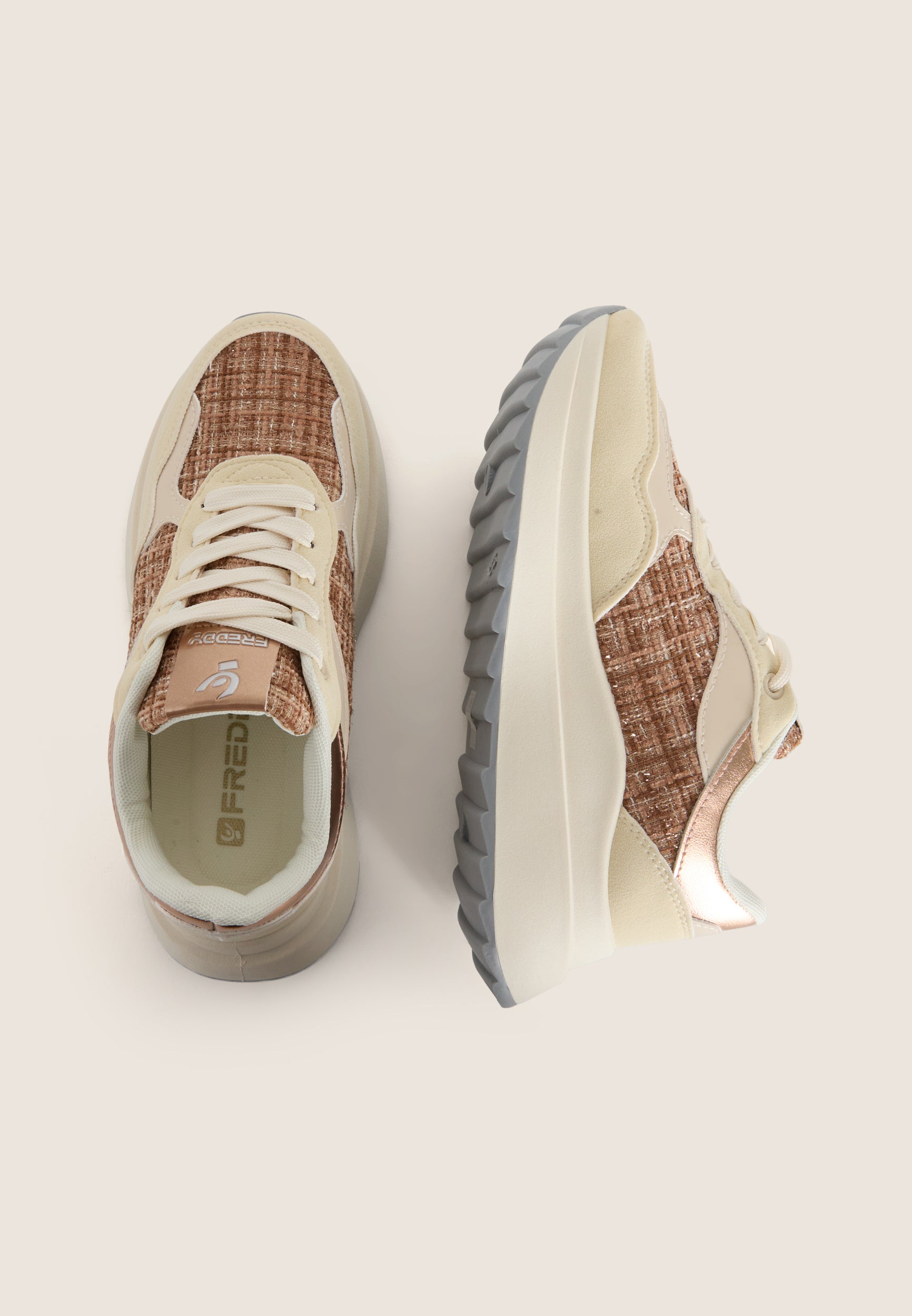 Estas zapatillas deportivas de imitación cuero y tela con detalles de charol ofrecen un diseño refinado y actual. Los cordones de tela y los ojales metálicos añaden un toque de elegancia, mientras que la plantilla «Massage» extraíble garantiza un confort superior en cada paso. La suela de goma antideslizante garantiza un ajuste seguro, y los pequeños logotipos de Freddy en la lengüeta y el lateral exterior completan el look. Perfectas para cada momento del día, estas zapatillas combinan estilo y practicidad.