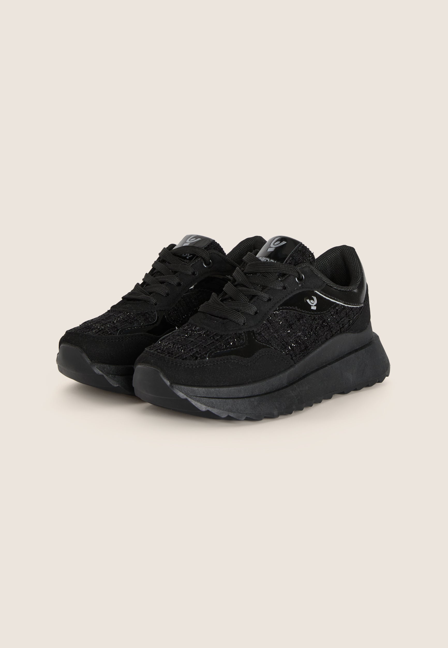 Zapatillas deportivas de imitación cuero y tela con detalles de charol