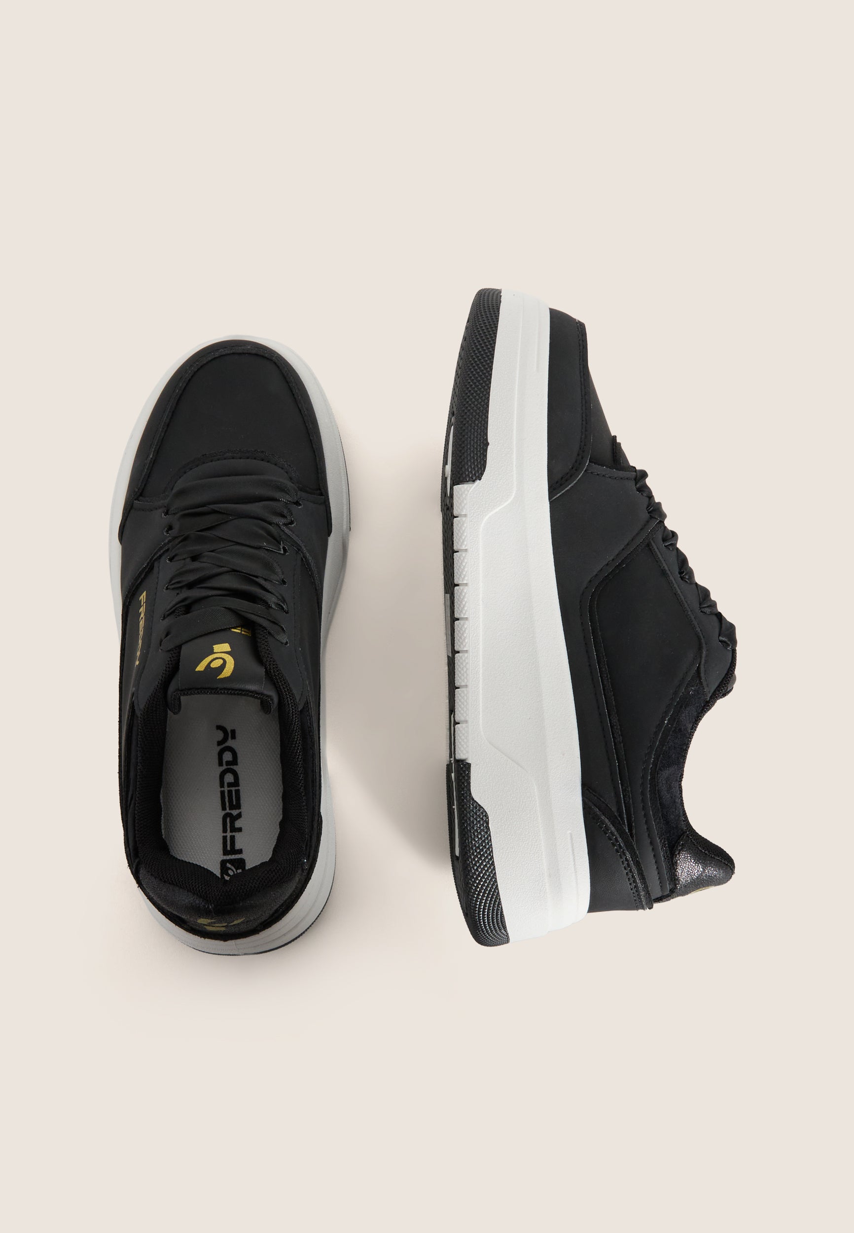 Zapatillas deportivas de imitación cuero y terciopelo con detalles metálicos