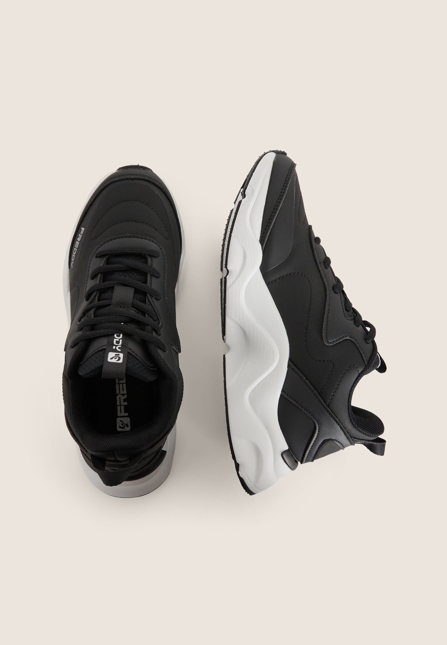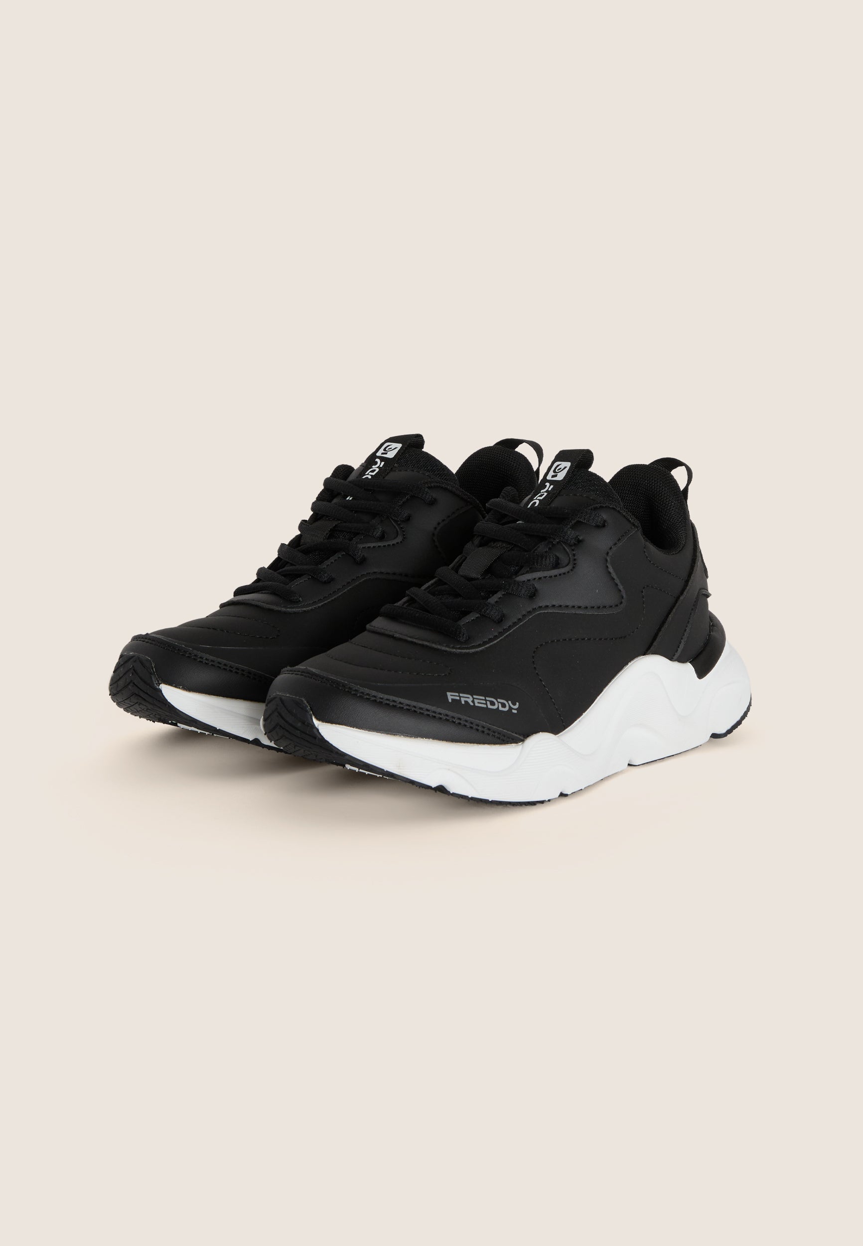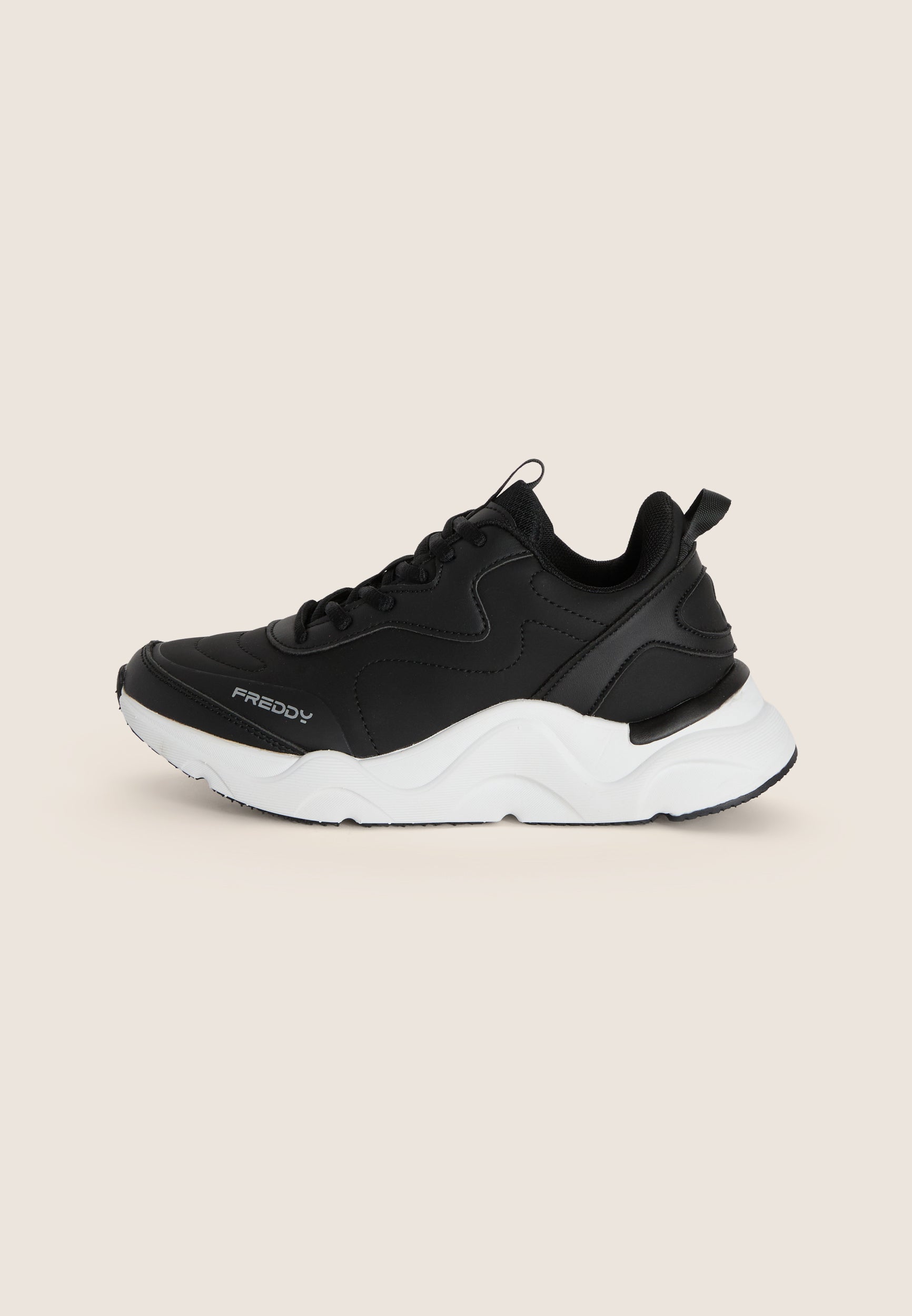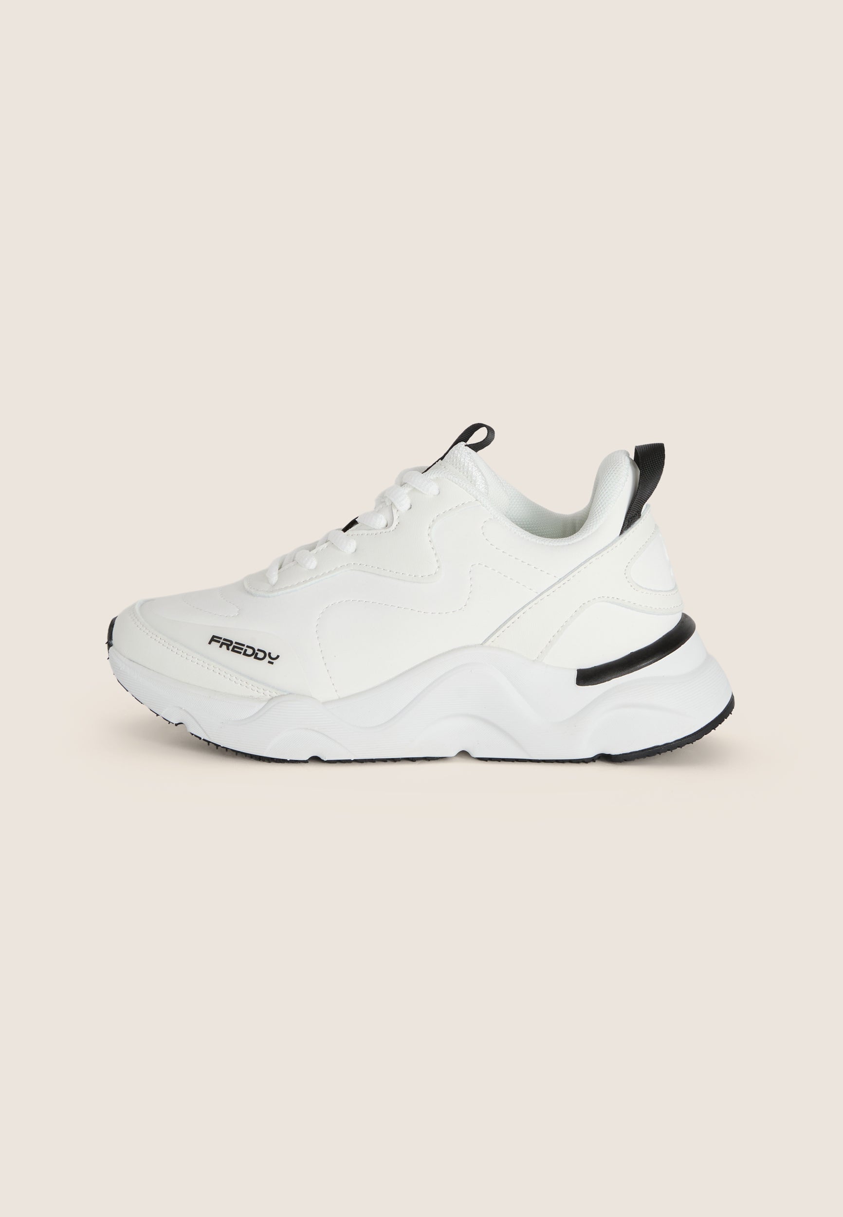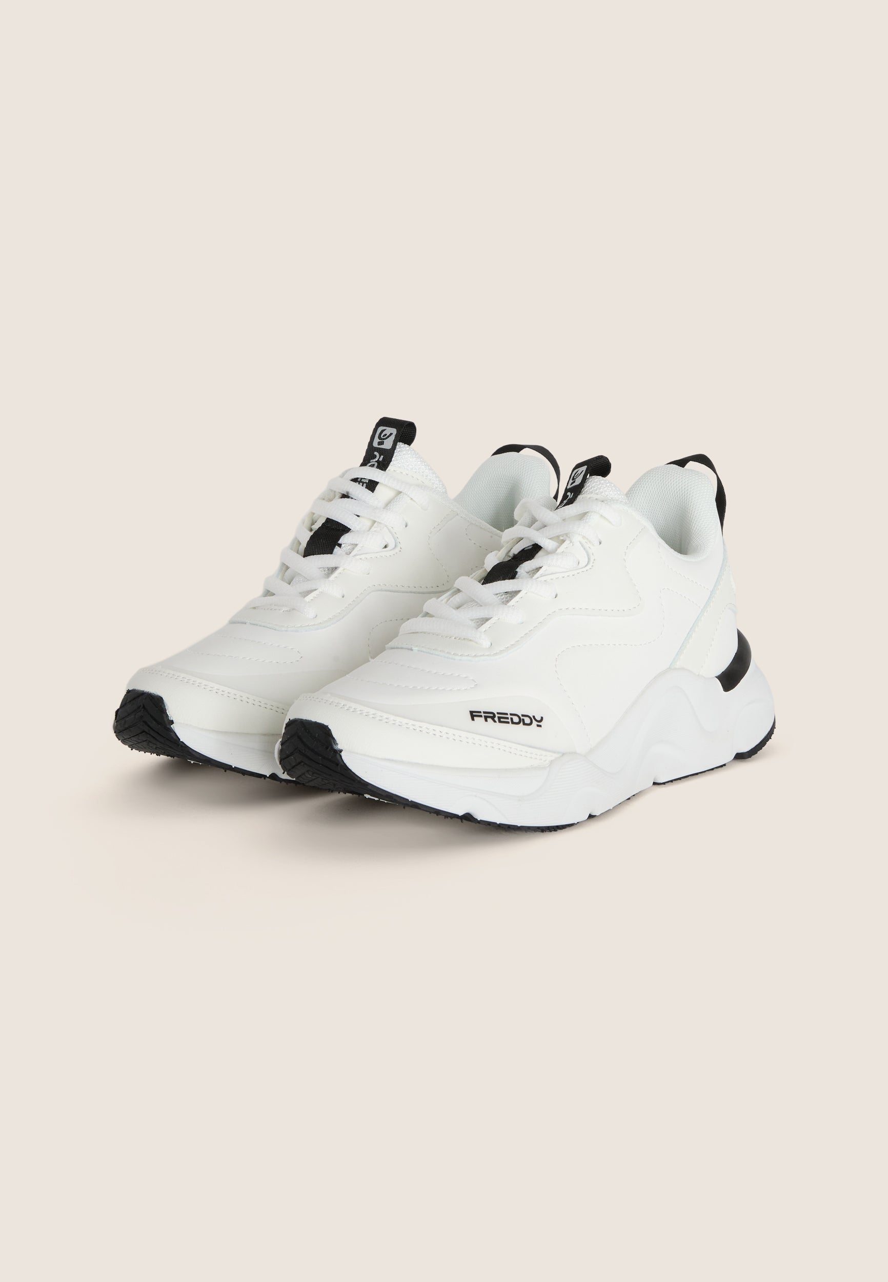 Estas zapatillas deportivas gruesas, fabricadas en imitación cuero de nubuck, ofrecen un diseño atrevido y moderno. Los cordones fabricados en TPU, material resistente y flexible, ofrecen un efecto brillante y mayor resistencia al desgaste. La plantilla extraíble con memoria asegura un confort óptimo, mientras que la suela ligera de EVA y goma antideslizante garantiza la estabilidad. El logotipo de Freddy está situado en el talón, la parte exterior delantera y la lengüeta, añadiendo un toque distintivo y elegante. Perfectas para un look actual y práctico.