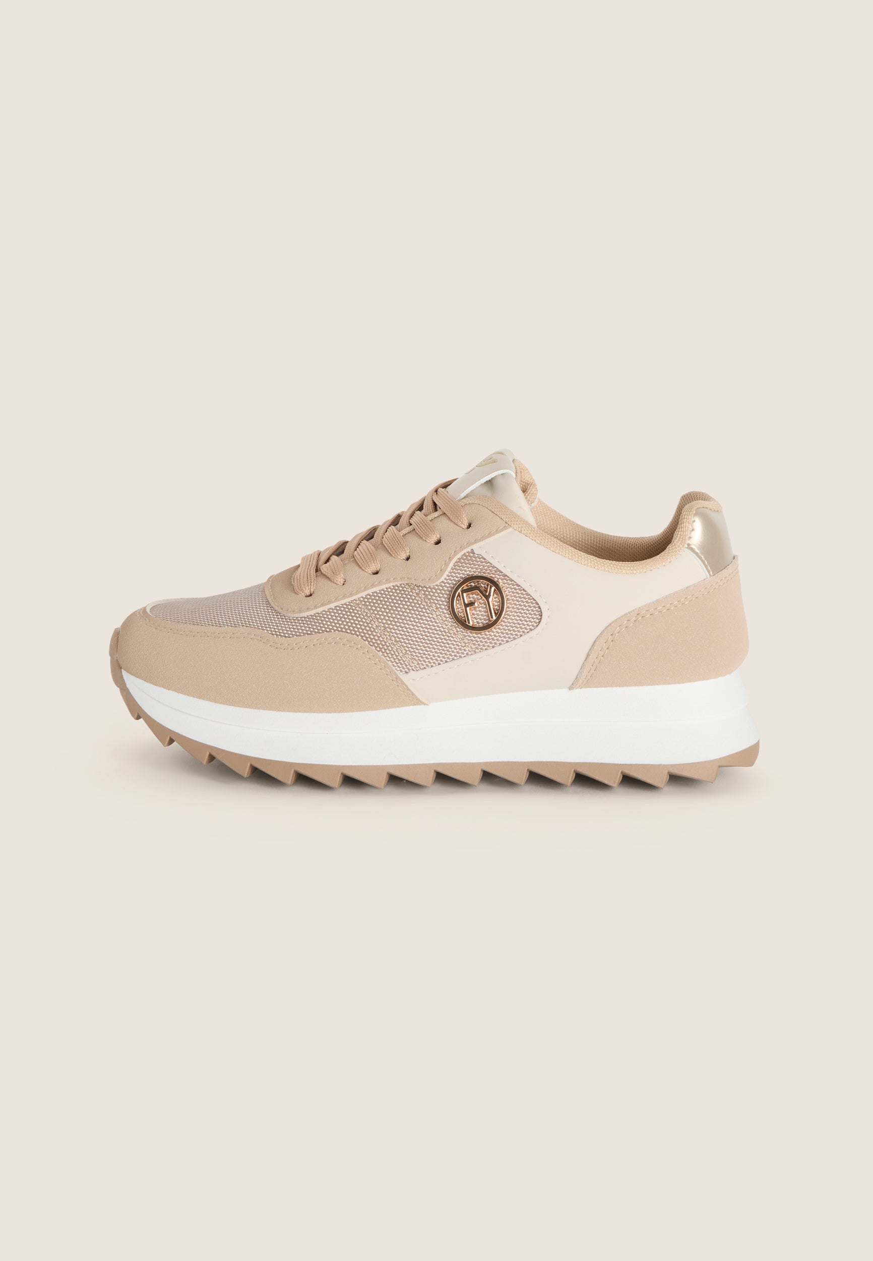 Estas zapatillas deportivas son la combinación perfecta de comodidad y estilo. La pala está confeccionada en imitación cuero y tejido Oxford, lo que le confiere un diseño elegante y práctico para el tiempo libre. Los cordones de tela y el logotipo metálico de FY aplicado en el lateral exterior añaden un toque de clase. La plantilla extraíble de espuma con memoria garantiza un confort duradero, mientras que la suela de goma antideslizante asegura un agarre estable sobre cualquier superficie. Perfectas para cualquier momento del día, estas zapatillas son ideales para crear un look casual y a la última.