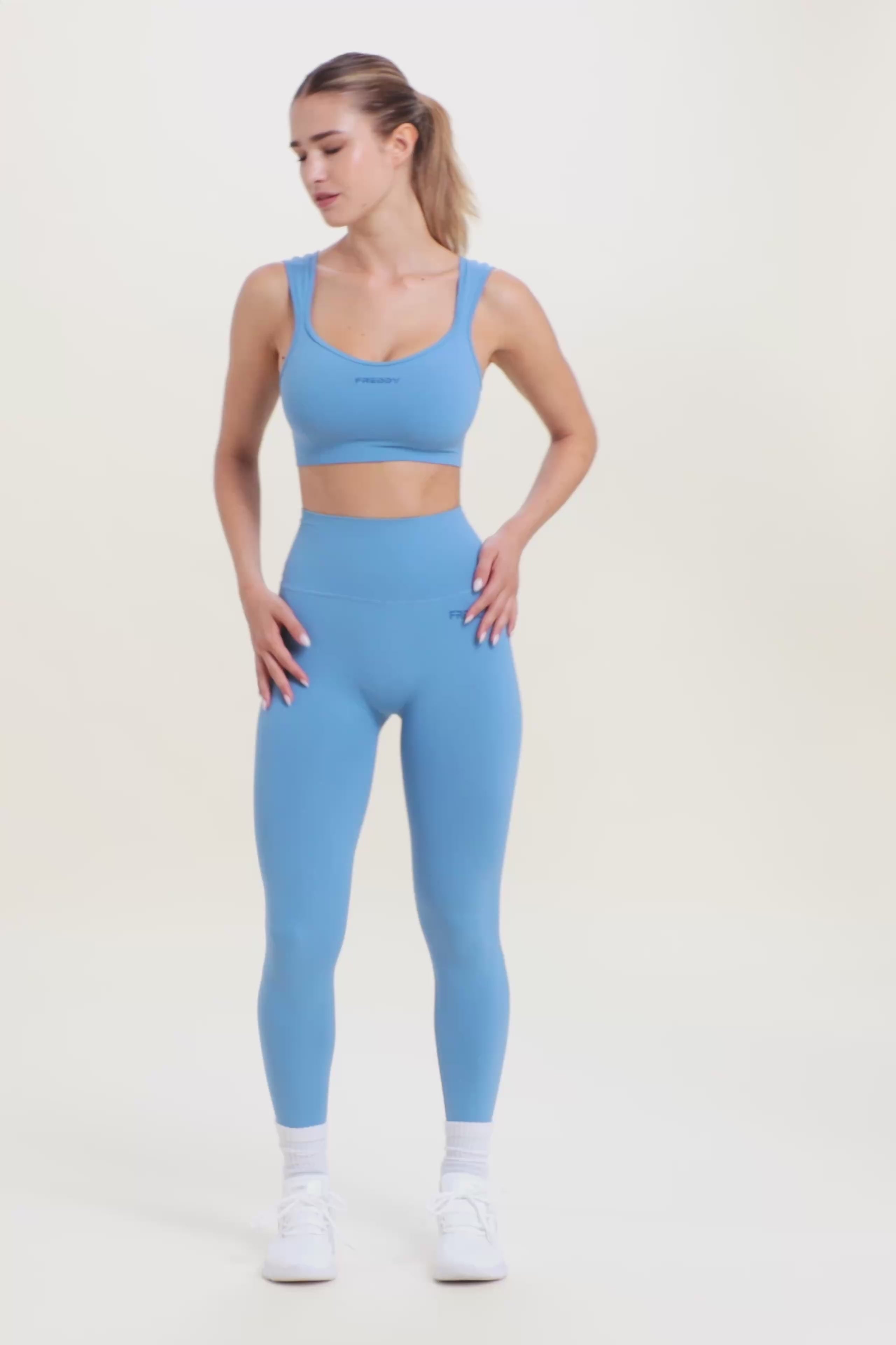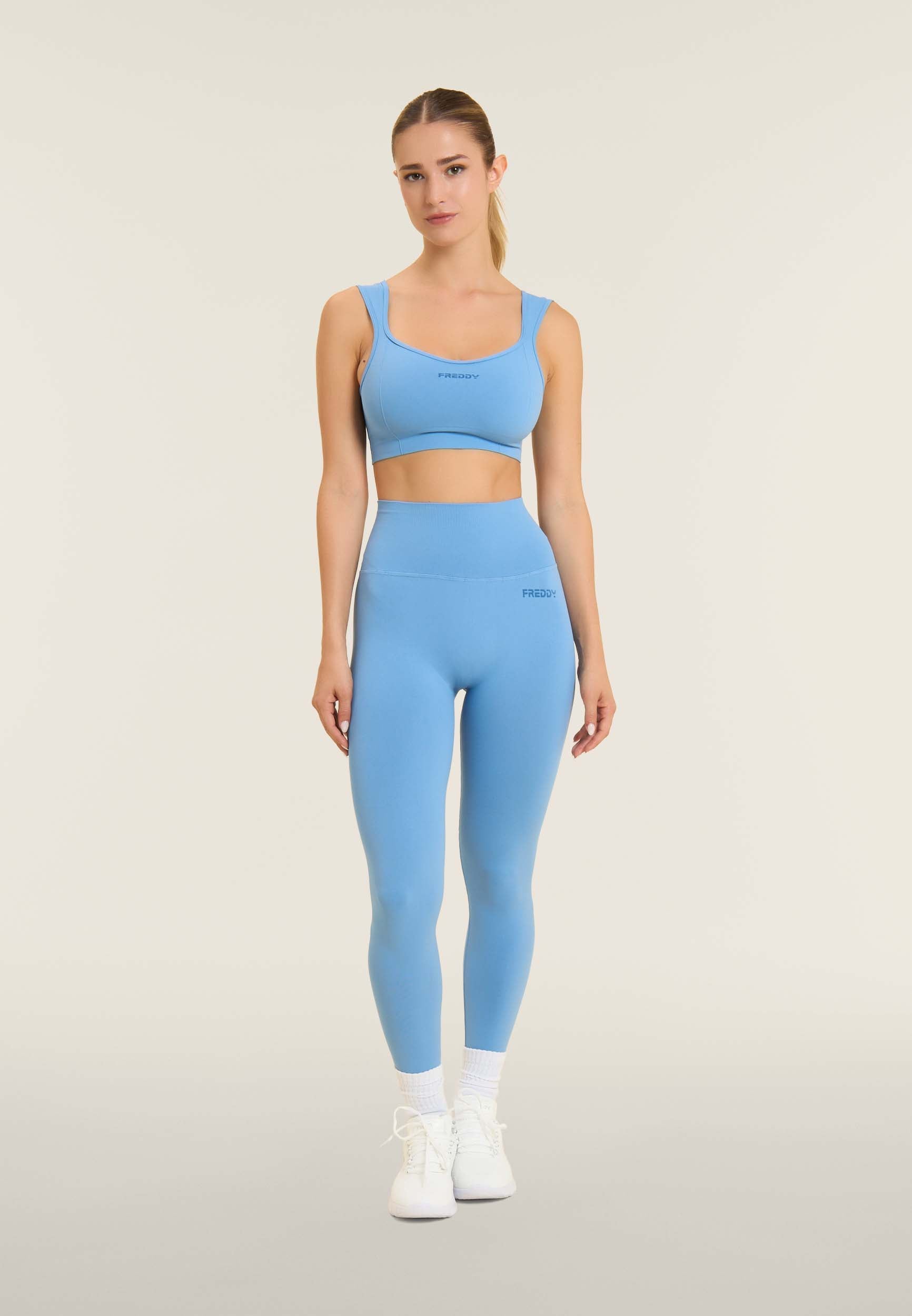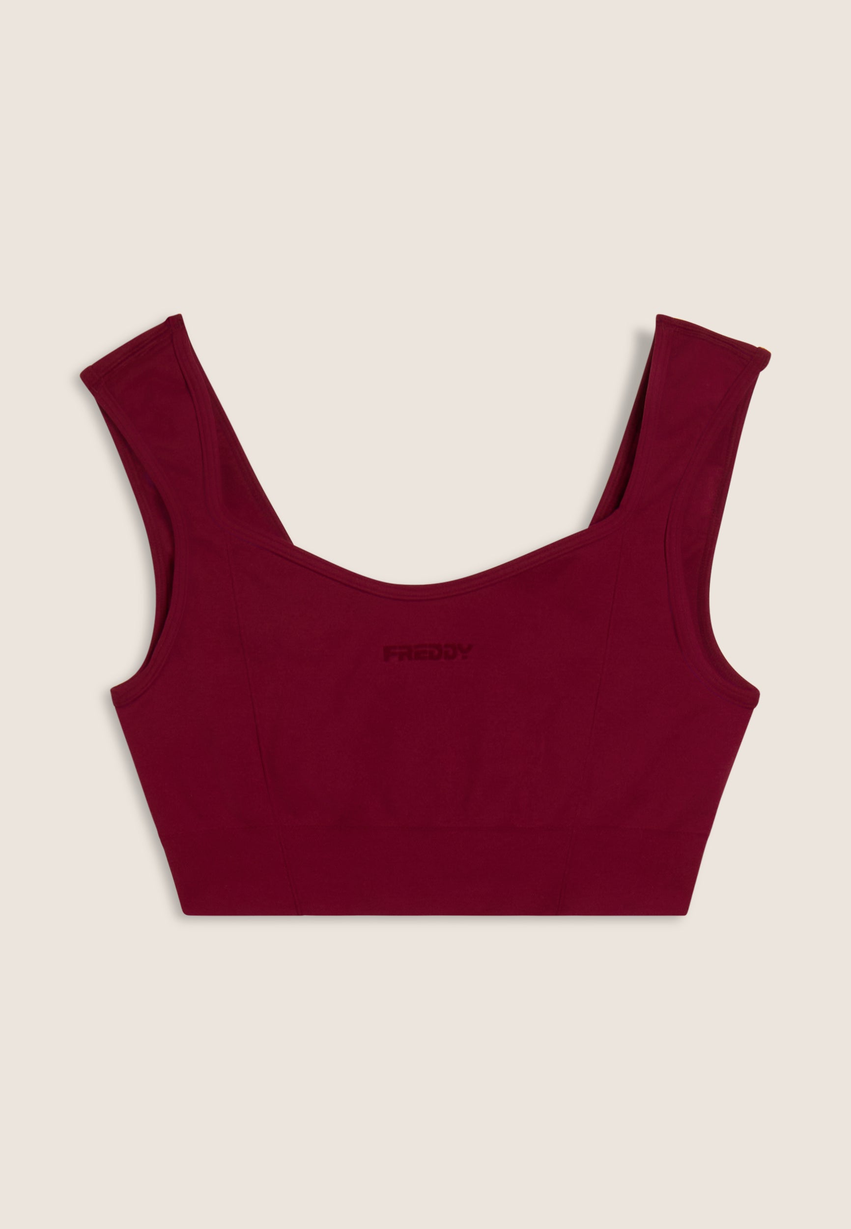 Avec un design féminin et confortable, cette brassière de sport au soutien léger est parfaite pour le yoga et les activités de faible intensité. Col en cœur sur le devant et carré sur le dos avec des bretelles classiques. Le tissu technique en jersey de nylon est doux, respirant et léger, avec un petit logo FREDDY sur le devant en couleur contrastée.