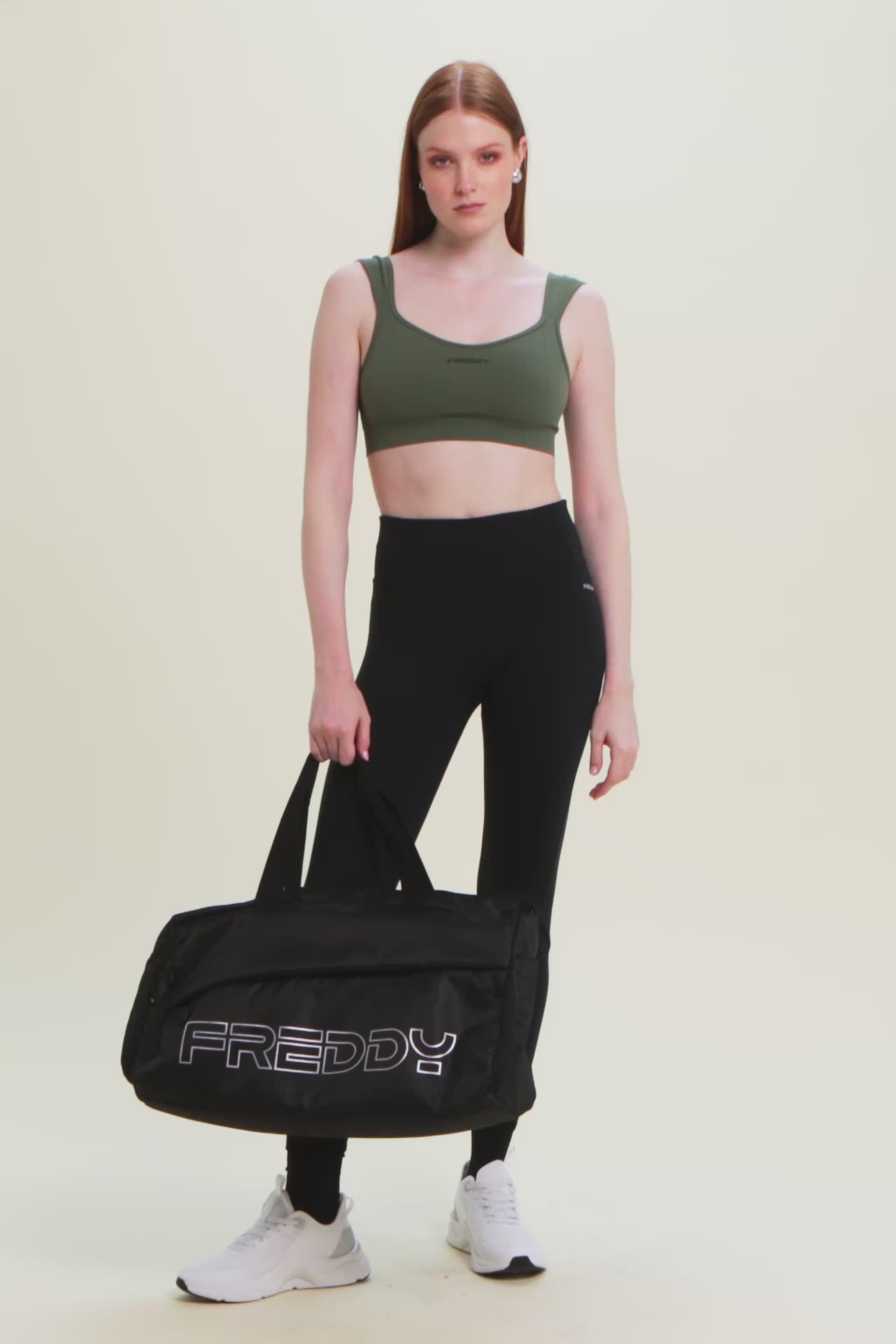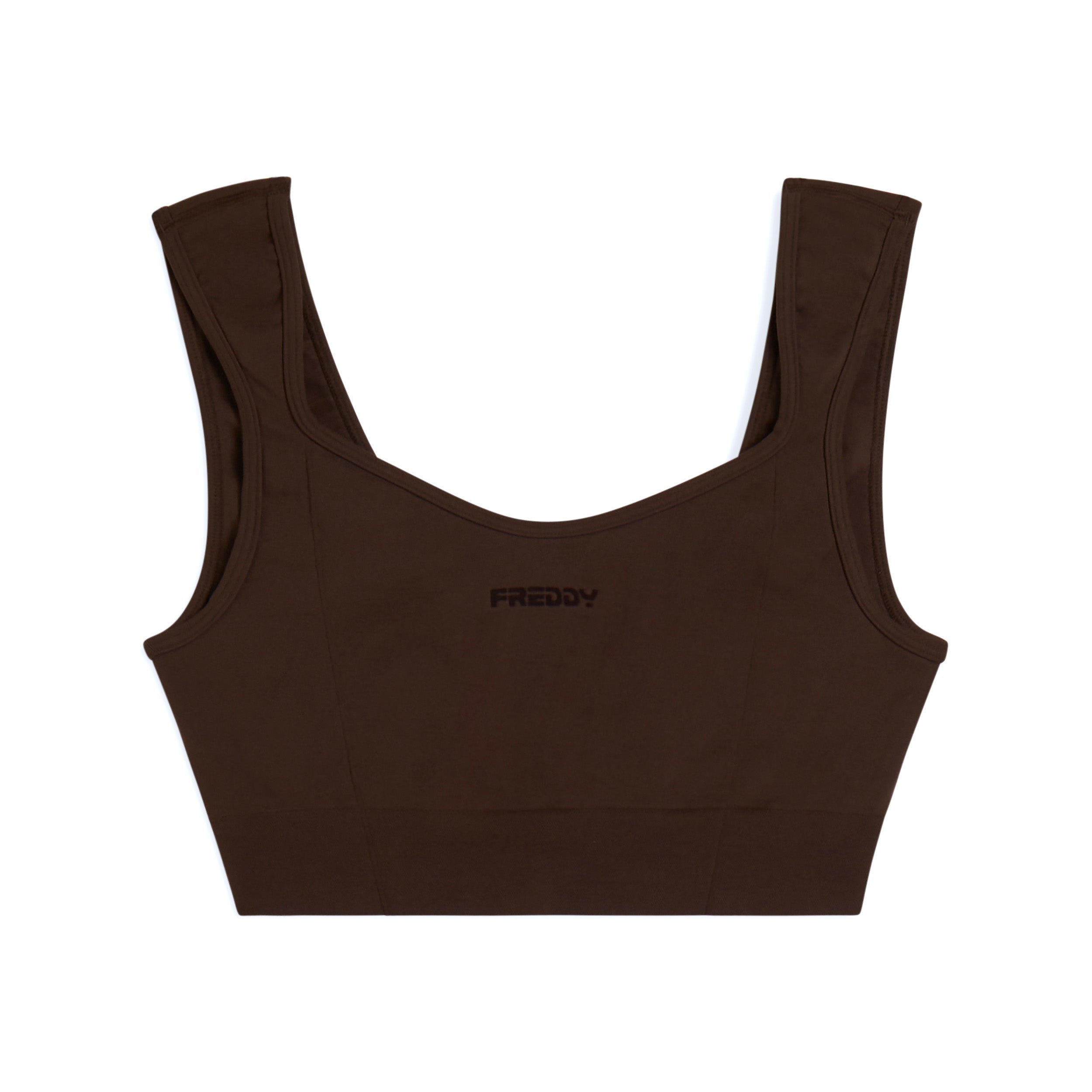 Avec un design féminin et confortable, cette brassière de sport au soutien léger est parfaite pour le yoga et les activités de faible intensité. Col en cœur sur le devant et carré sur le dos avec des bretelles classiques. Le tissu technique en jersey de nylon est doux, respirant et léger, avec un petit logo FREDDY sur le devant en couleur contrastée.