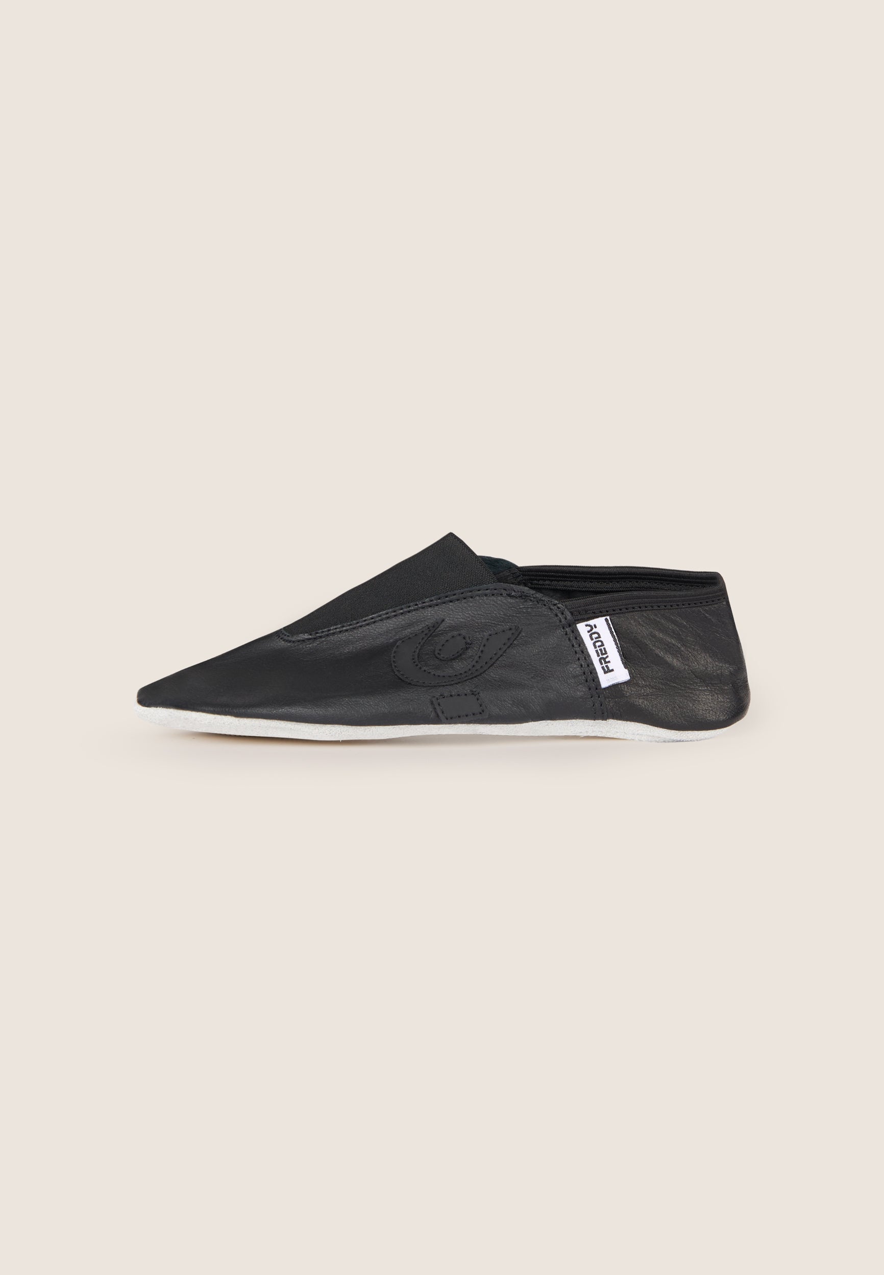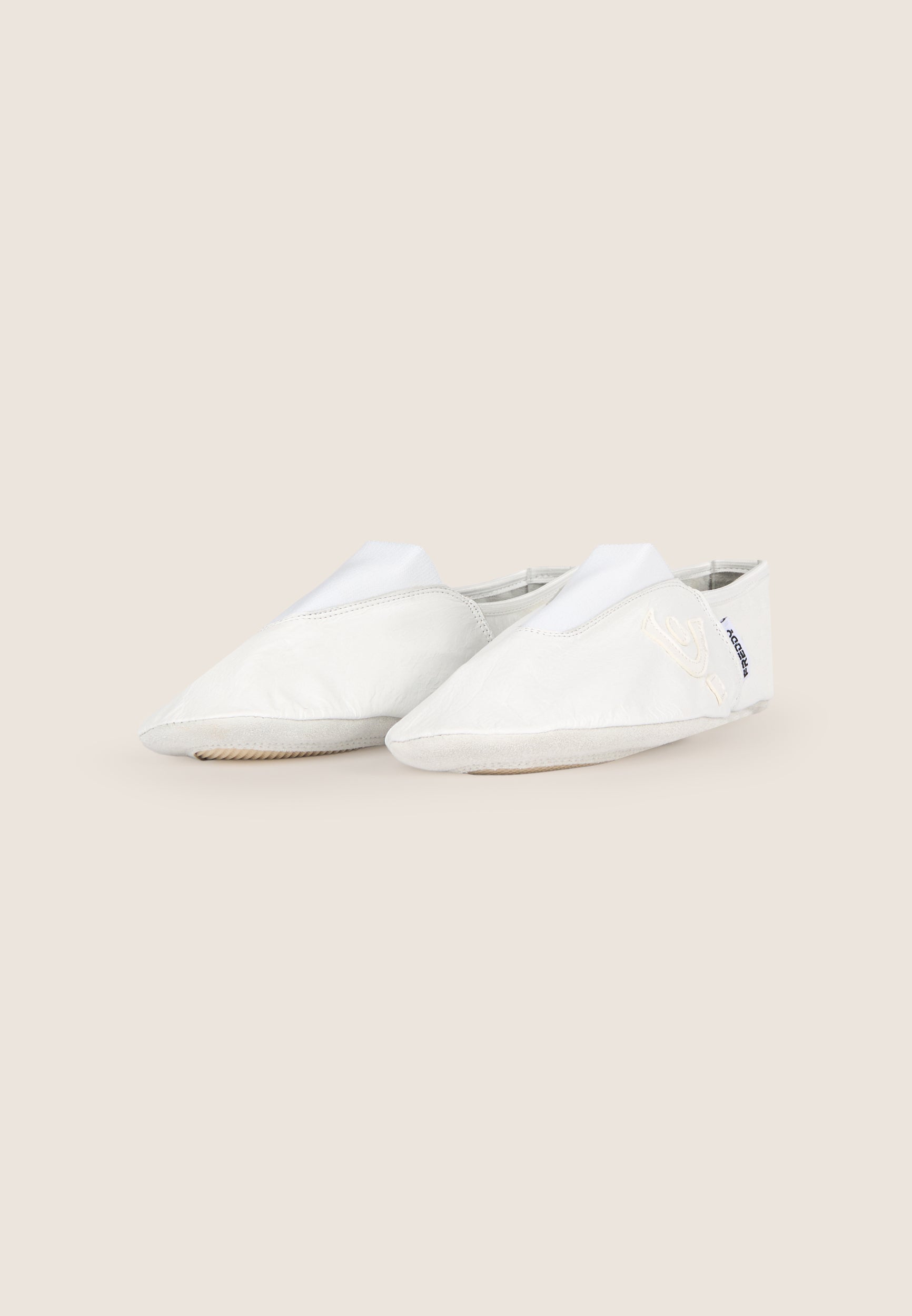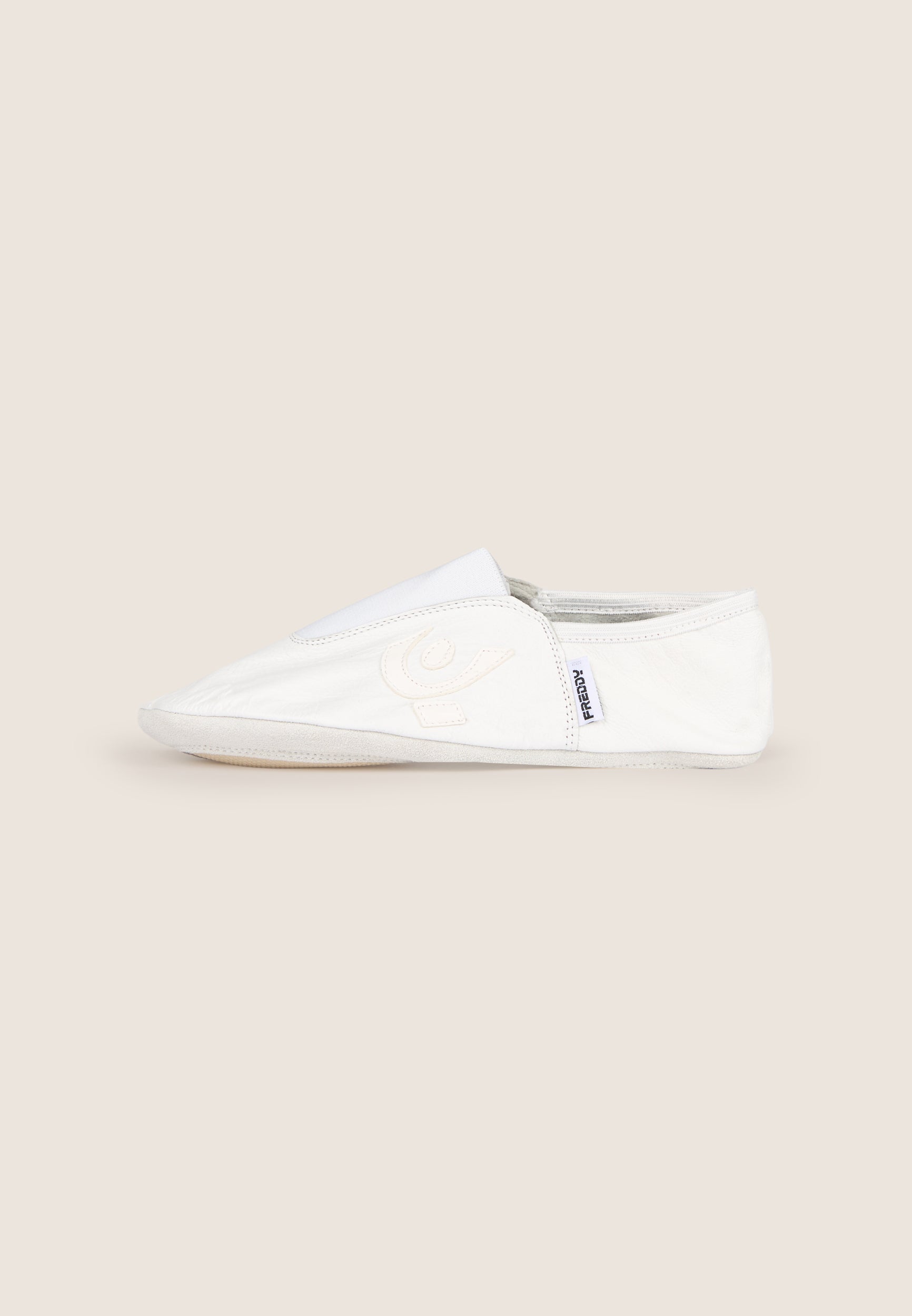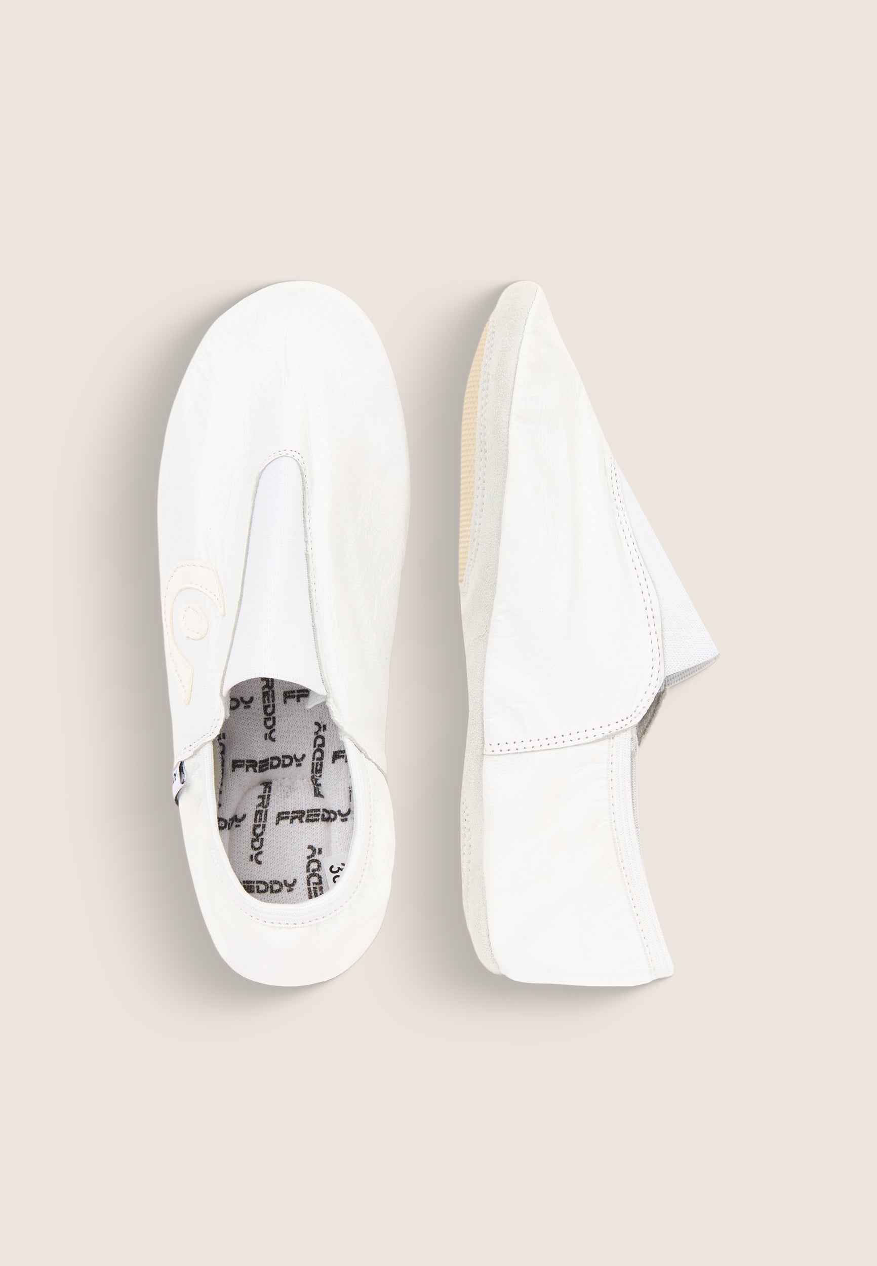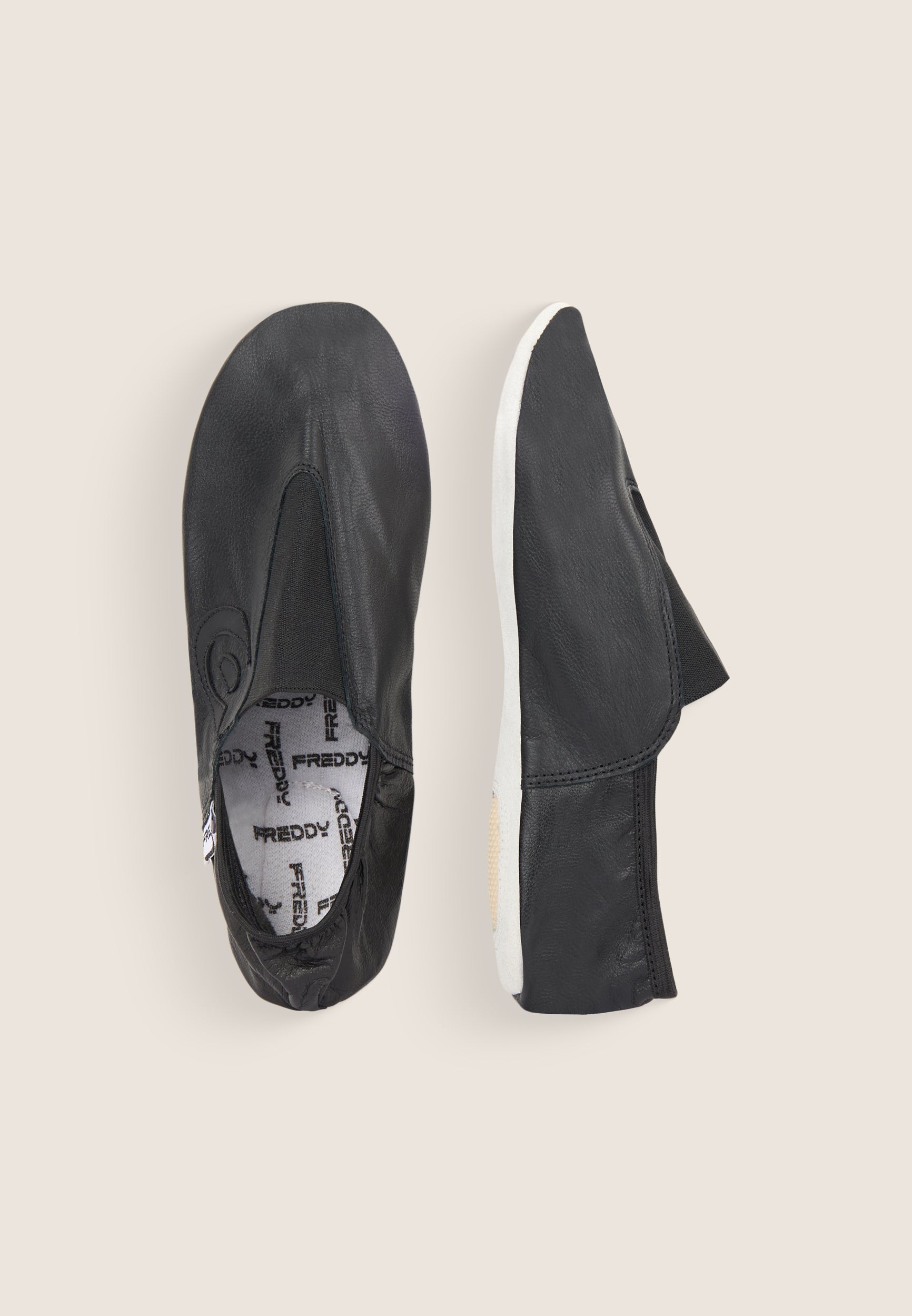 Pour vos séances en toute sécurité, n'hésitez pas à choisir ces chaussures de gymnastique artistique de Freddy, un modèle en cuir extrêmement confortable. La solution idéale en milieu sportif, avec tige en cuir et double semelle. L'adhérence au pied est optimale et garantie par une bande élastique, sur la partie aussi bien avant qu'arrière de la chaussure.