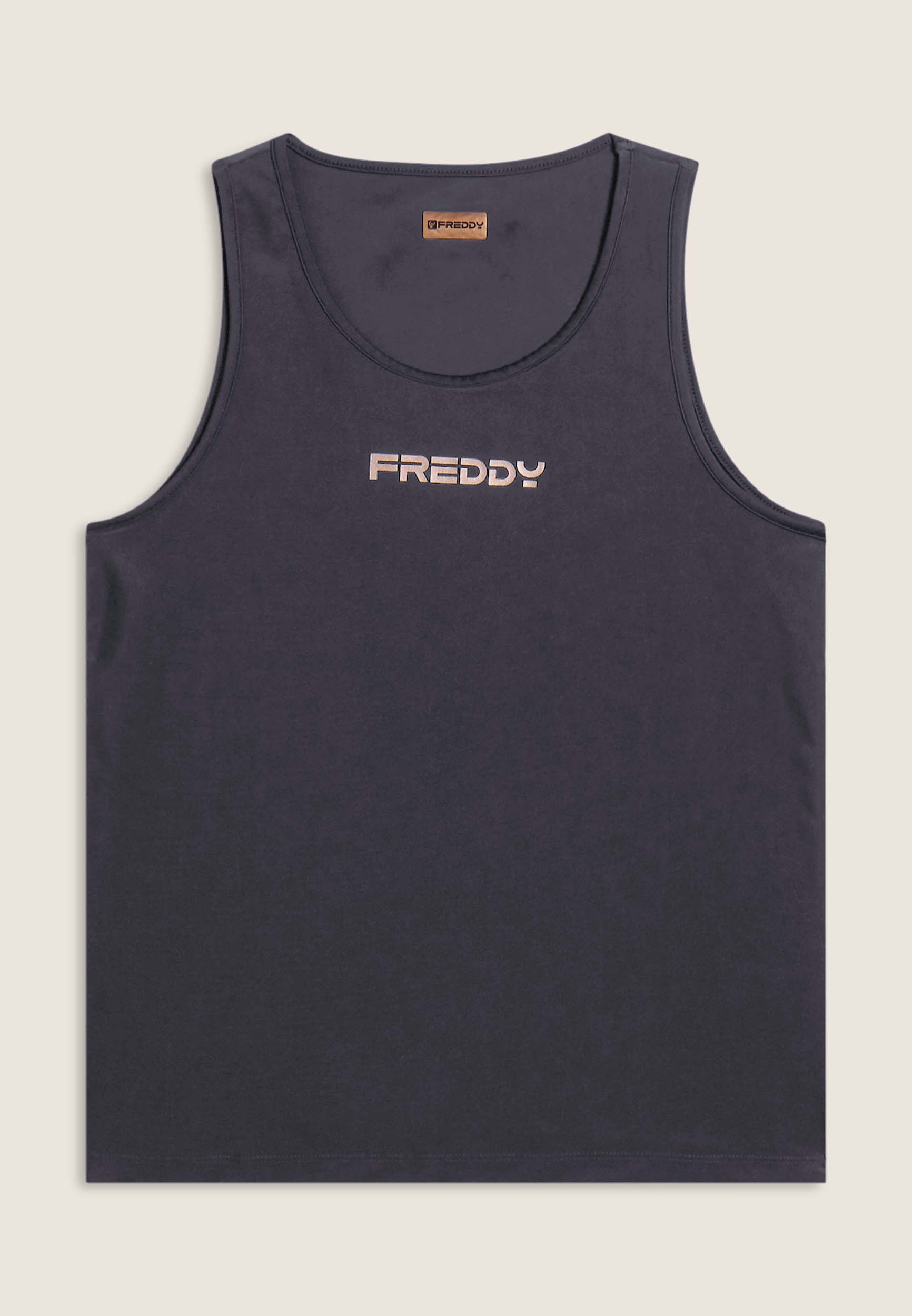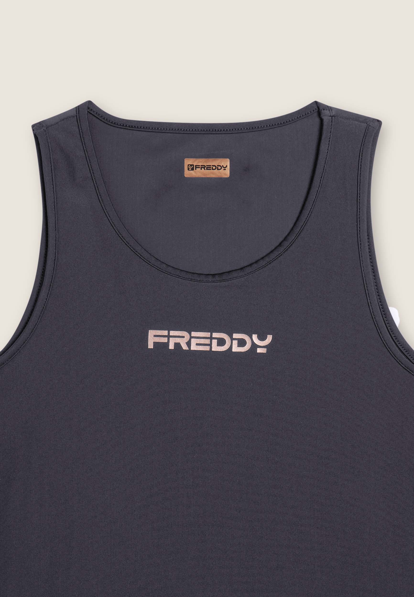 Débardeur de sport de coupe classique, idéal pour les entraînements de tous les jours. Les larges bretelles assurent une liberté de mouvement maximale, tandis que les bretelles classiques garantissent la stabilité. Fabriqué en tissu technique en jersey de nylon, il est doux, durable et très respirant. Le logo FREDDY imprimé sur le devant dans des couleurs contrastées complète le vêtement.