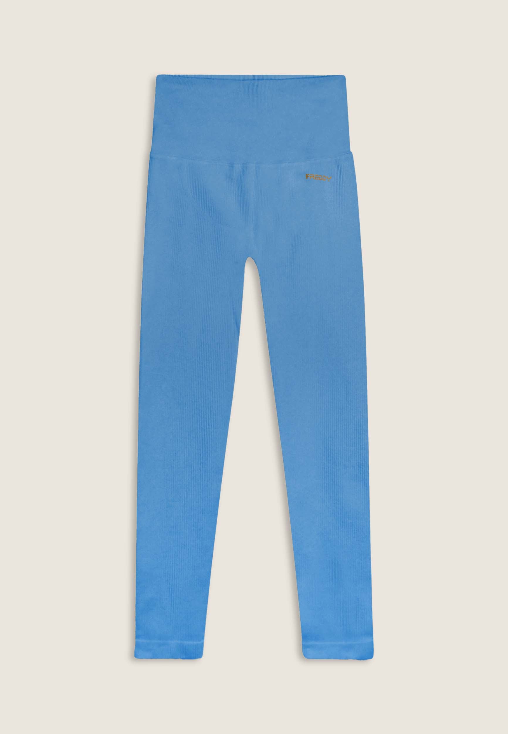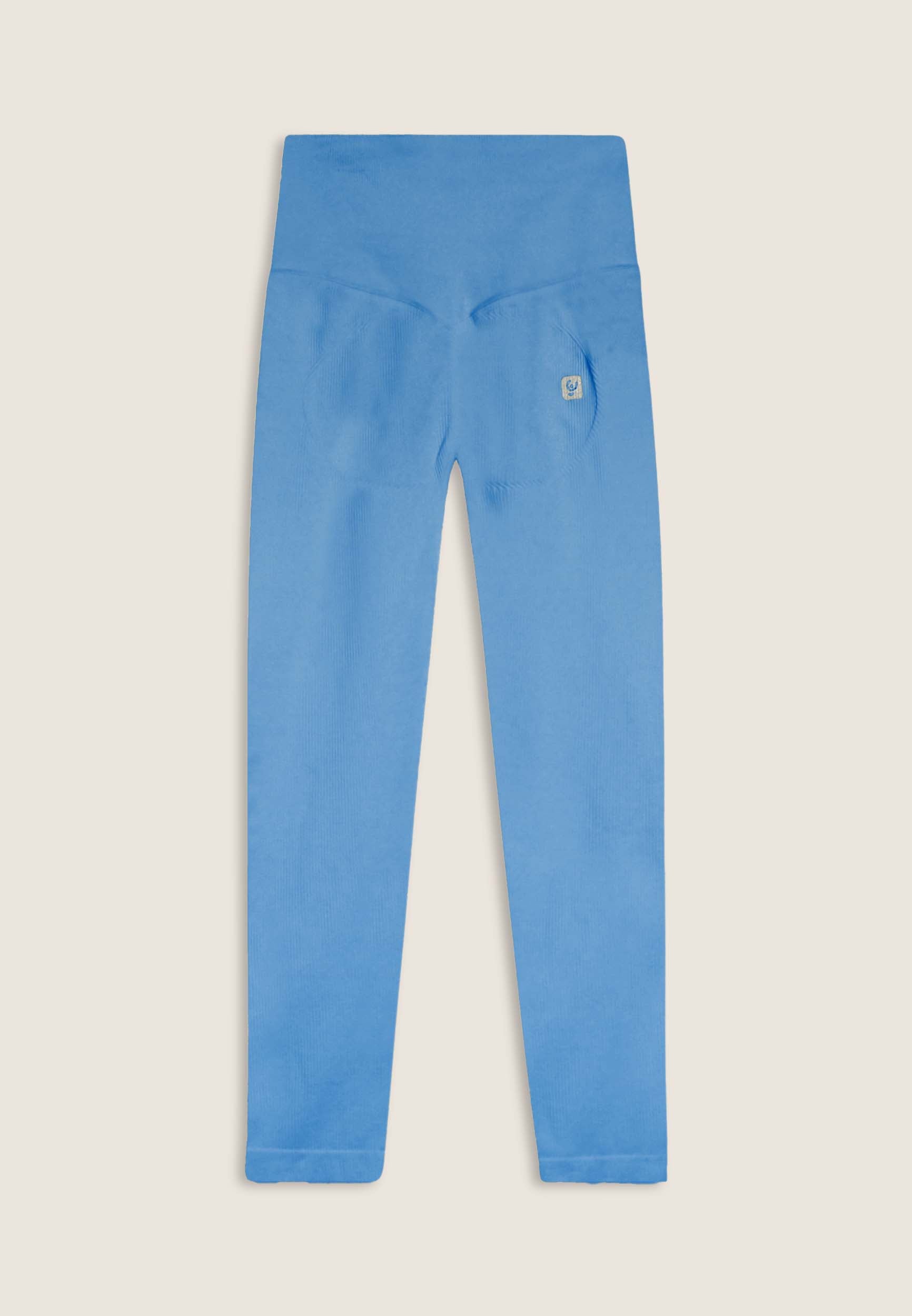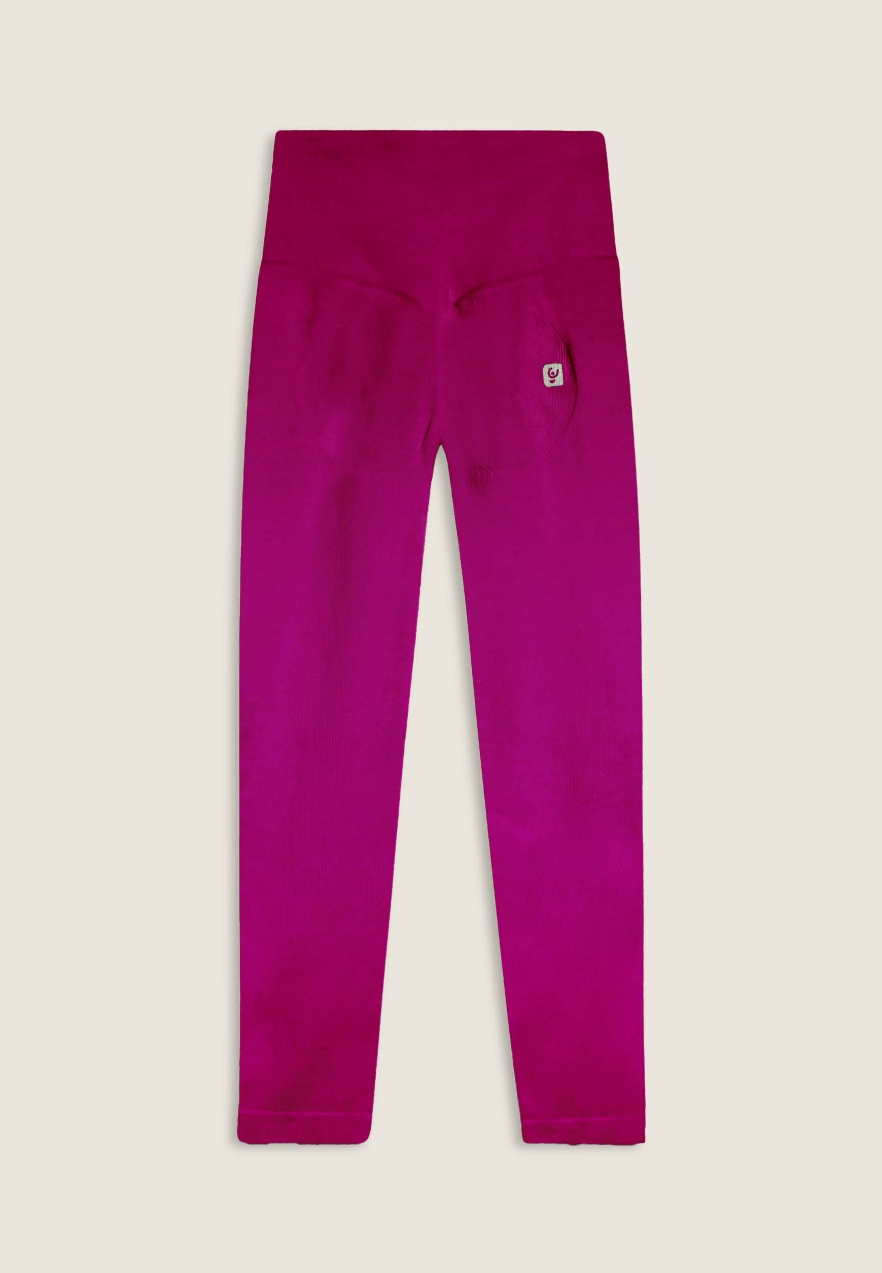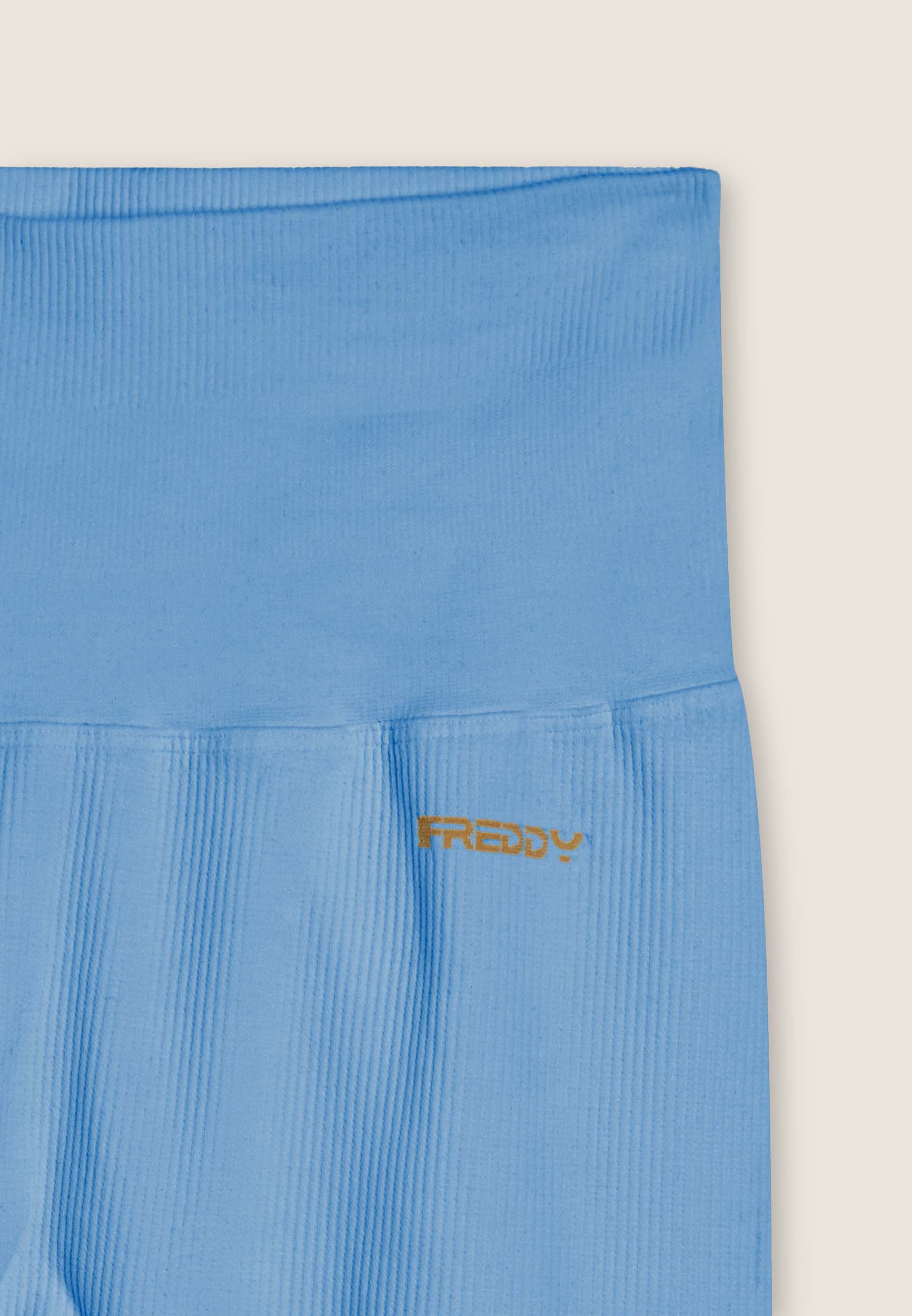 Leggings de sport longueur 7/8 et jambe skinny, en tissu côtelé sans coutures, pour un confort absolu. La taille très haute garantit un maintien stable pendant l’entraînement, tandis que les coutures en forme de cœur sur les fesses rehaussent la forme de manière naturelle. Enrichis du logo FREDDY sur le devant et le petit logo du bonhomme à l’arrière.