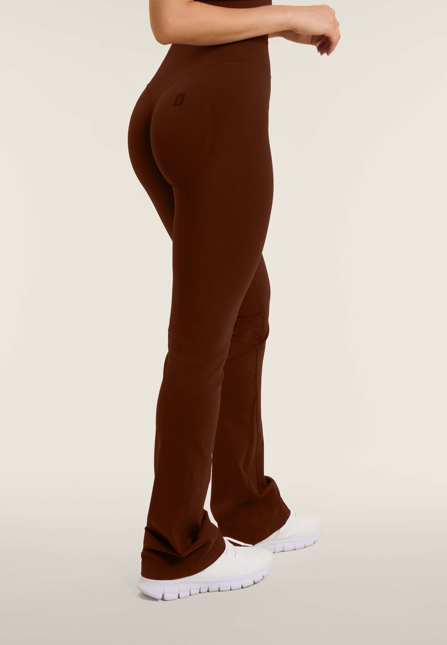D’un style féminin et moderne, ces leggings classiques au bord flare sont réalisés en jersey technique respirant, pour le confort et la performance. La taille très haute en tissu côtelé sans coutures apporte du soutien, tandis que les coutures en forme de cœur à l’arrière donnent une coupe galbante.