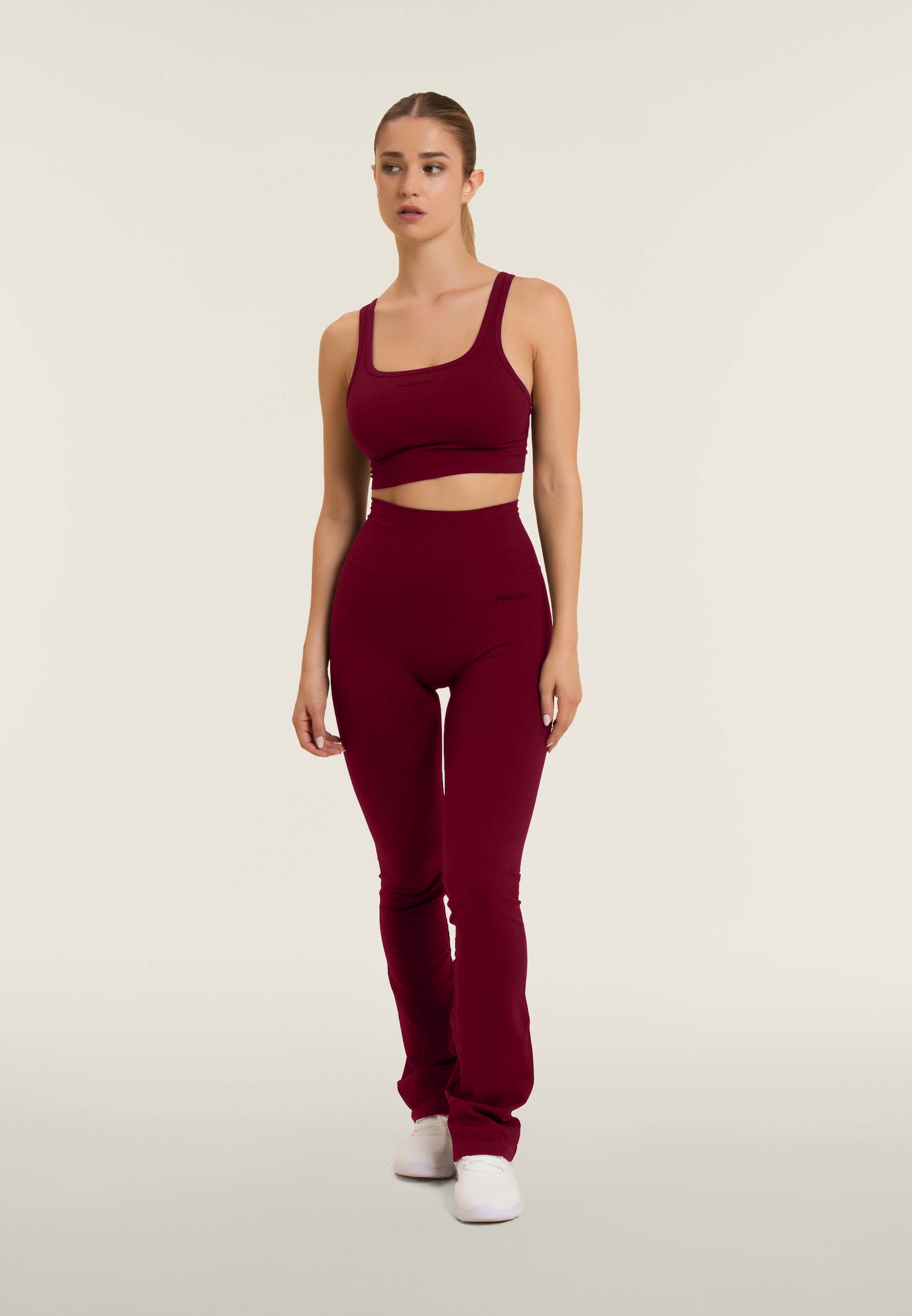 Leggings de sport flare à taille haute et côtelés
