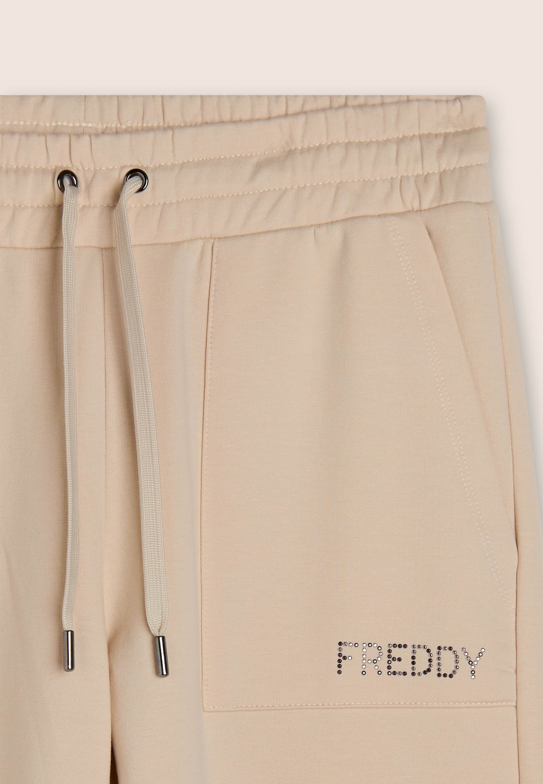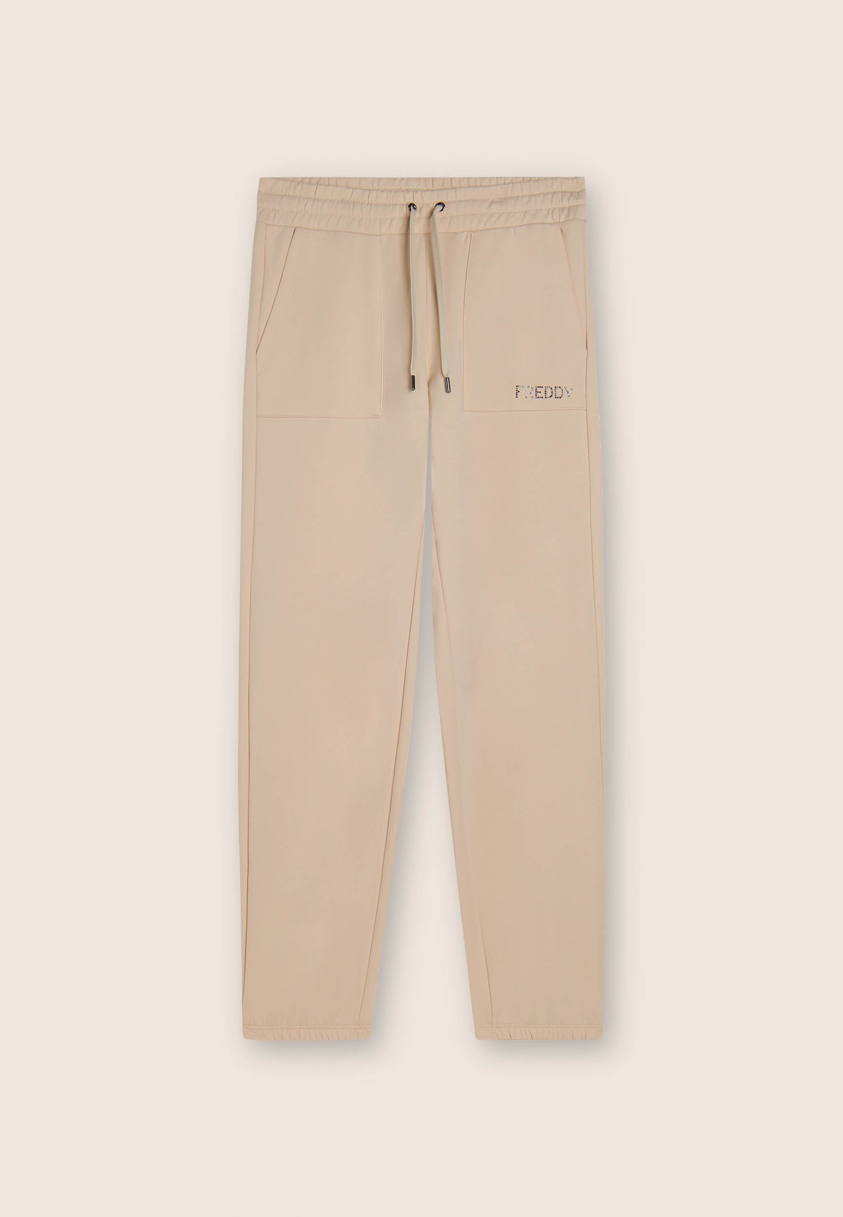De coupe classique, ce pantalon en molleton brossé élastique est doté d’une bande élastique aux bords et à la taille avec un cordon de serrage réglable. Les poches cousues apportent une touche pratique, tandis que le logo FREDDY constitué de clous est appliqué sur la poche gauche.