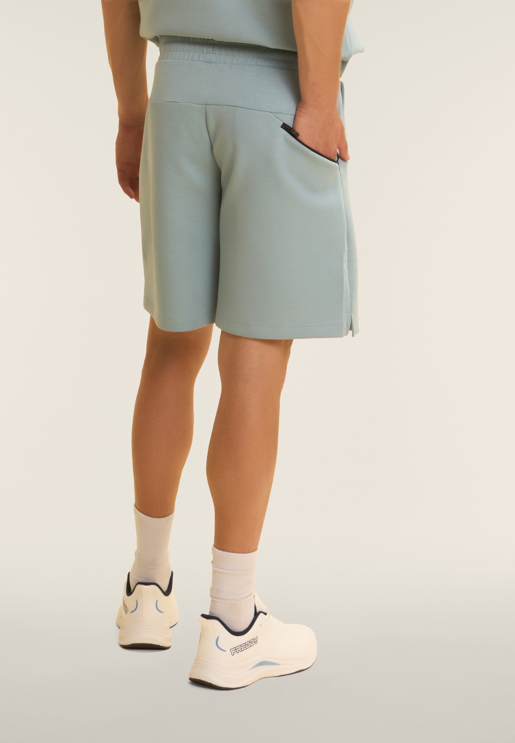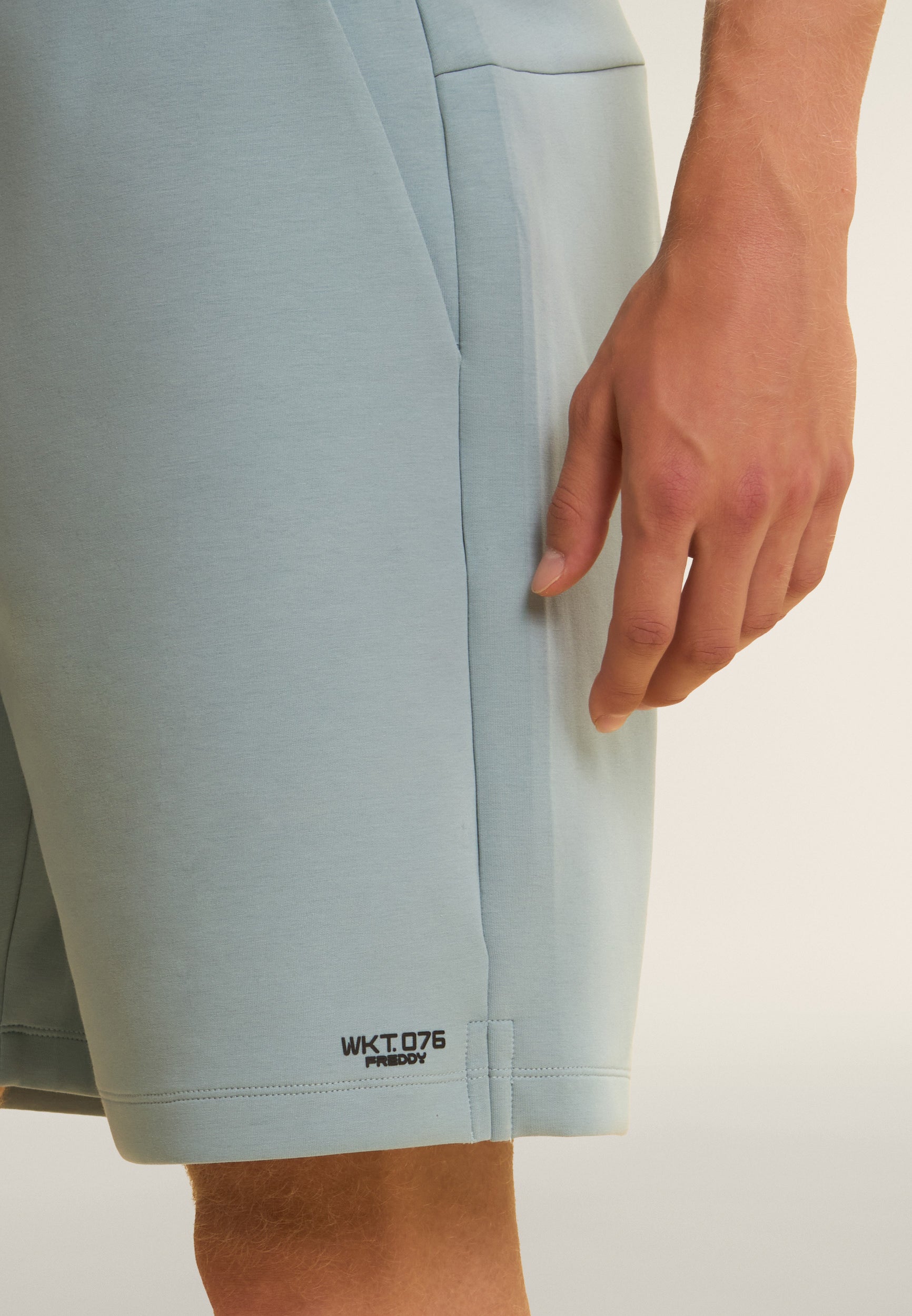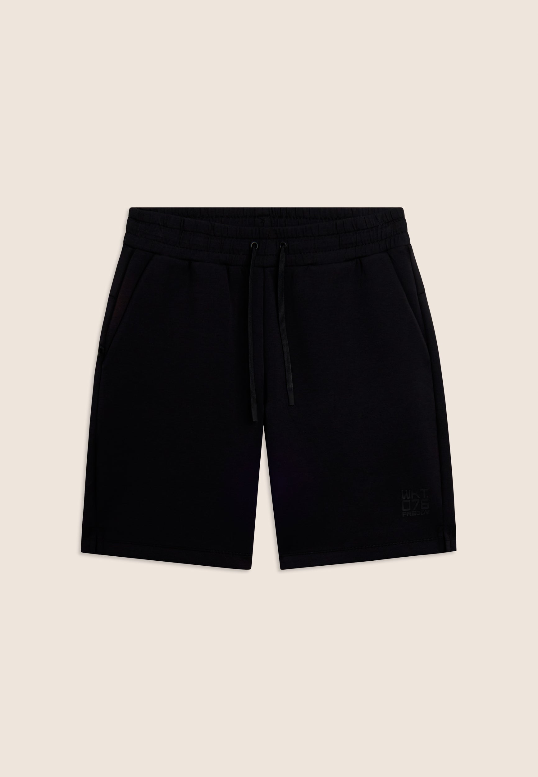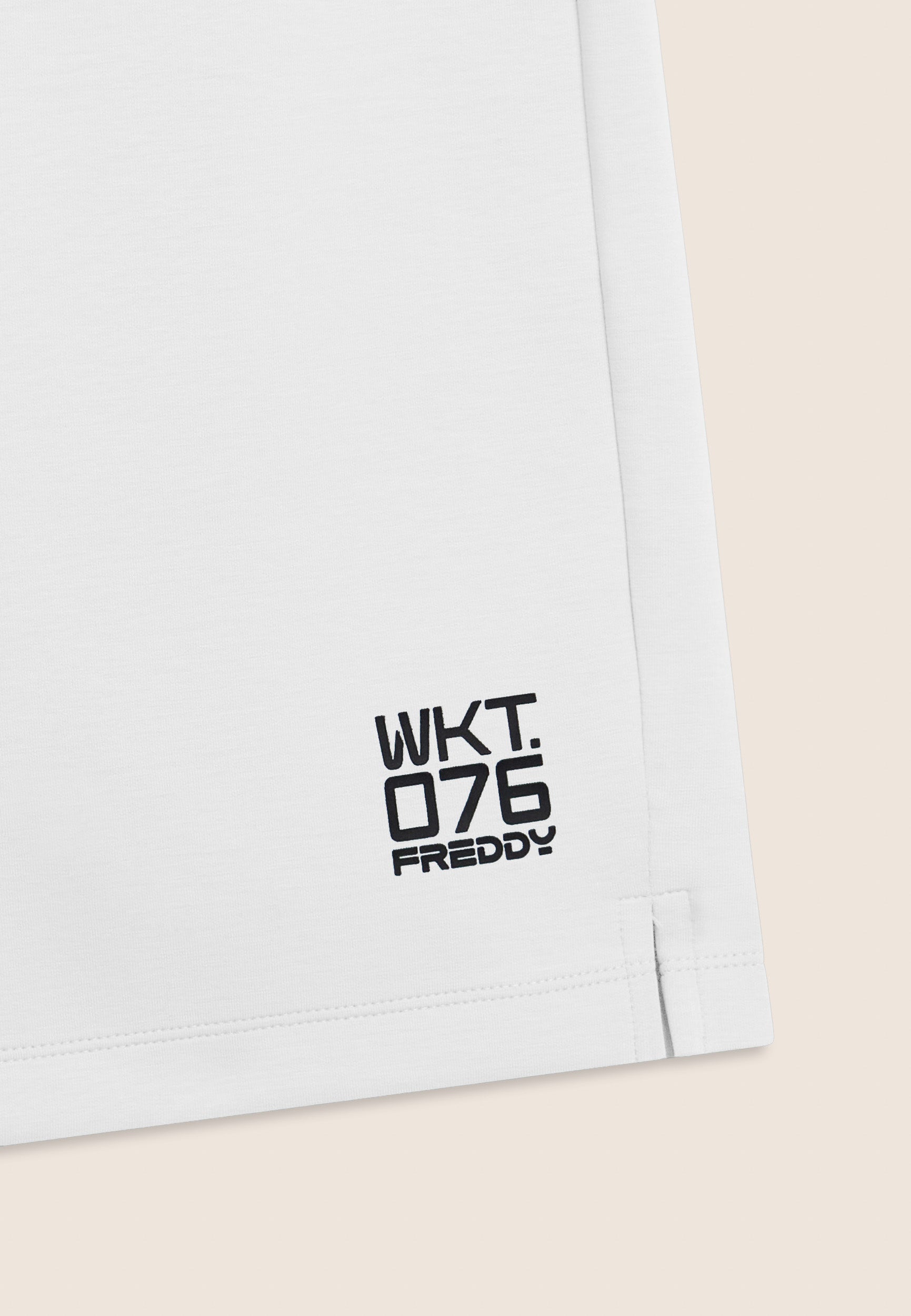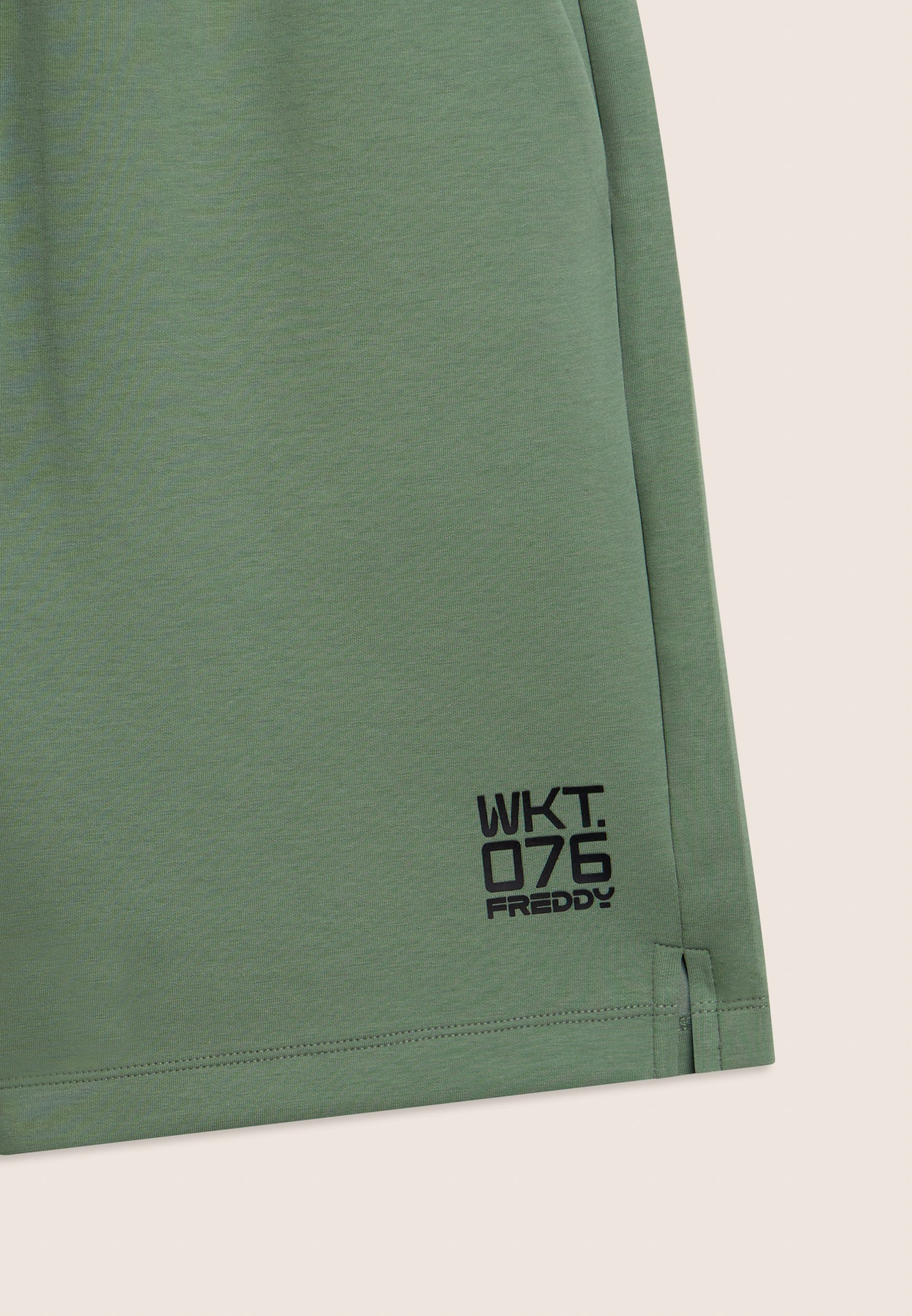 Bermuda en tissu interlock technique léger, idéal pour les entraînements d’été. Coupe confortable et longueur au-dessus du genou. Taille classique avec une élastique interne et cordon de serrage, jambe droite avec fentes latérales au bas pour plus de liberté. Poches intérieures à l’avant et poche arrière droite très pratique avec une fermeture éclair en diagonale. Sur le bas de la jambe gauche est apposé l’imprimé mat « WKT.076 » avec le logo Freddy. Le tissu garantit le confort, la durabilité et la liberté de mouvement.