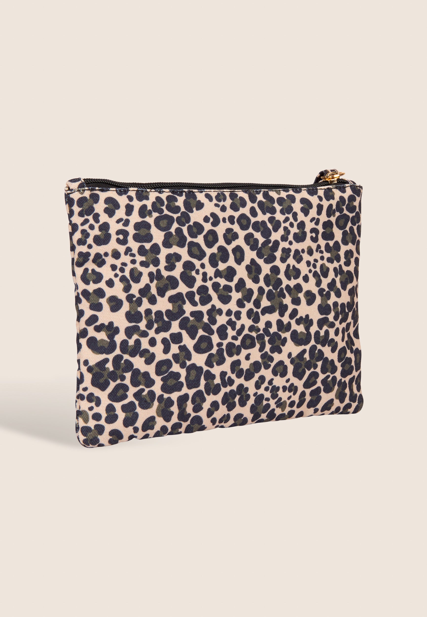 Pochette à imprimé animal en toile avec fermeture éclair et logo en paillettes