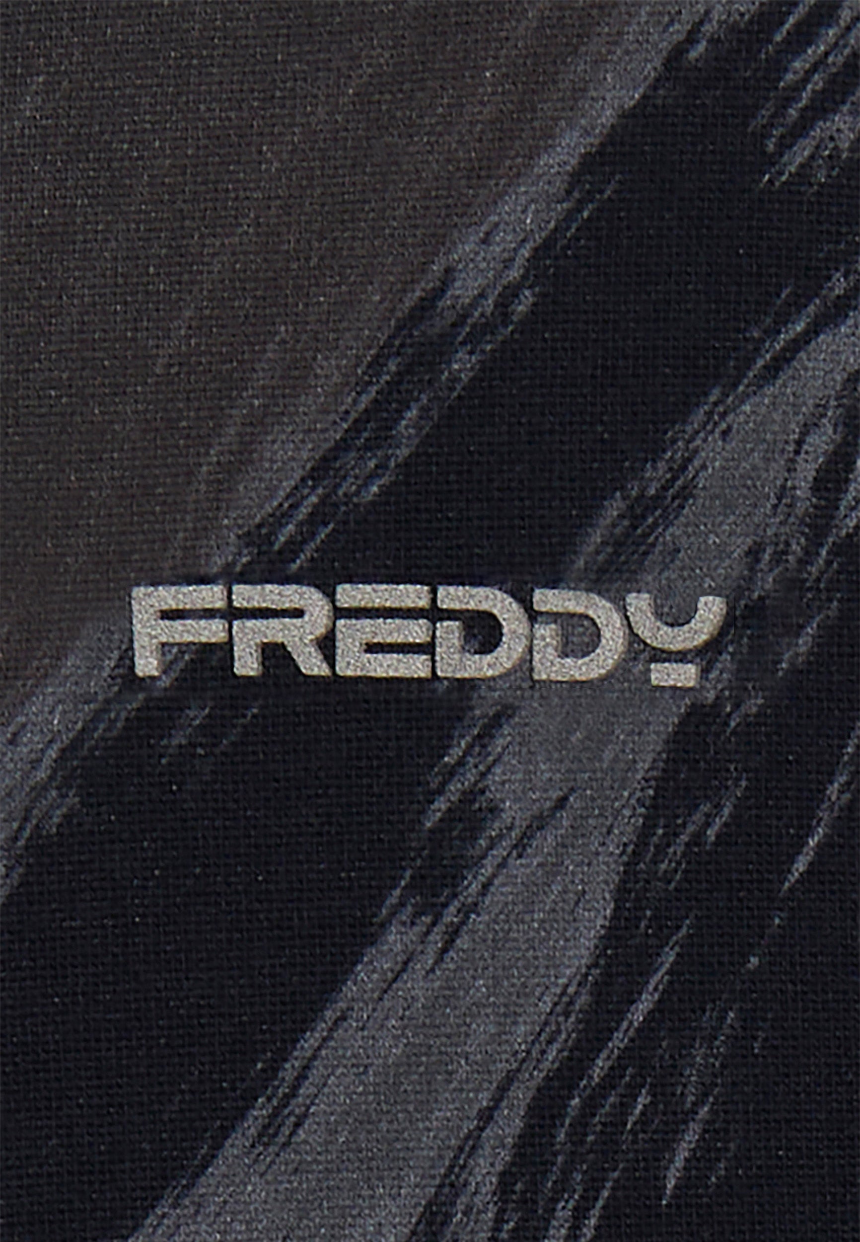 Sweat-shirt de sport pour hommes en molleton brossé de pur coton, avec un imprimé intégral à effet « coup de pinceau », pour un look dynamique. La capuche est réglable et doublée de jersey, les manches se caractérisent par des bandes côtelées aux poignets et le bord est élastique. Il est caractérisé par une poche kangourou intérieure et un petit logo FREDDY sur le cœur. Coupe classique.