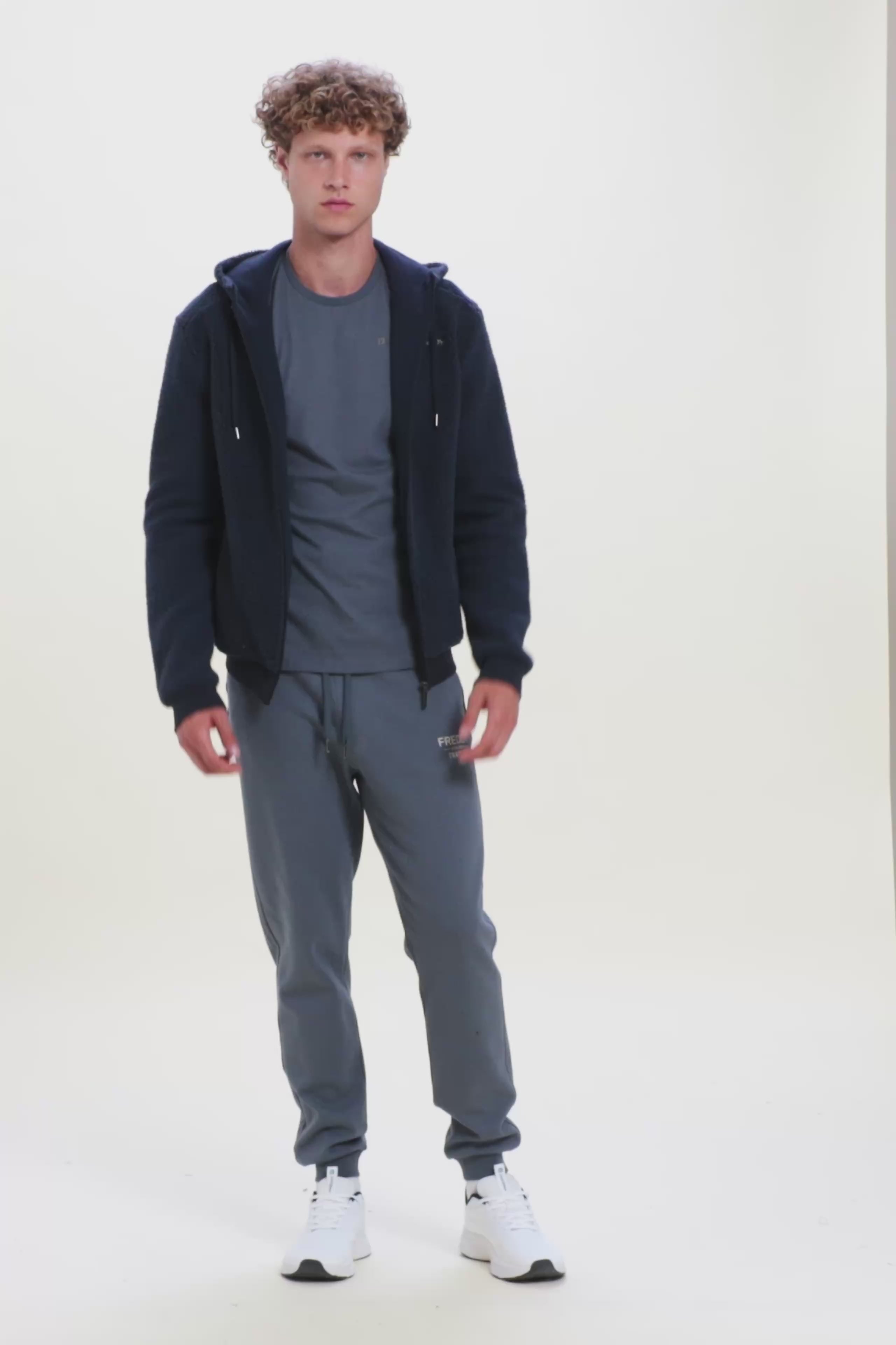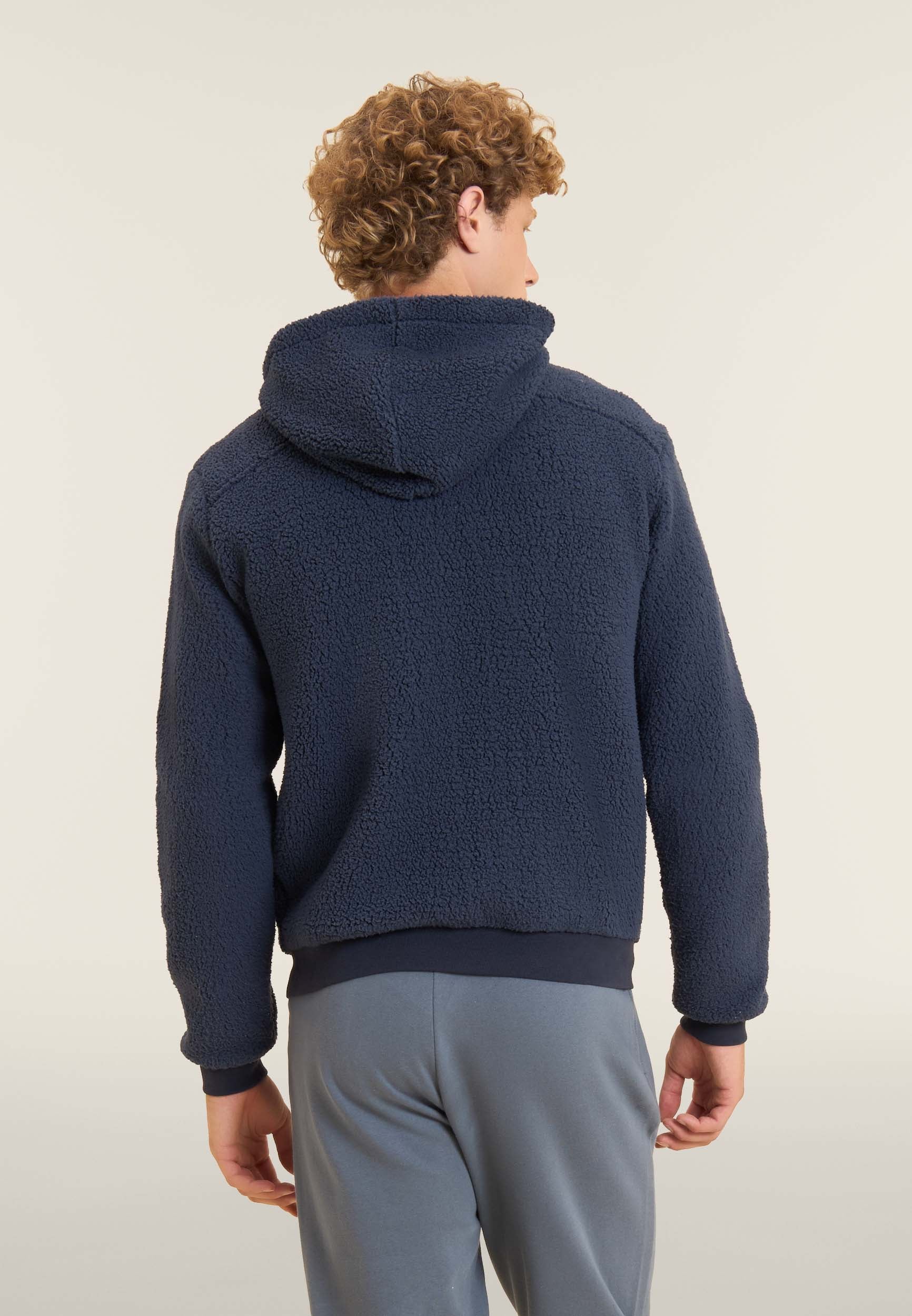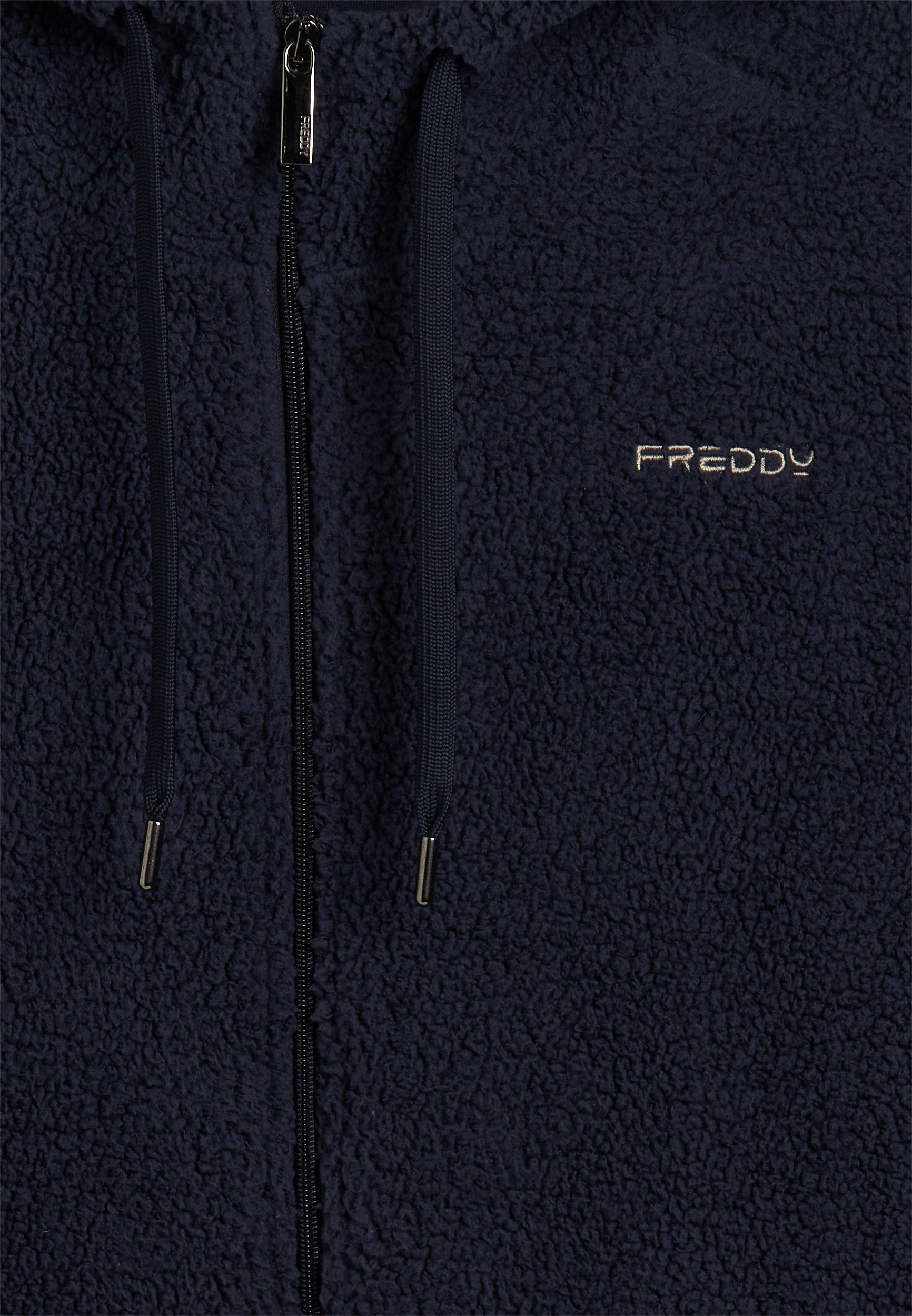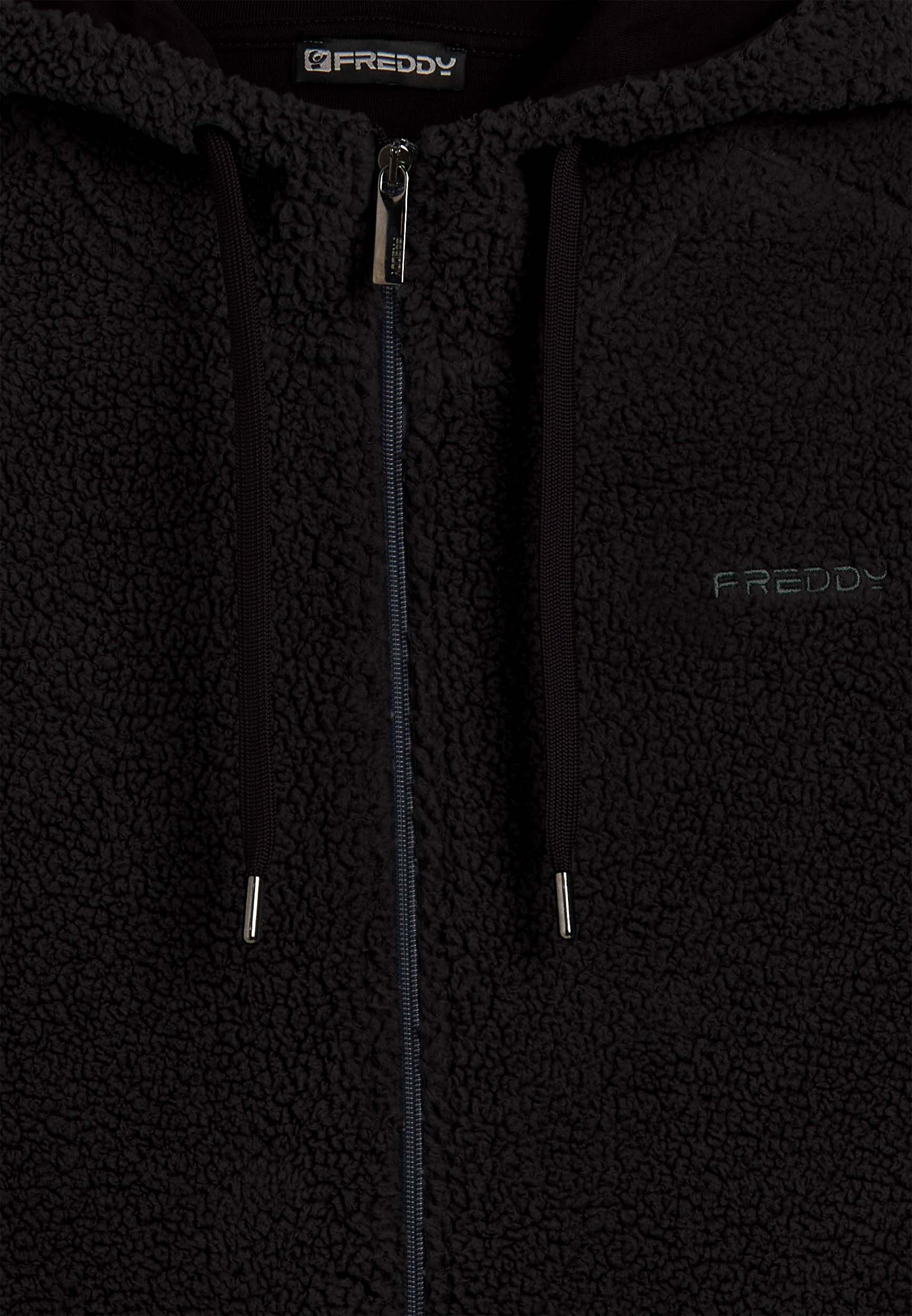 Sweat-shirt pour hommes en tissu Sherpa avec capuche doublée de jersey et cordon ajustable. Il se caractérise par des manches avec bandes côtelées aux poignets, un bord élastique et des poches passepoilées. Le logo FREDDY imprimé sur le cœur ajoute une touche graphique discrète.