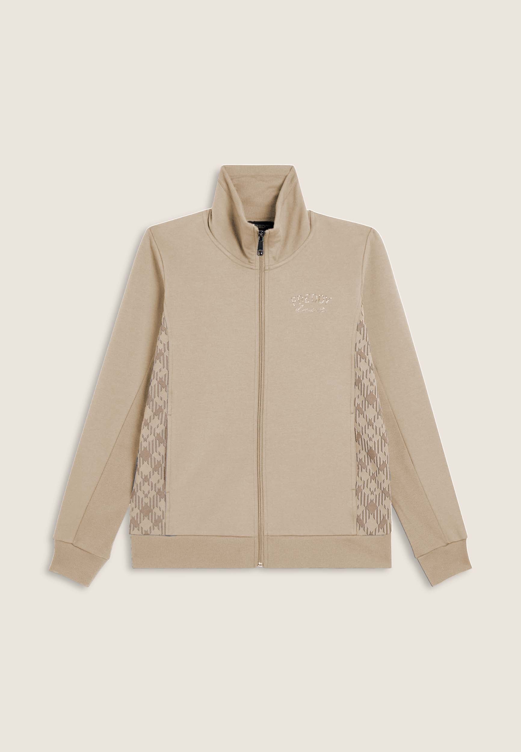 Sweat-shirt entièrement zippé avec col montant et pièces décoratives géométriques