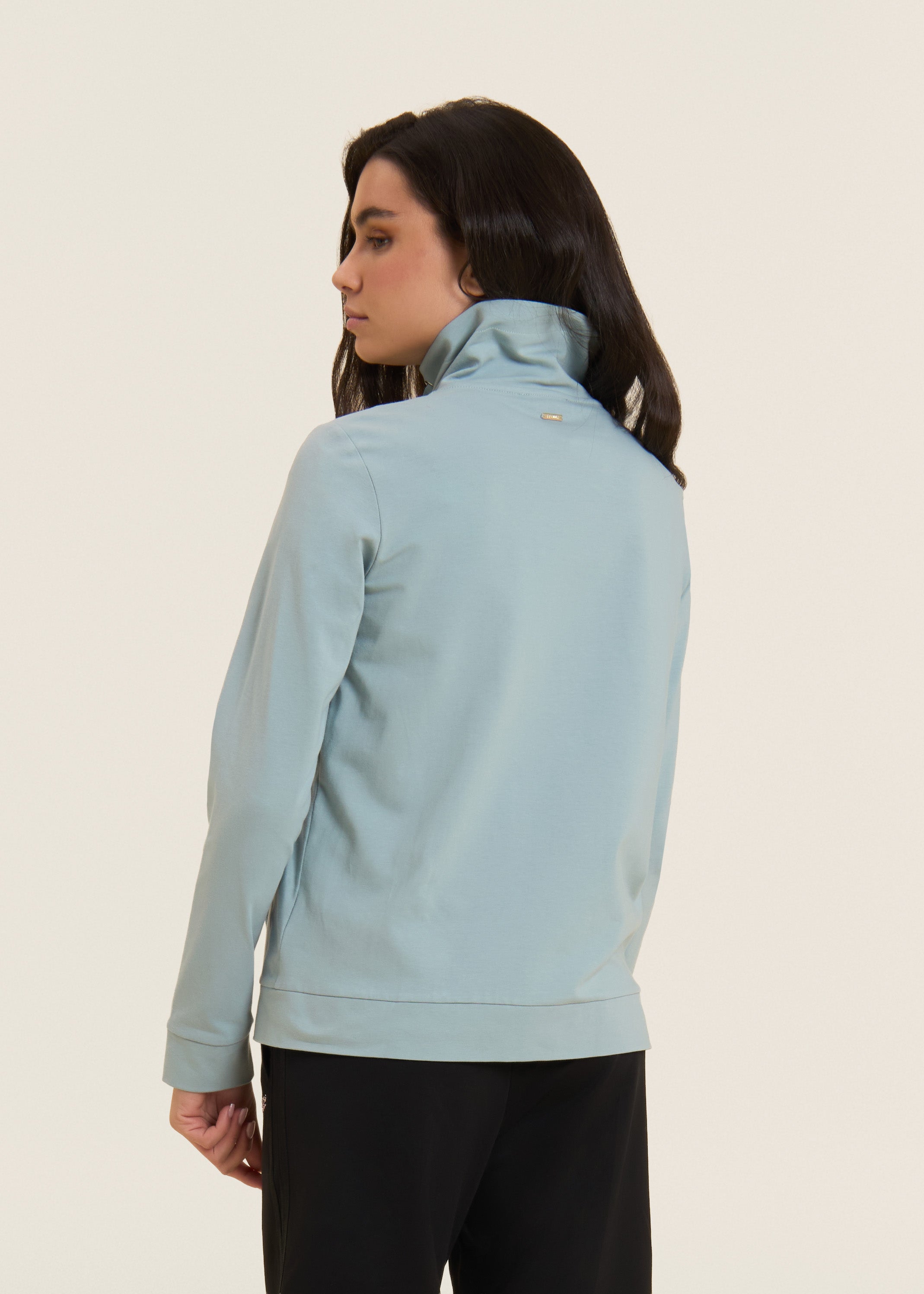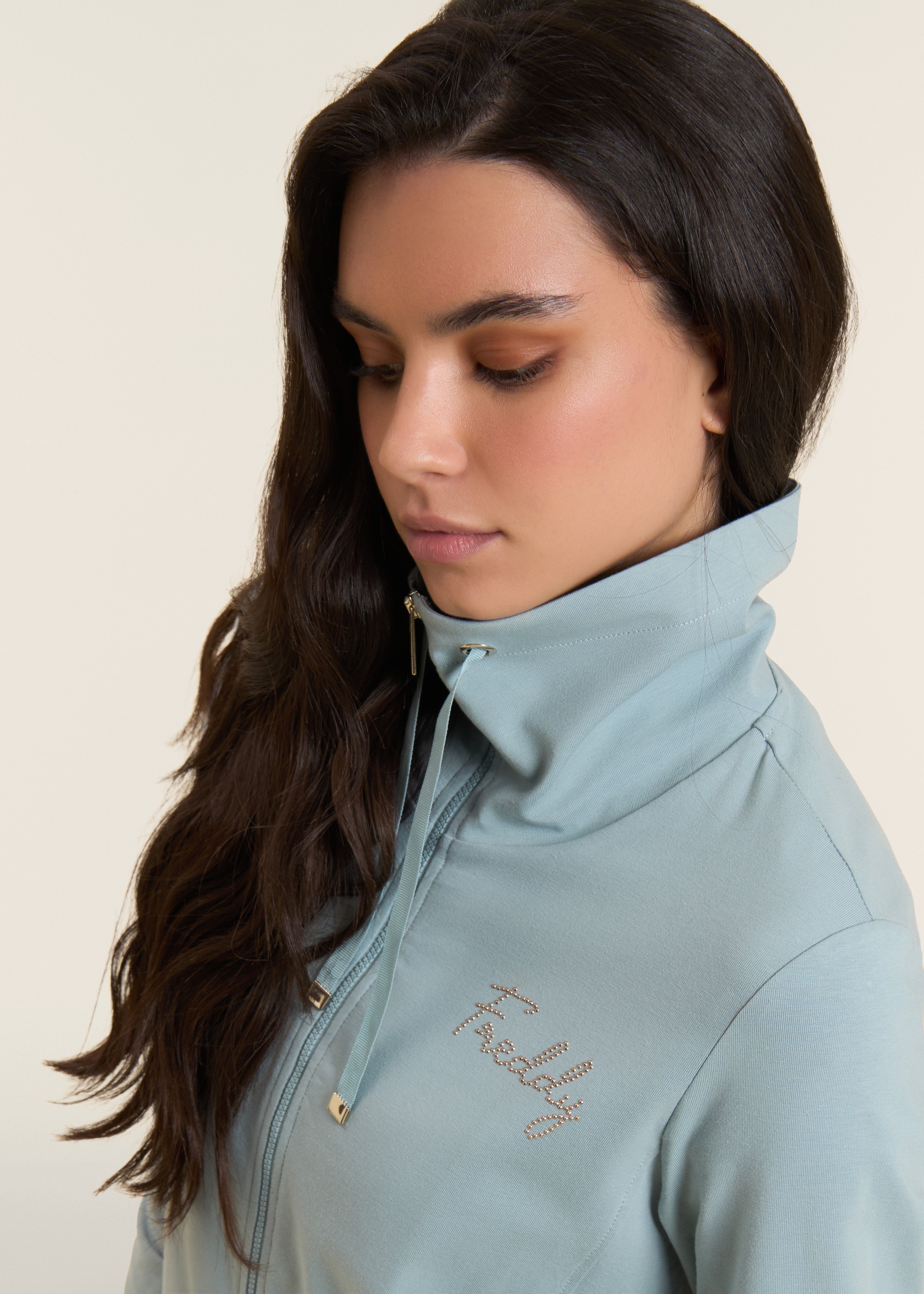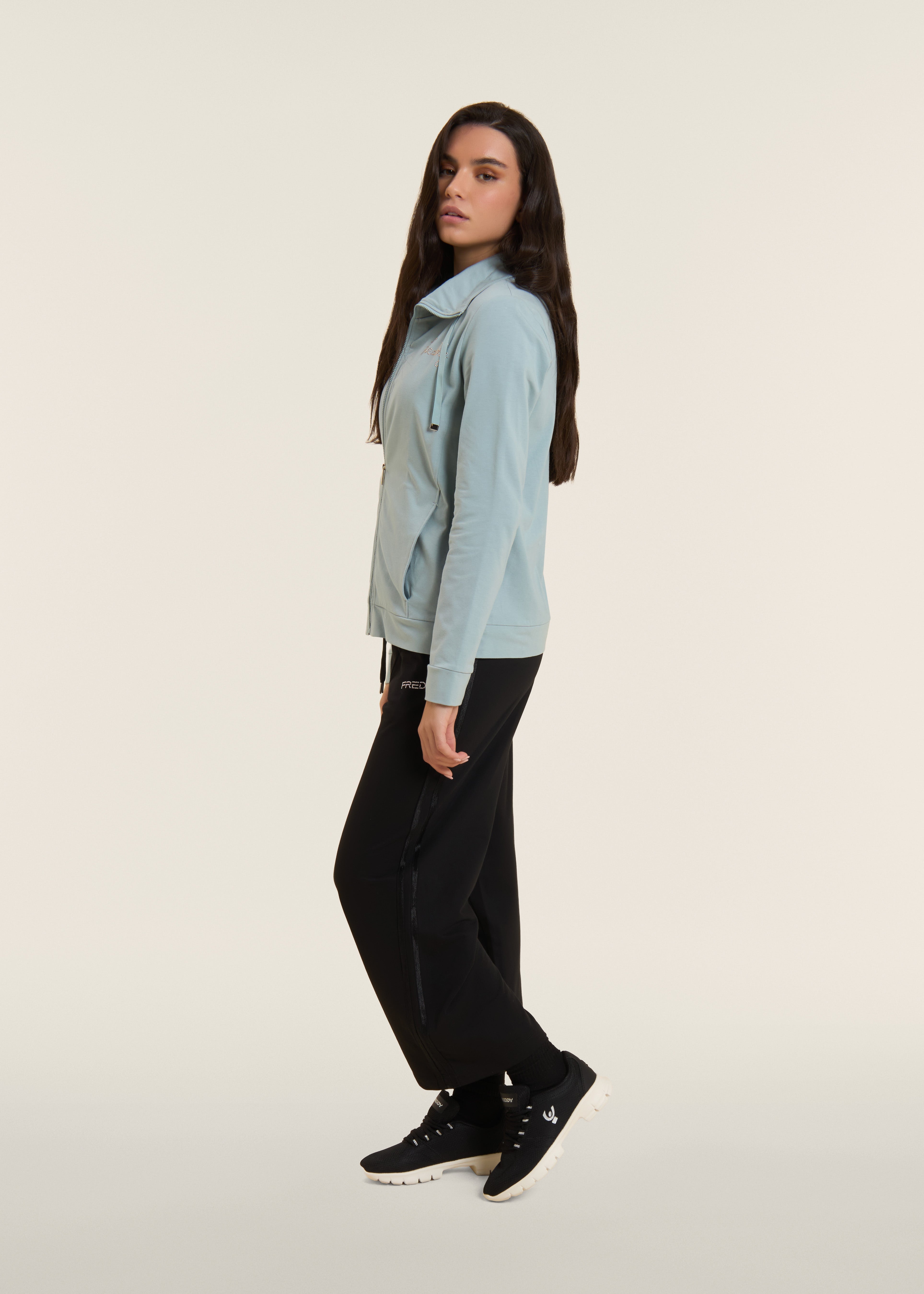Sweat-shirt zippé à la coupe et longueur classiques, caractérisé par une ligne essentielle enrichie de détails fins. Le col montant avec cordon de serrage est doublé à l’intérieur et le bas avec une bande définit la silhouette. Les poches passepoilées offrent une fonctionnalité discrète, parfaite pour un usage quotidien. Les manches longues avec poignets assurent le confort. Le petit logo Freddy clouté sur le cœur et la plaque dorée du logo FREDDY sous l’encolure arrière rehaussent le vêtement. Fabriqué en jersey élastique de coton épais.