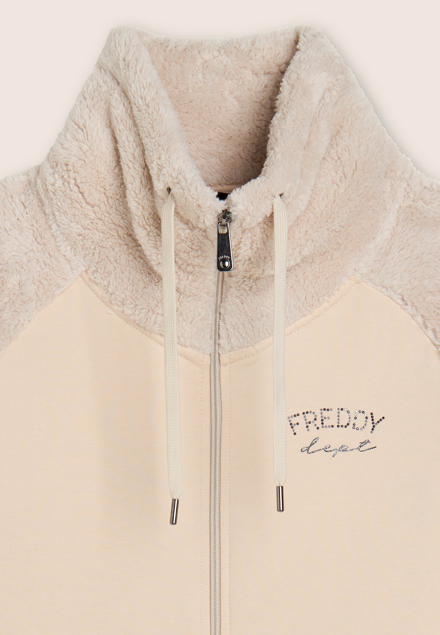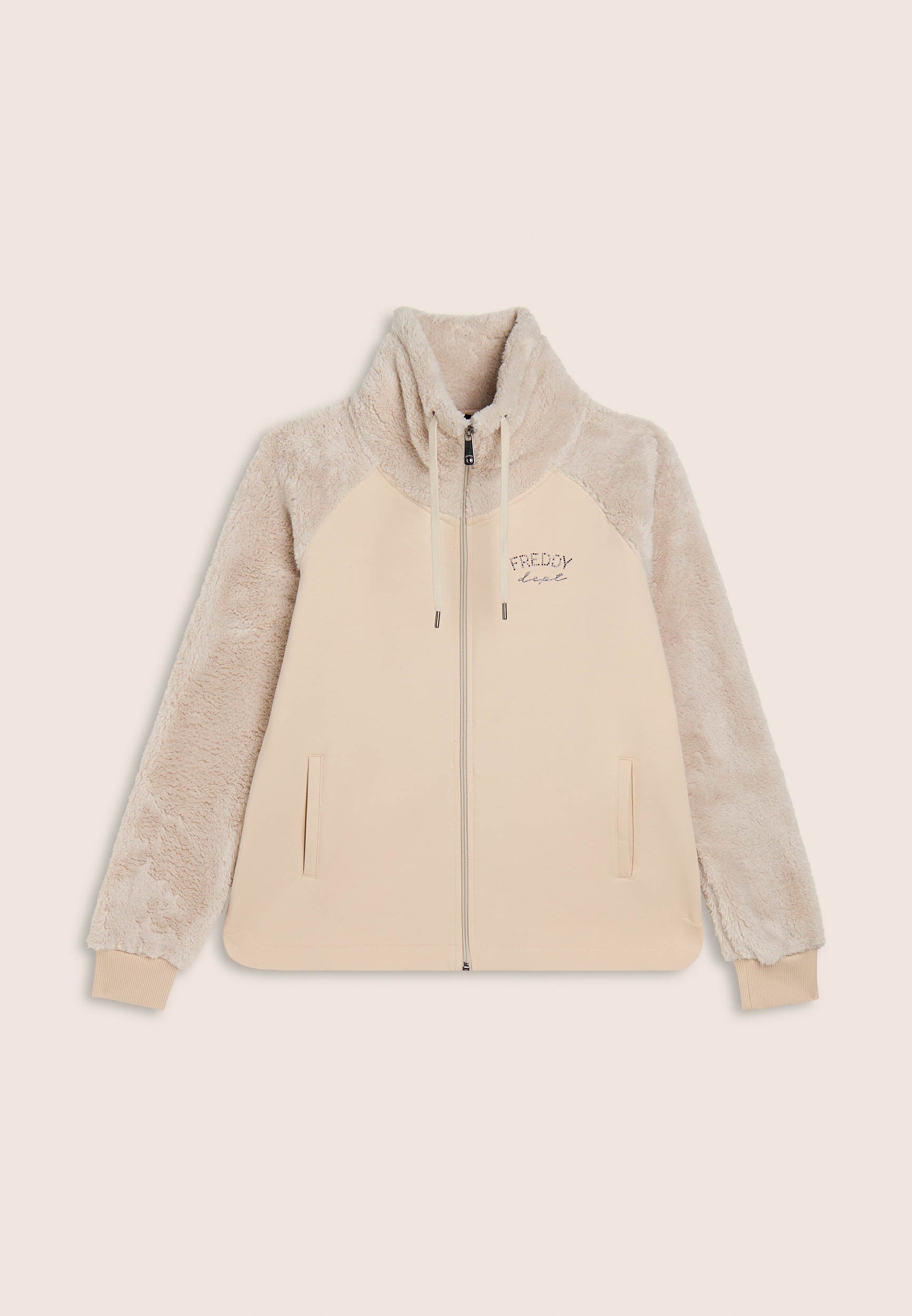 Sweat-shirt zippé avec col montant, manches et col en tissu Sherpa
