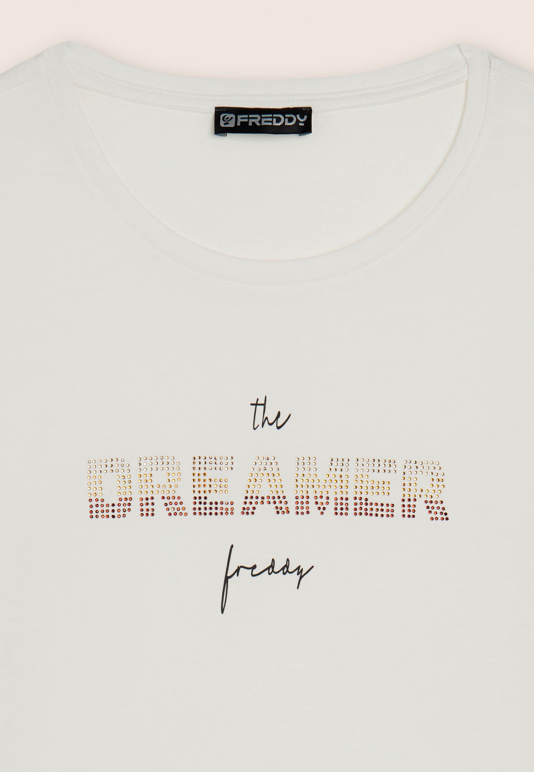 Un style décontracté avec une touche précieuse : ce t-shirt à manches longues et à coupe classique se distingue par le graphique « DREAMER » décoré de paillettes multicolores et le petit logo FREDDY de couleur assortie. Fabriqué en jersey Supima, un fin coton américain qui conserve sa douceur et sa couleur au fil du temps, il est parfait pour être porté tous les jours avec une touche de brillance.
