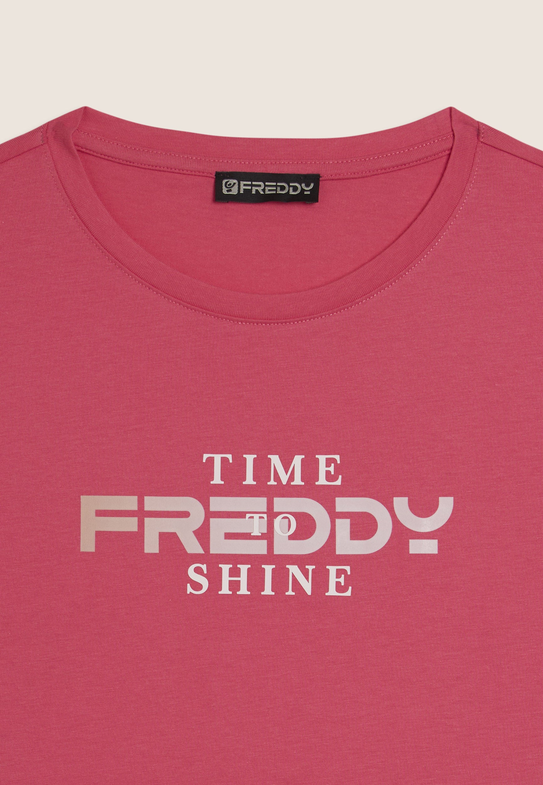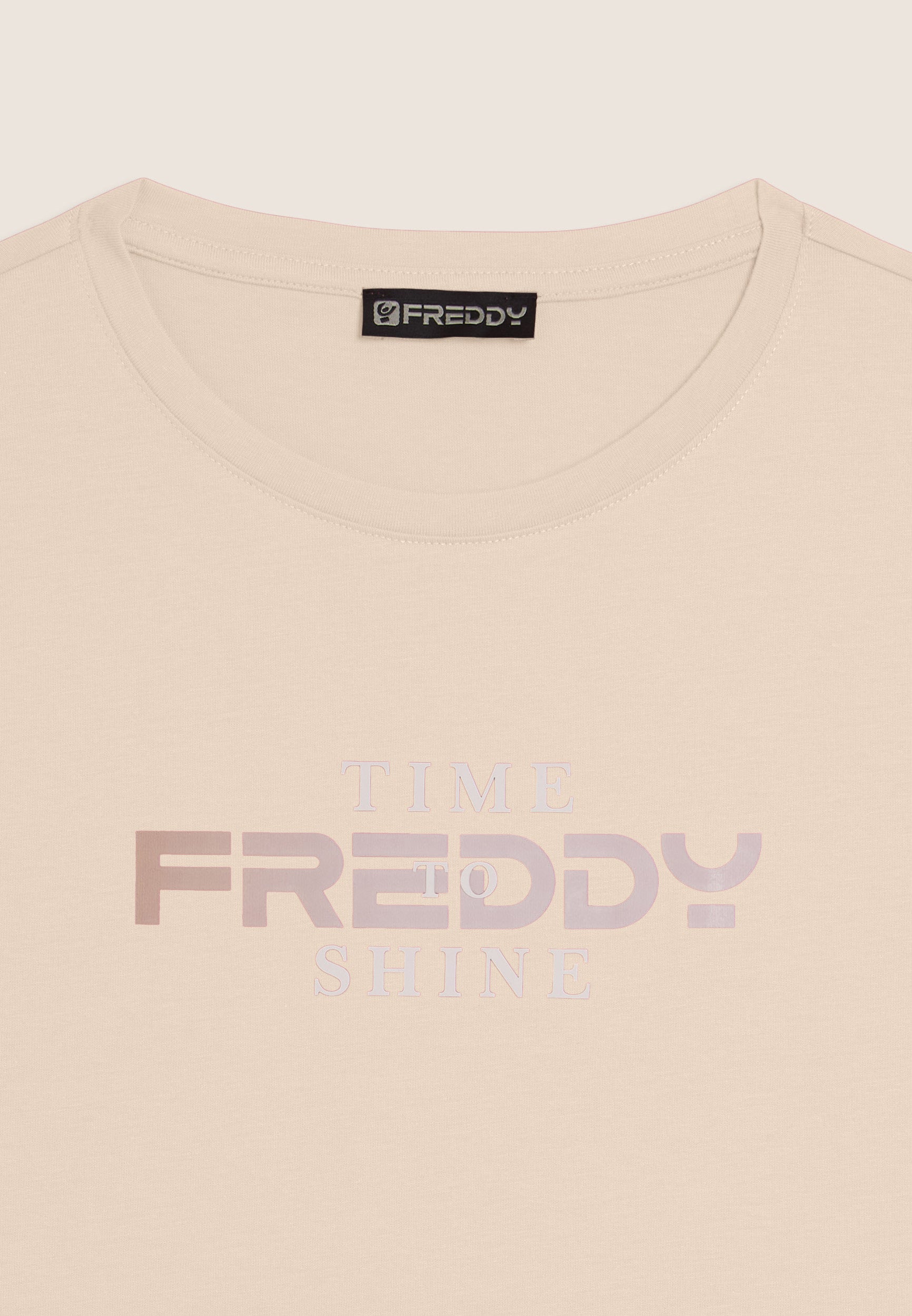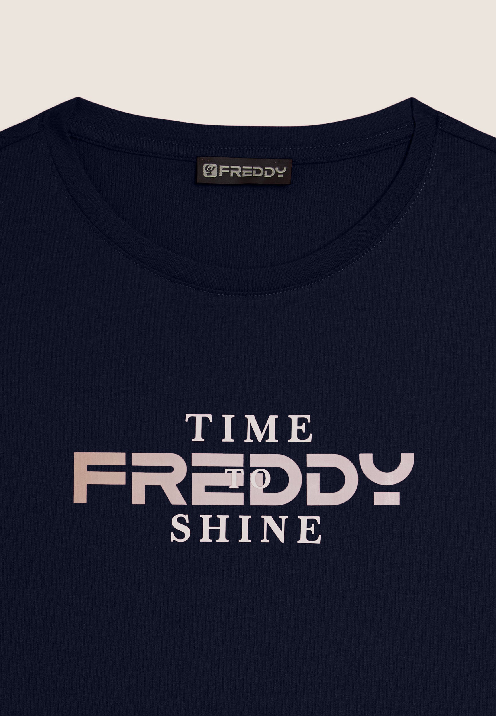 T-shirt Comfort Fit con Logo FREDDY e Slogan "Time Shine"