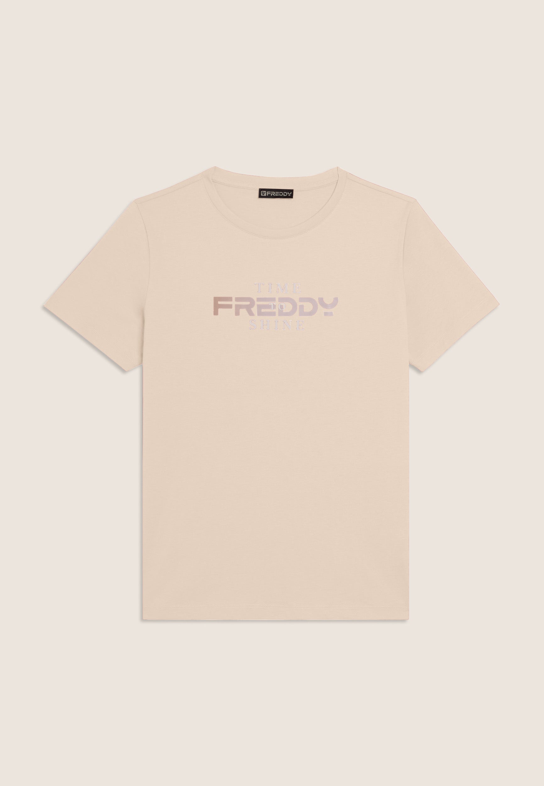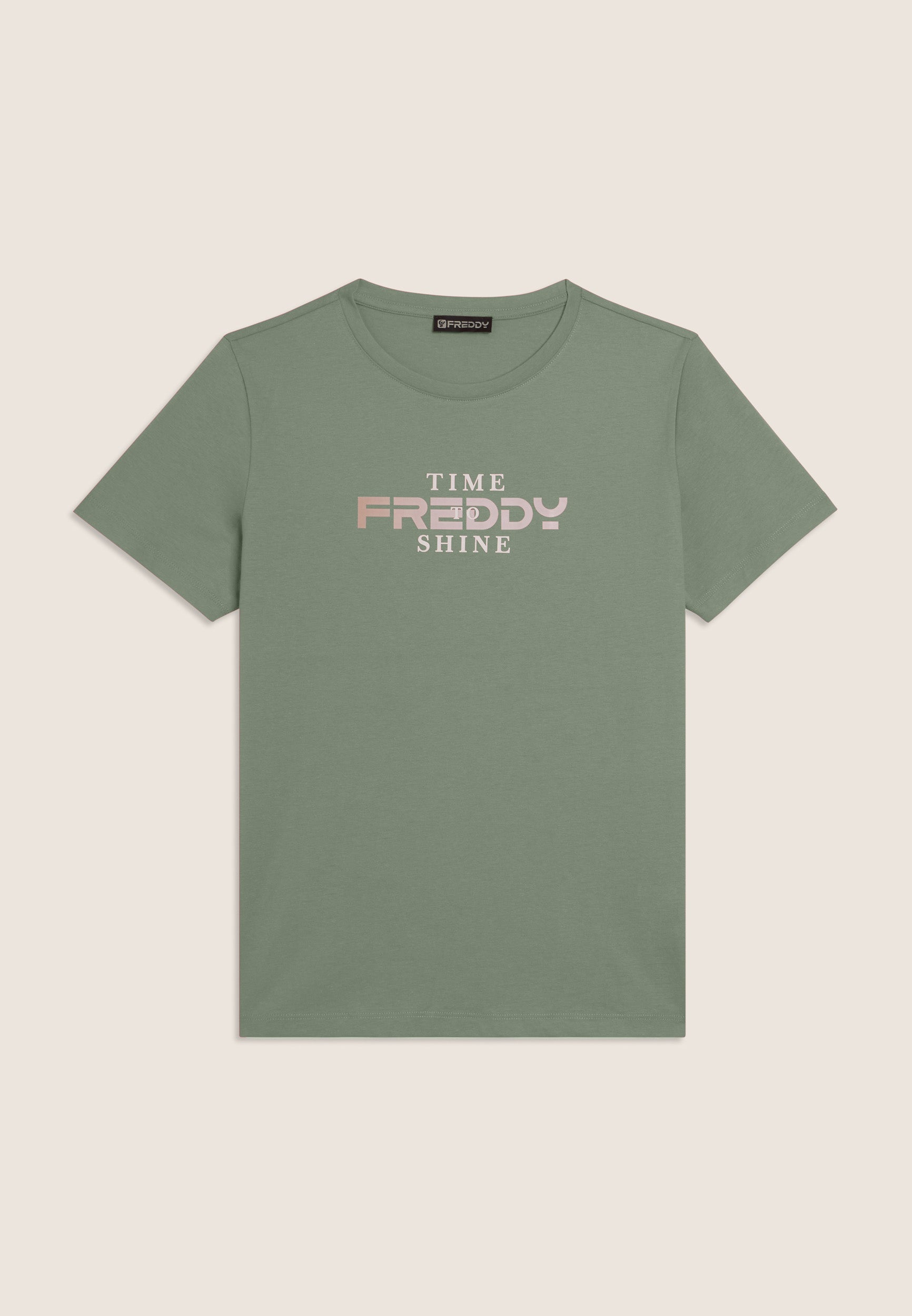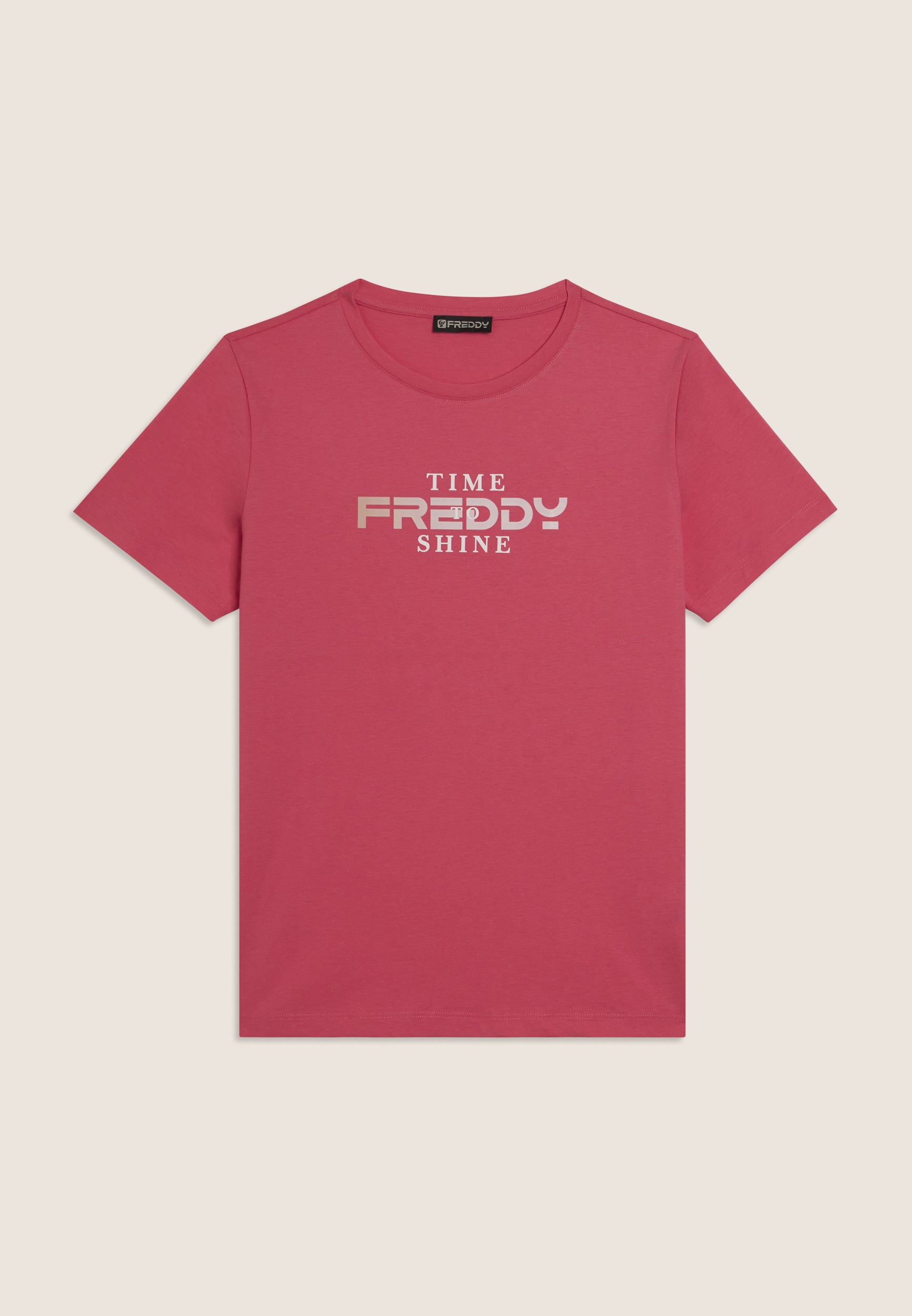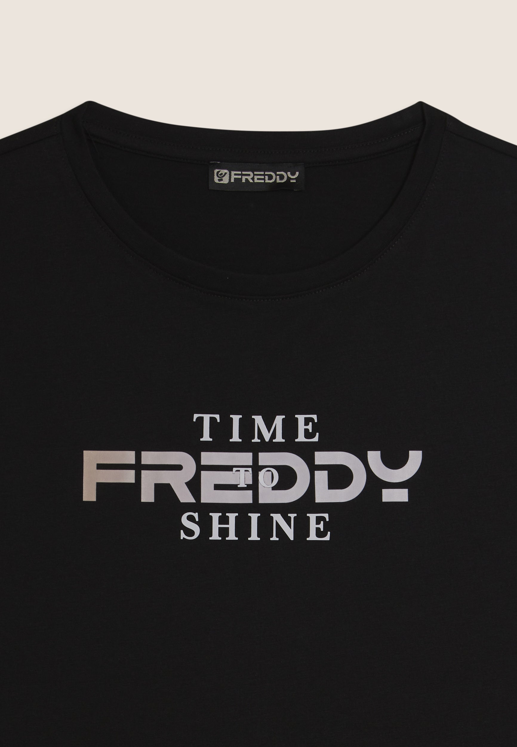 T-shirt Comfort Fit con Logo FREDDY e Slogan "Time Shine"