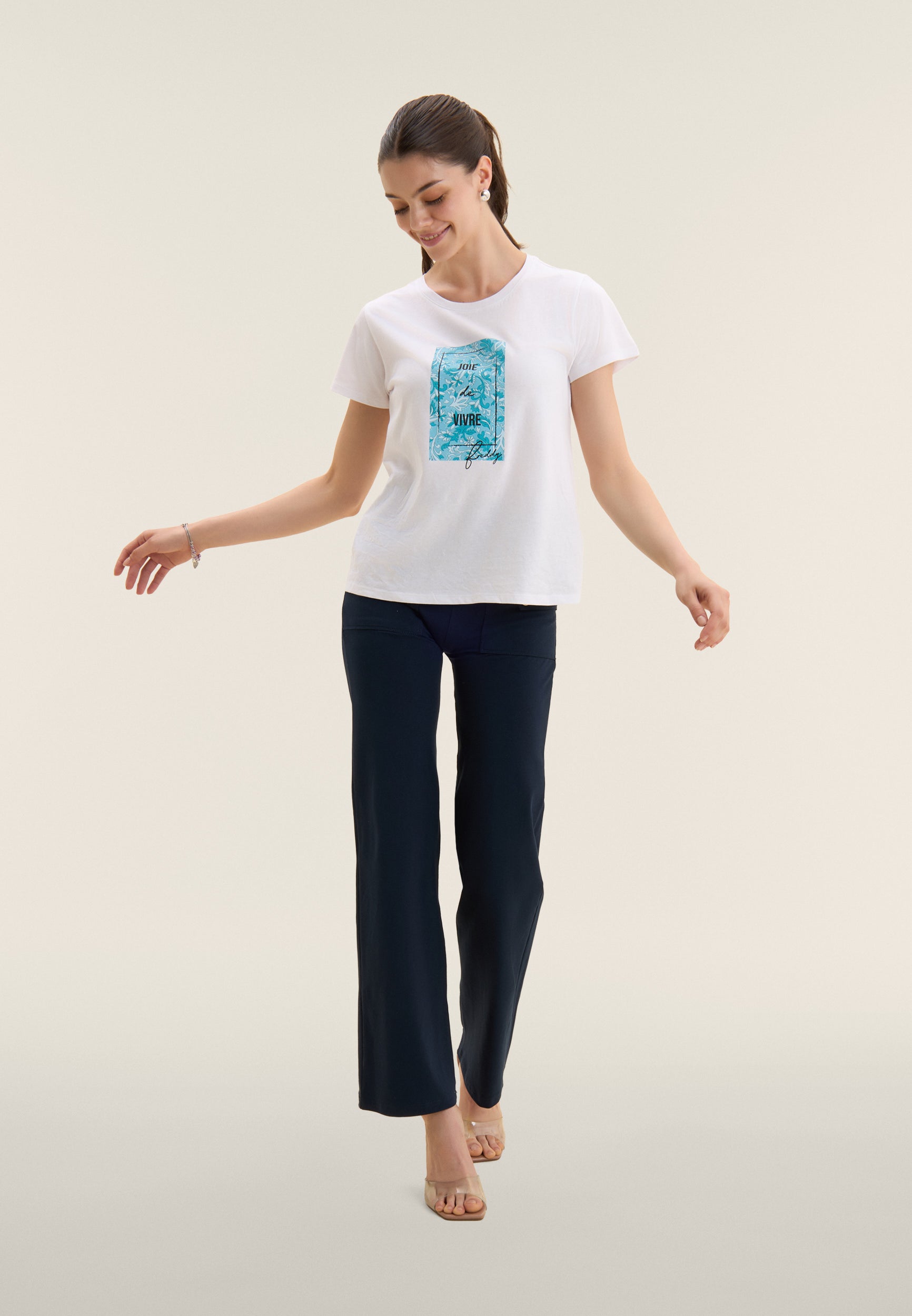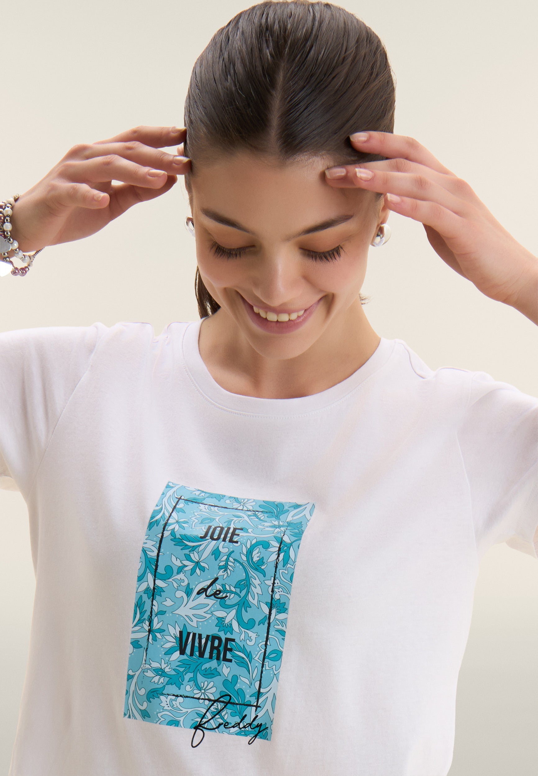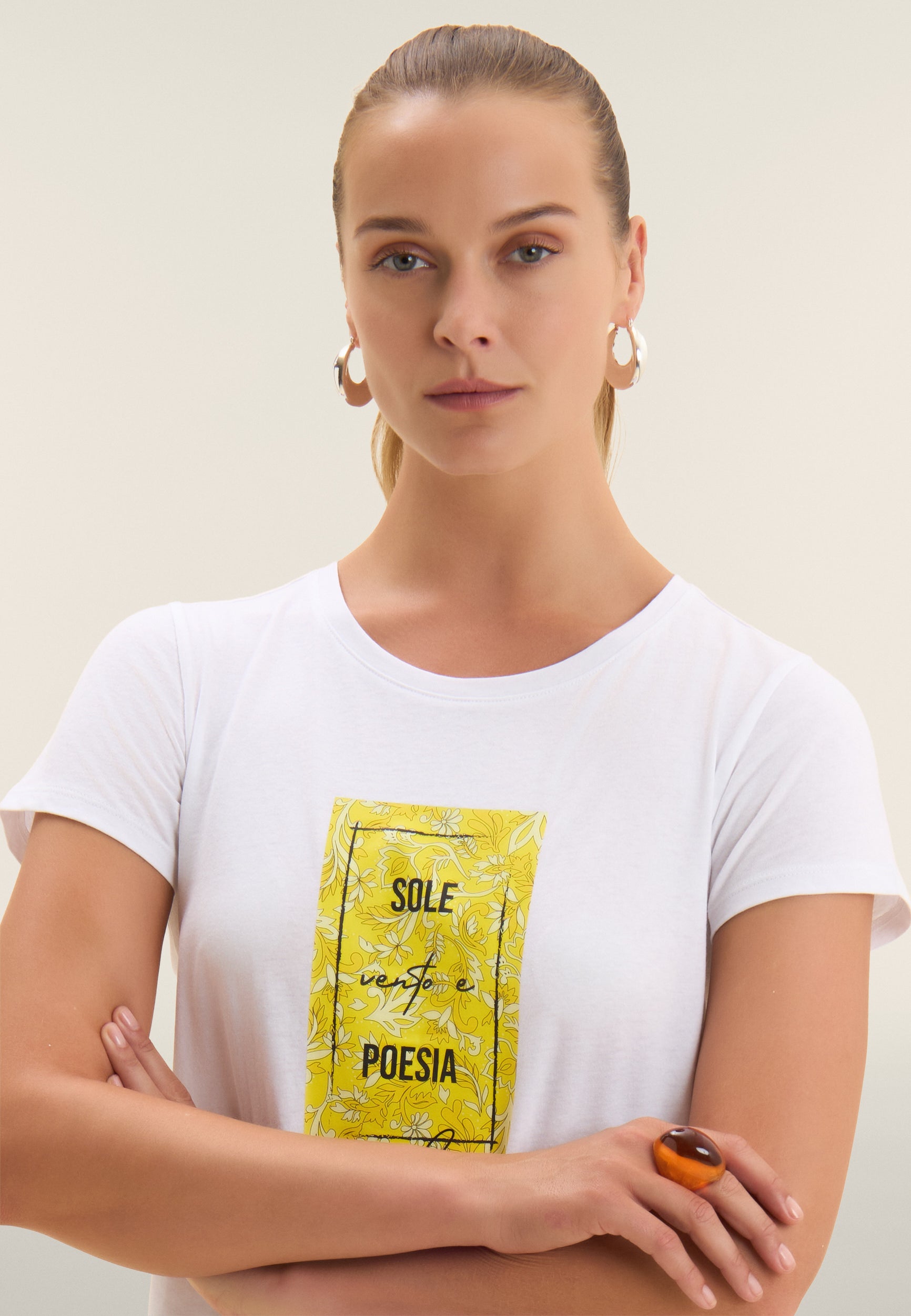 Porta un tocco di colore nei tuoi look con questa t-shirt a manica corta realizzata in jersey di cotone Supima, un tessuto pregiato, morbido e resistente. La vestibilità regular e il fondo dritto la rendono versatile e comoda da indossare ogni giorno. Il girocollo classico e la stampa floreale con lettering donano un’allure femminile e fresca, perfetta per il tempo libero o l’attività leggera.