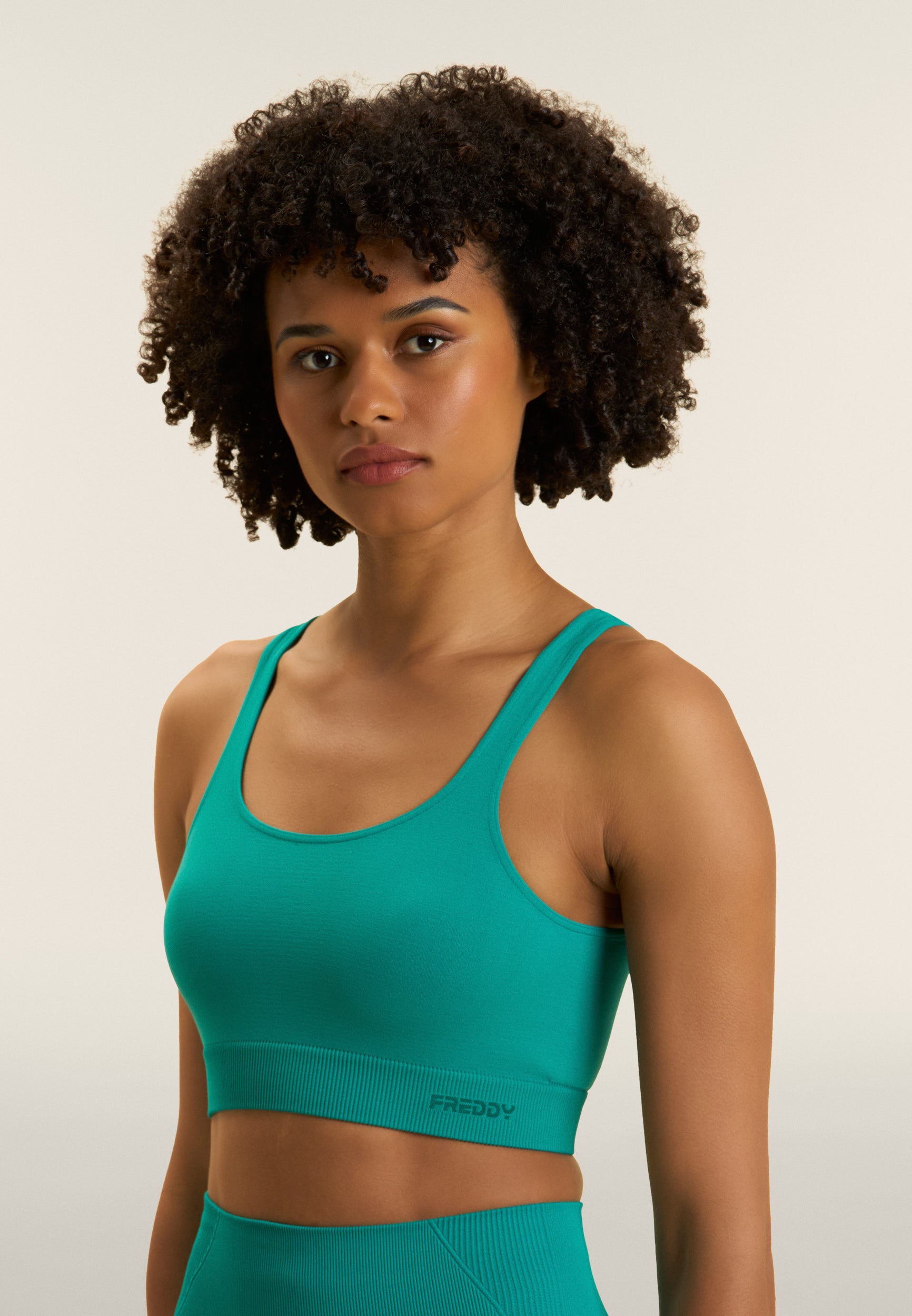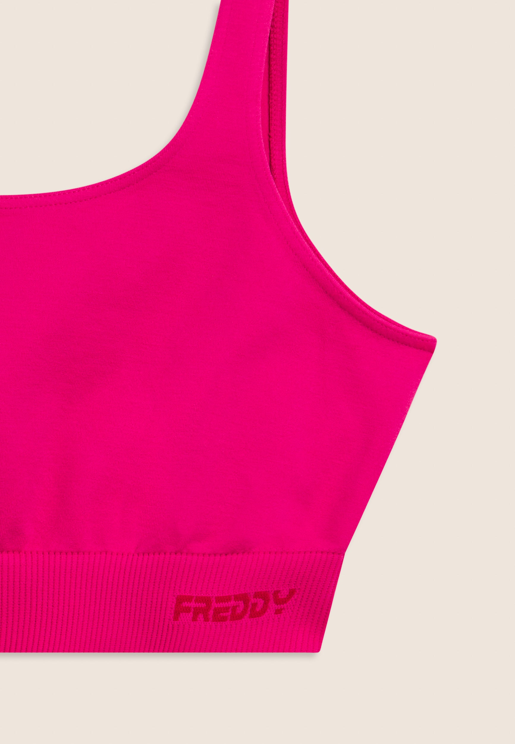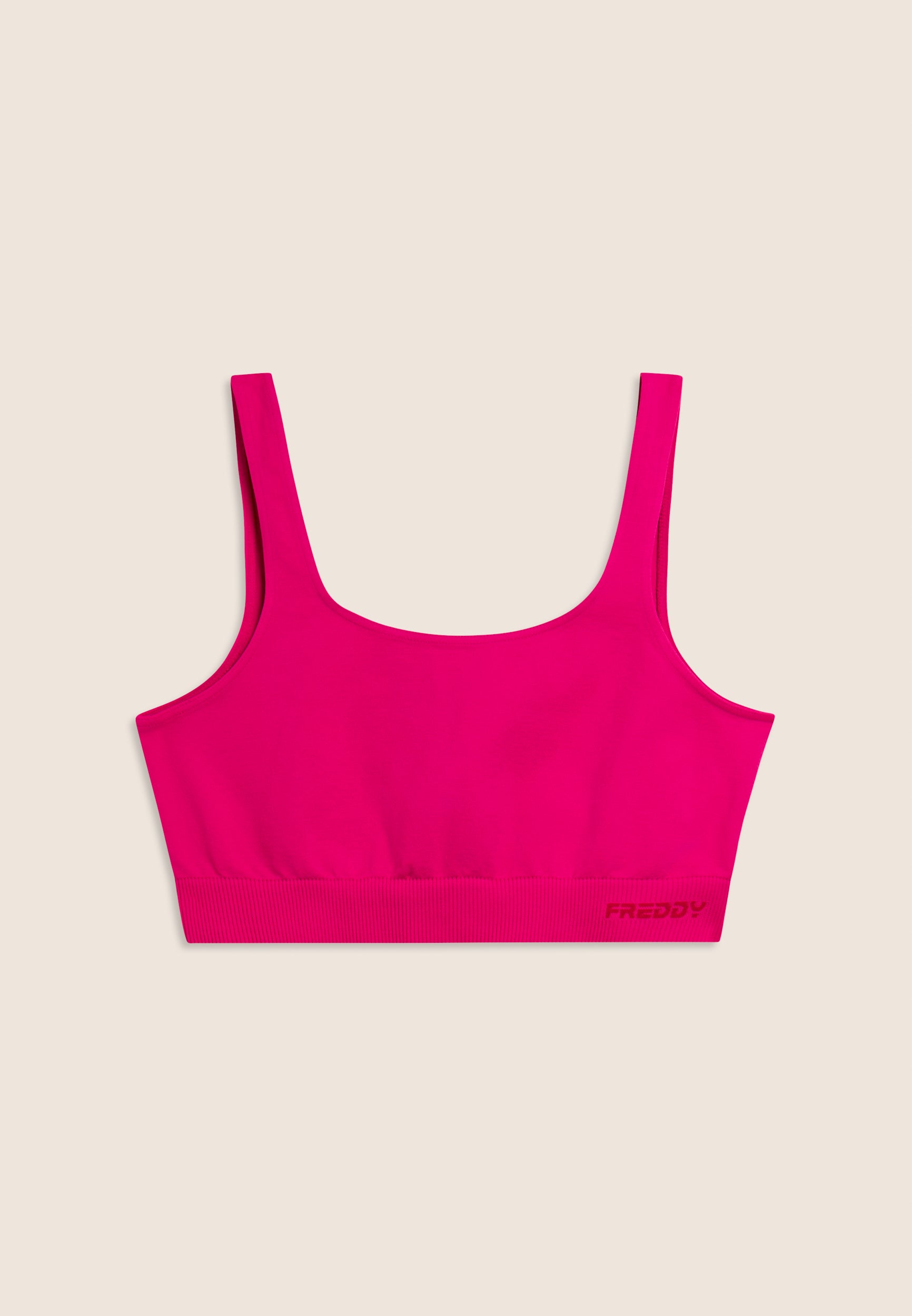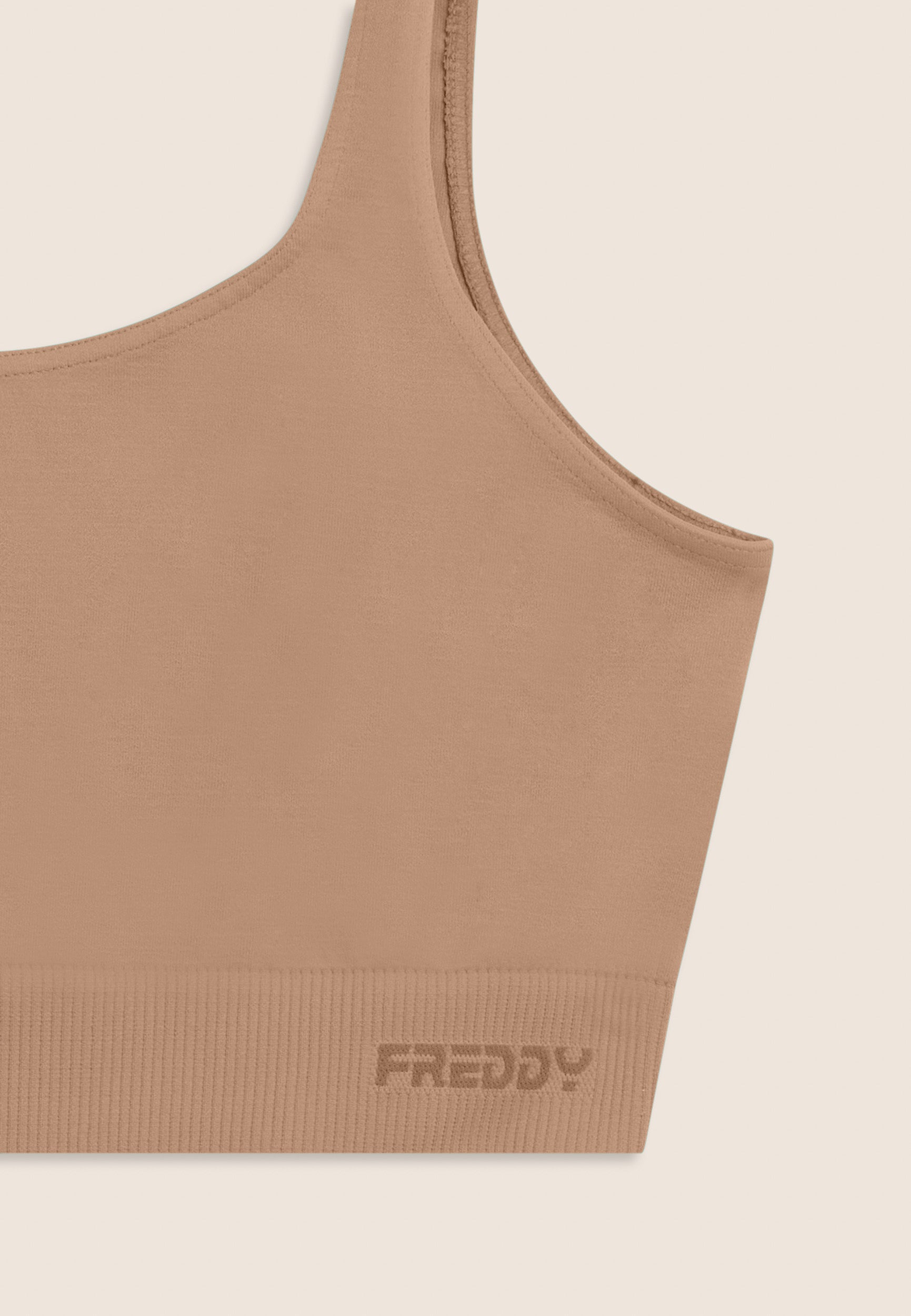 Questo top sportivo seamless offre un supporto medio, perfetto per le attività sportive. La fascia sottoseno in costina, decorata con il logo FREDDY, garantisce un supporto aggiuntivo, mentre lo scollo tondo ampio sia anteriore che posteriore permette una completa libertà di movimento. Le spalline regular completano il design funzionale. Il tessuto tecnico seamless riduce al minimo le cuciture, offrendo un comfort superiore durante l'attività fisica.