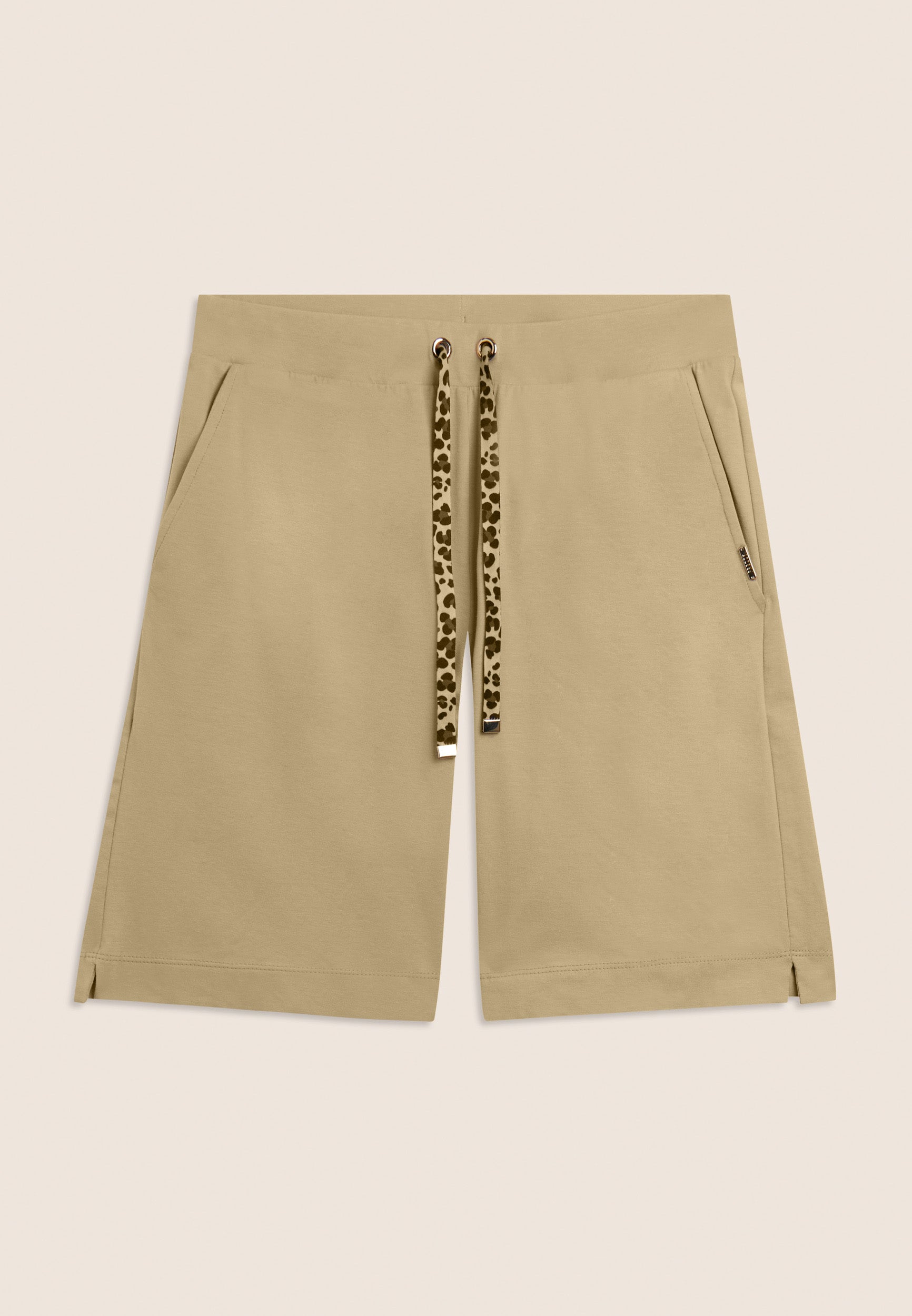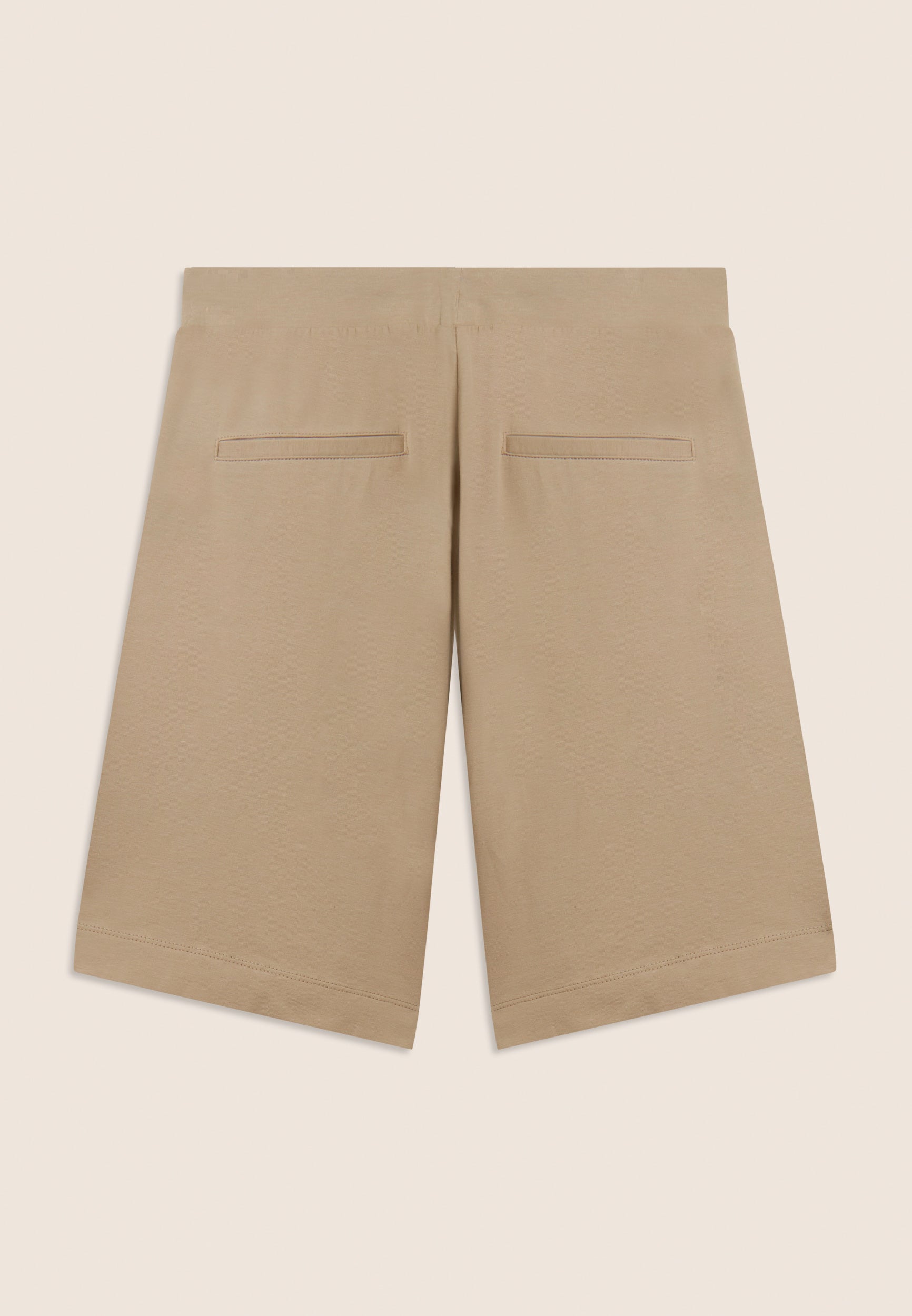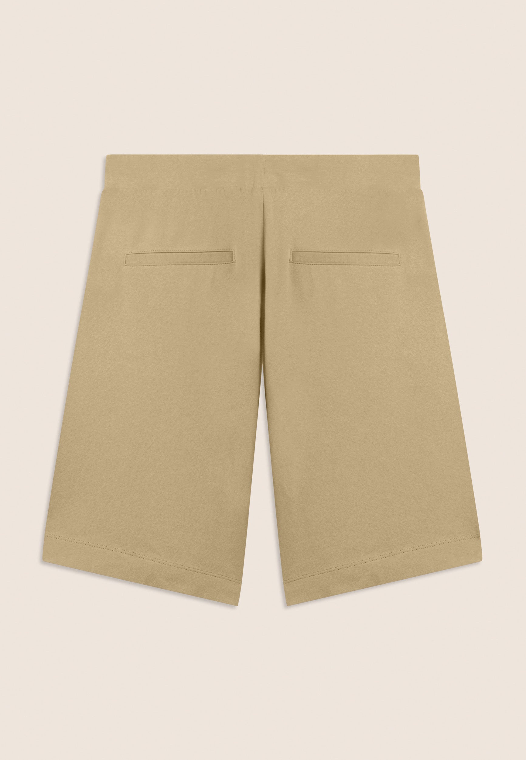 Pantaloni corti al ginocchio dalla vestibilità regular, ideali per il tempo libero. Realizzati in morbido heavy jersey stretch di cotone, offrono comfort e libertà di movimento. La vita regular è dotata di coulisse, mentre il fondo presenta piccoli spacchi laterali che donano un tocco dinamico al design. Le tasche anteriori alla francese e i finti taschini a filetto sul retro aggiungono funzionalità e stile. Completa il look la placchetta dorata FREDDY sulla tasca sinistra.