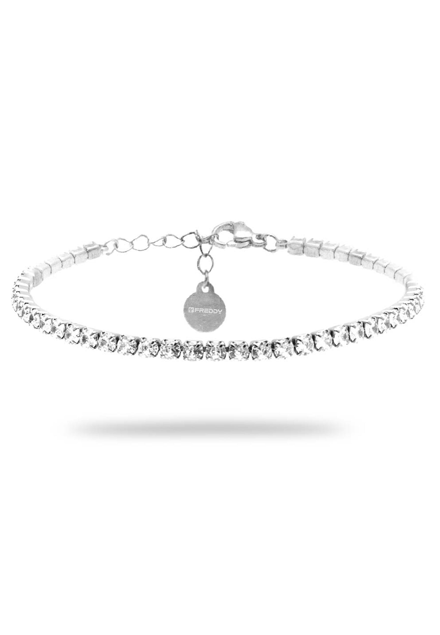 Questo bracciale tennis in acciaio silver 316L ipoallergenico rappresenta l'eleganza pura, grazie alle sue scintillanti gemme bianche da 3 mm, incastonate lungo tutto il design per un effetto luminoso e raffinato. La finitura argentata dell’acciaio e la luminosità delle gemme bianche creano un abbinamento classico e sofisticato, ideale per completare qualsiasi look con un tocco di lusso.