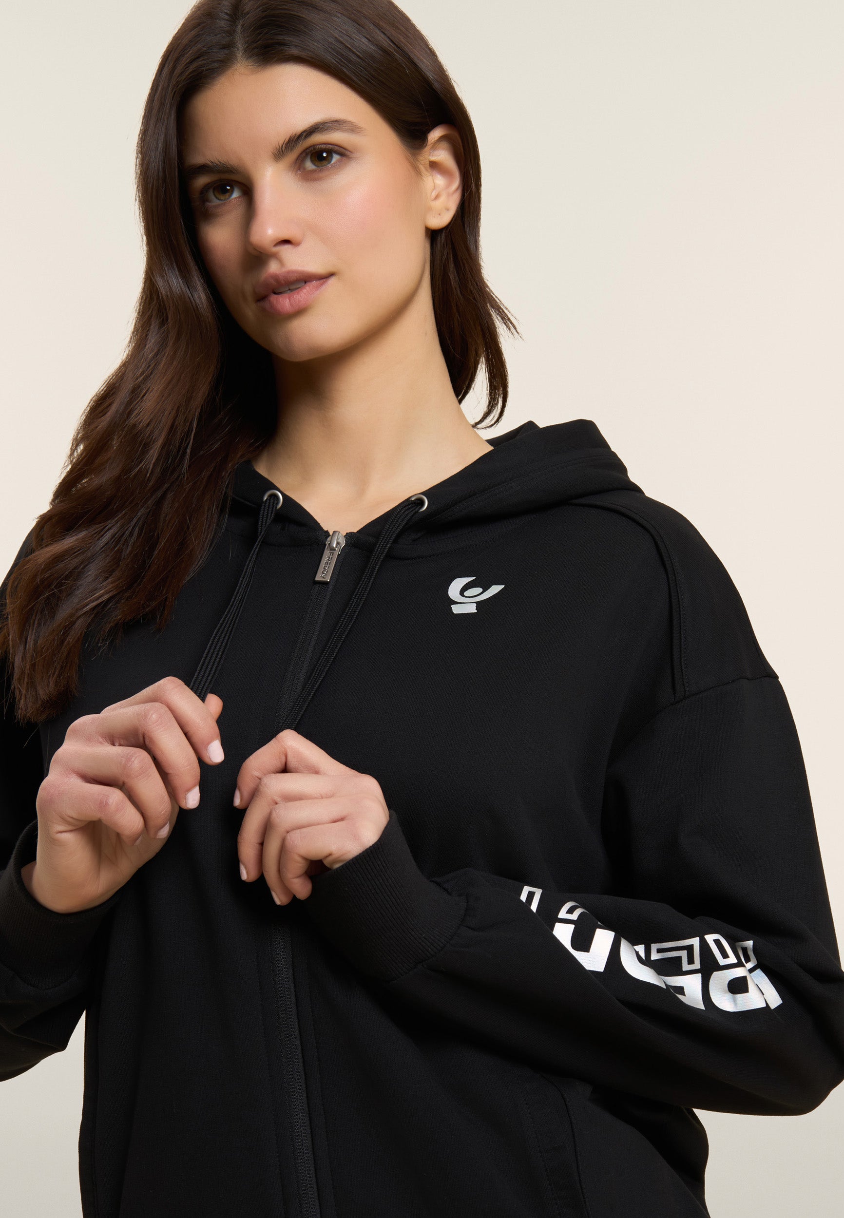 Felpa con zip e cappuccio con logo perlato sulla manica