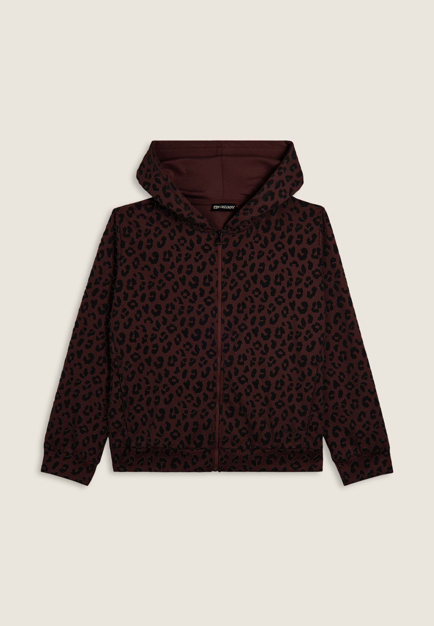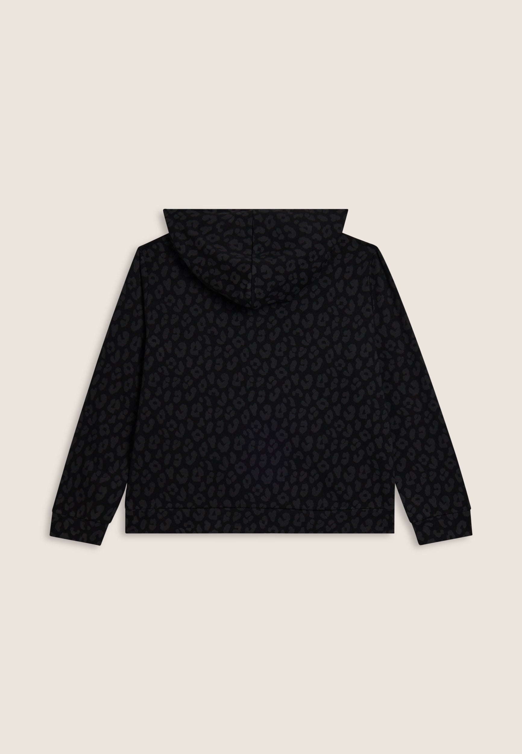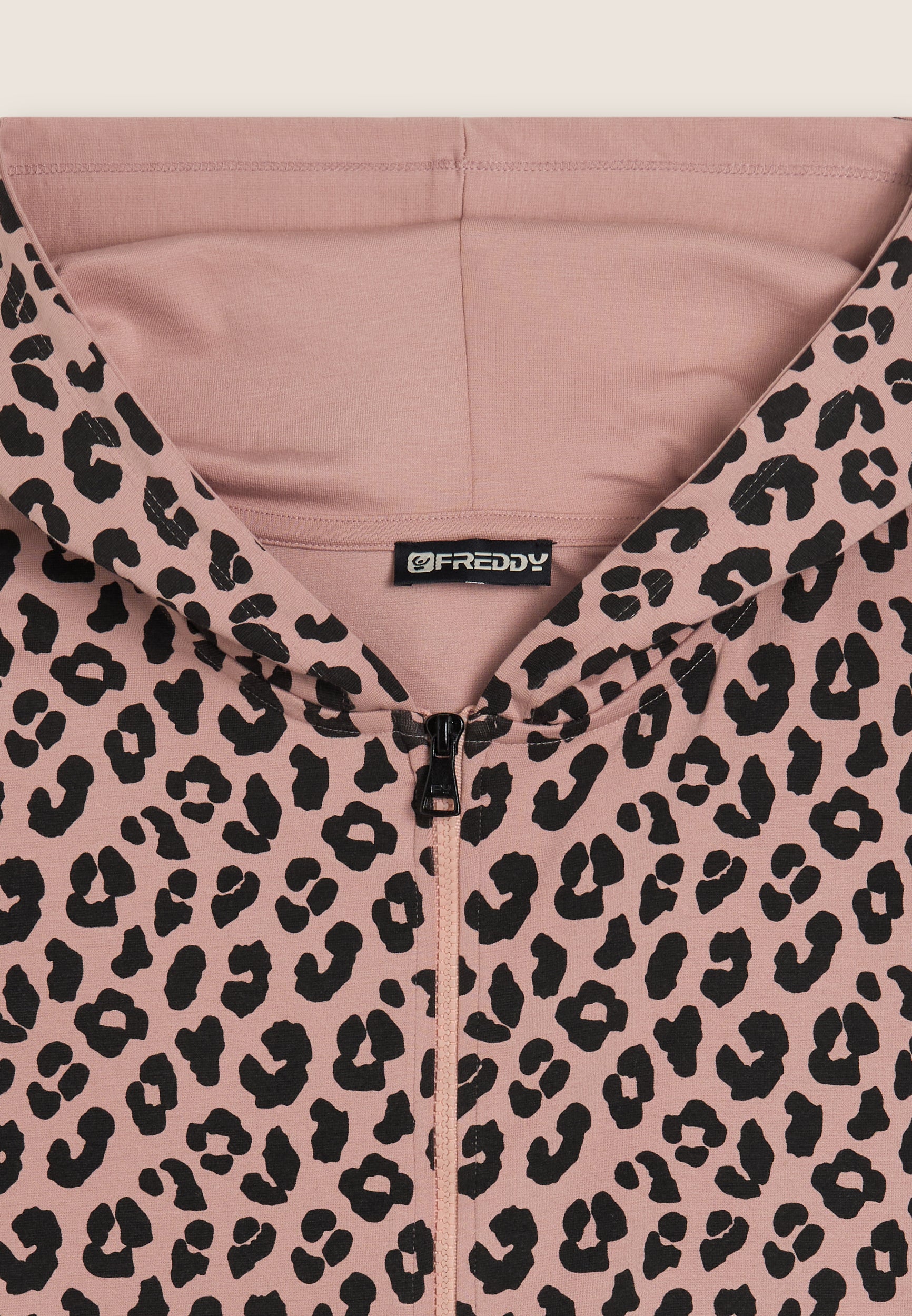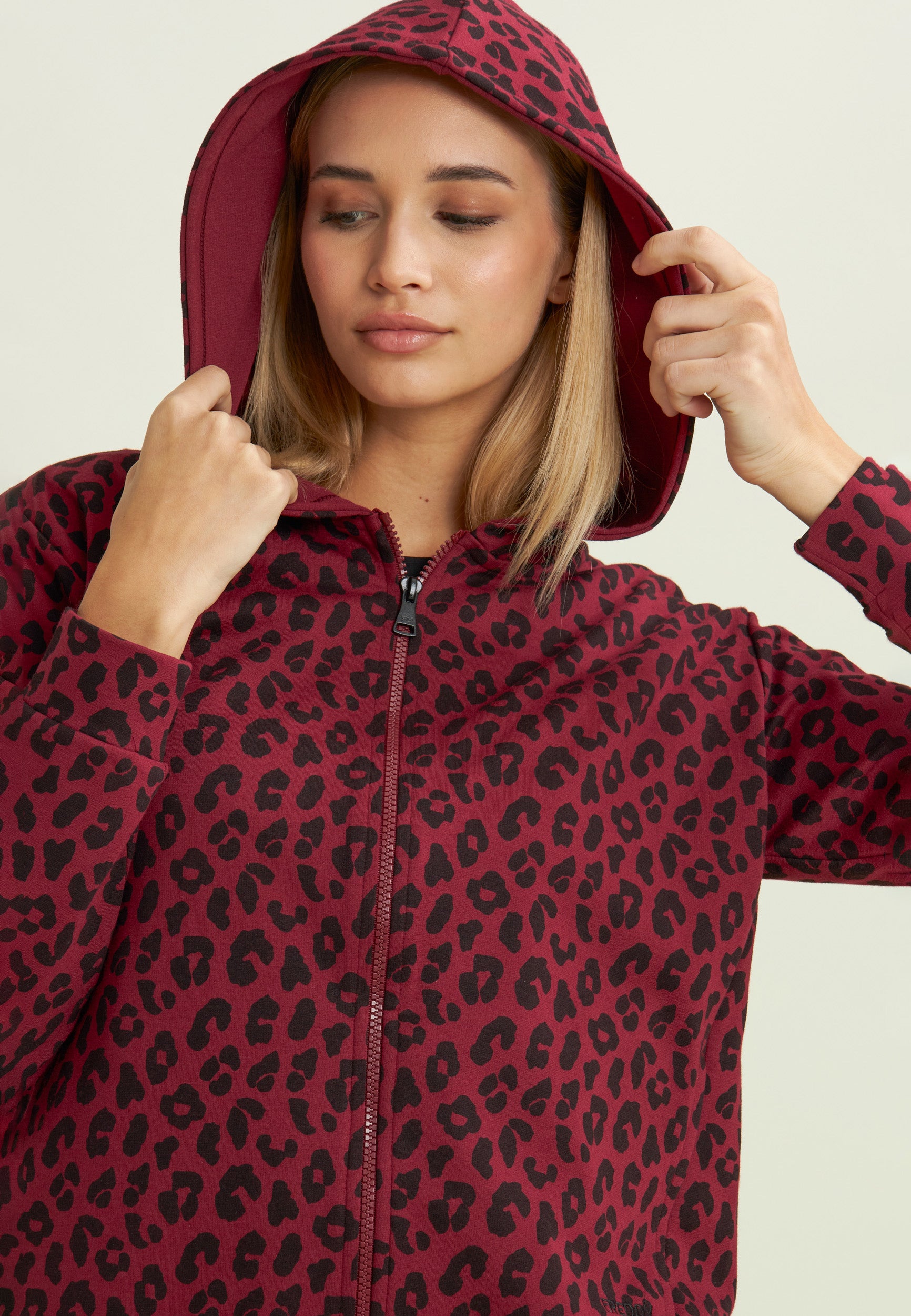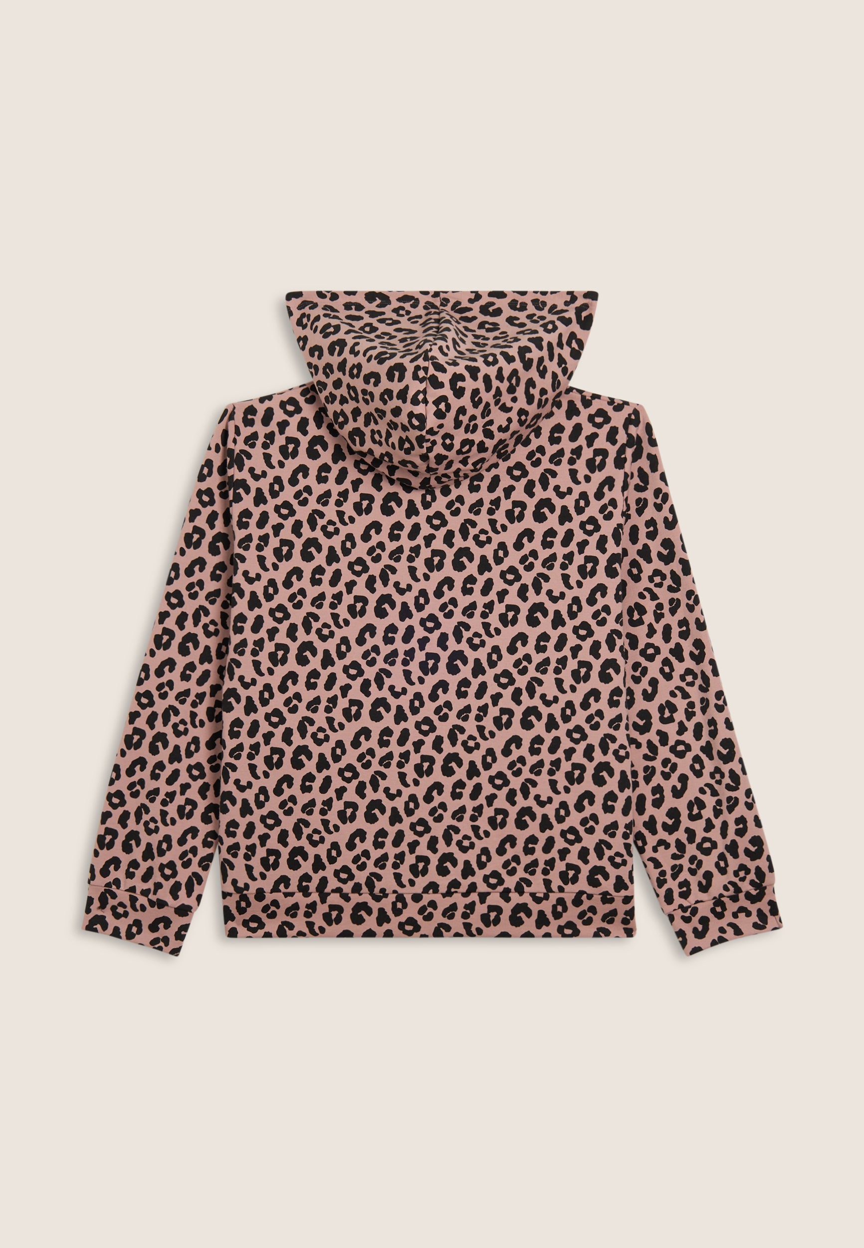 Felpa full-zip da donna in felpa garzata elasticizzata con stampa fantasia leopardata all-over. Cappuccio foderato in jersey, grafica con logo sul fondo sinistro e tasche interne per il massimo della praticità.