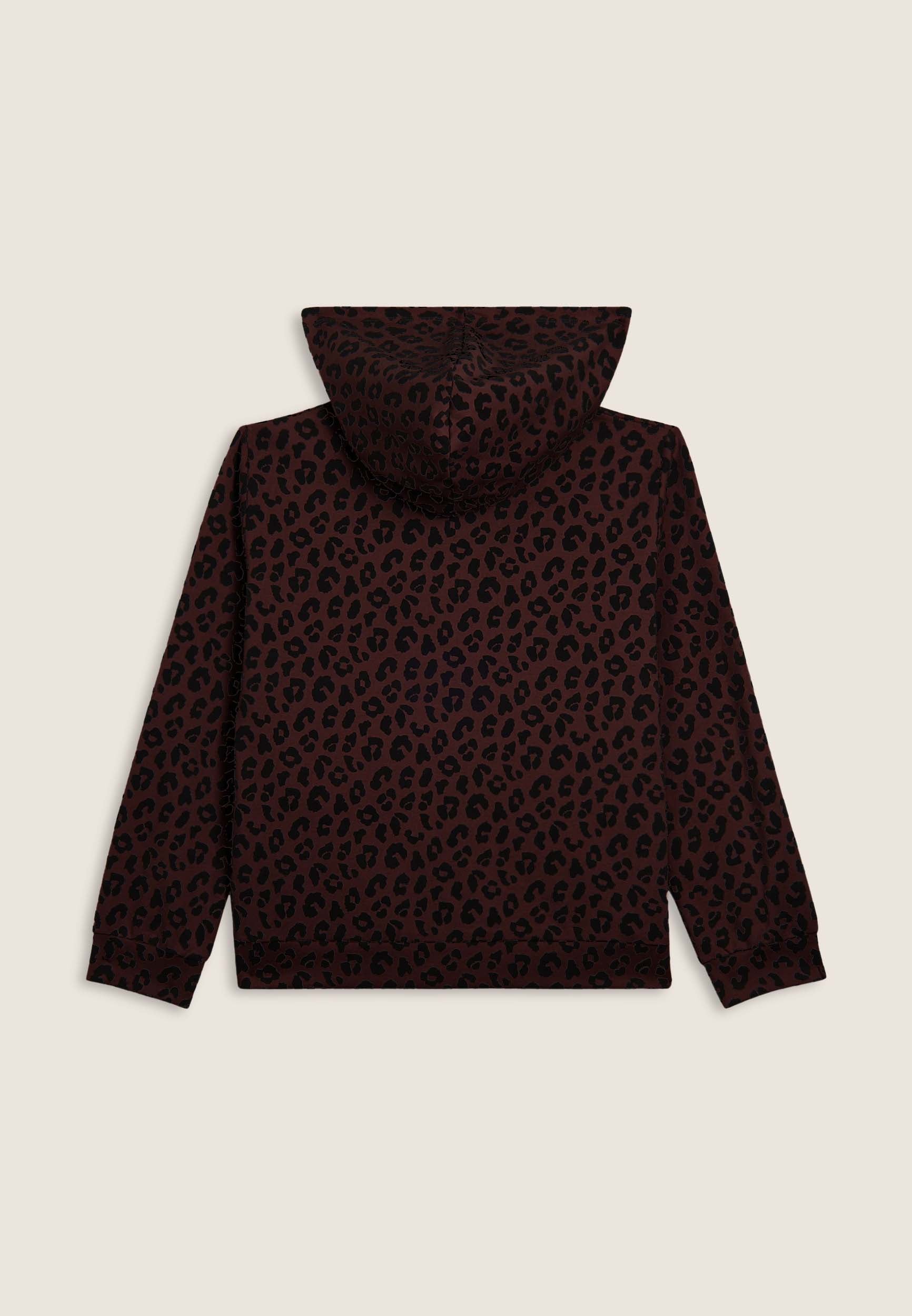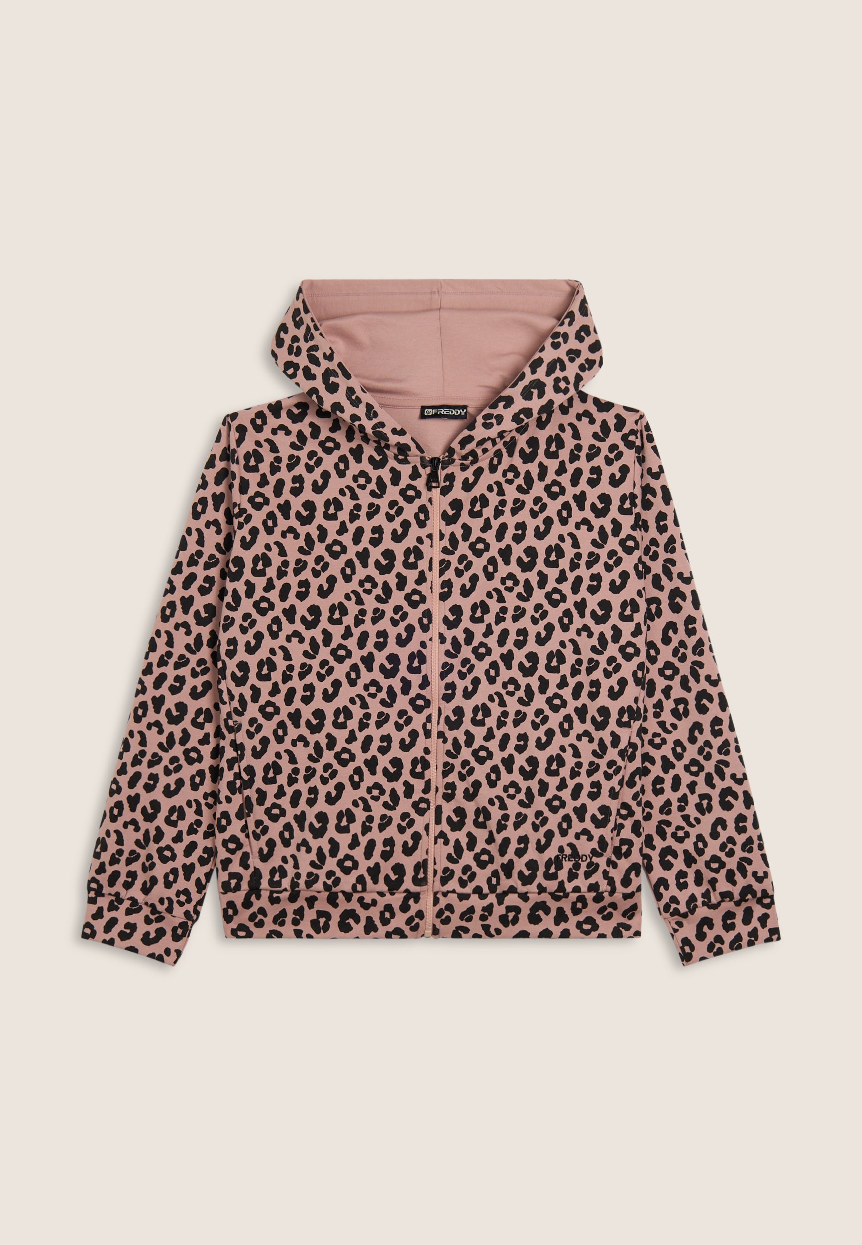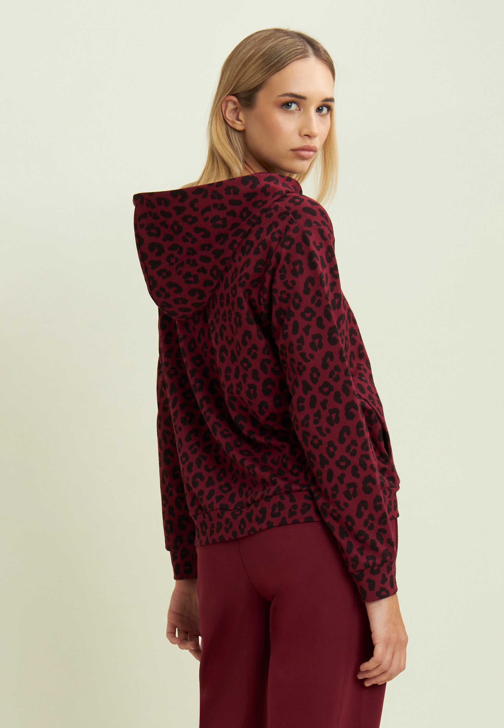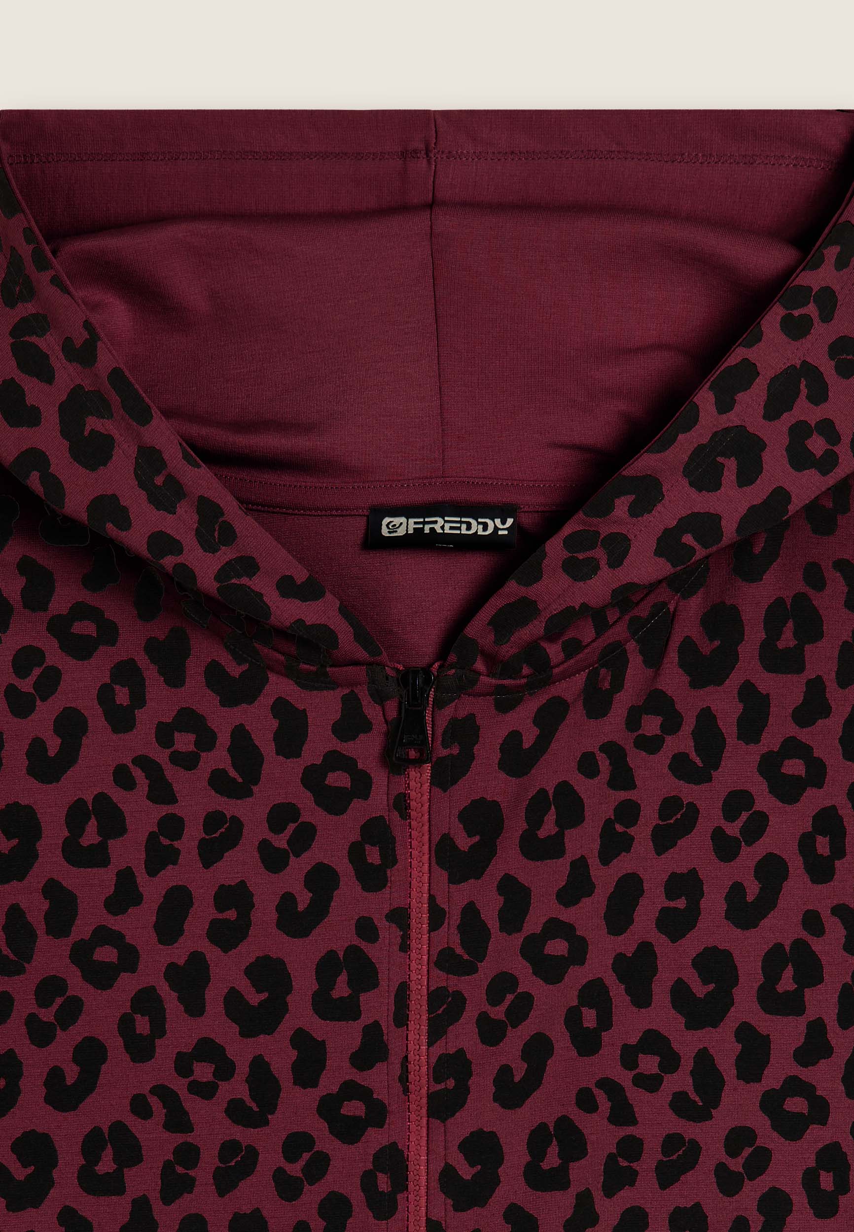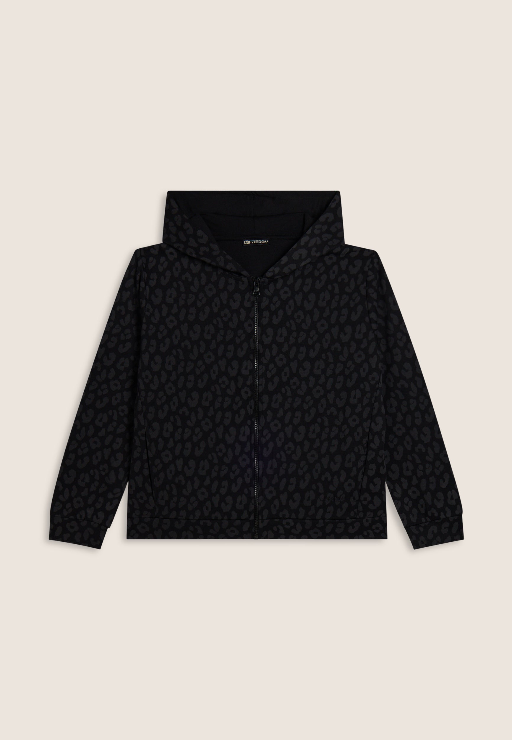 Felpa full-zip da donna in felpa garzata elasticizzata con stampa fantasia leopardata all-over. Cappuccio foderato in jersey, grafica con logo sul fondo sinistro e tasche interne per il massimo della praticità.