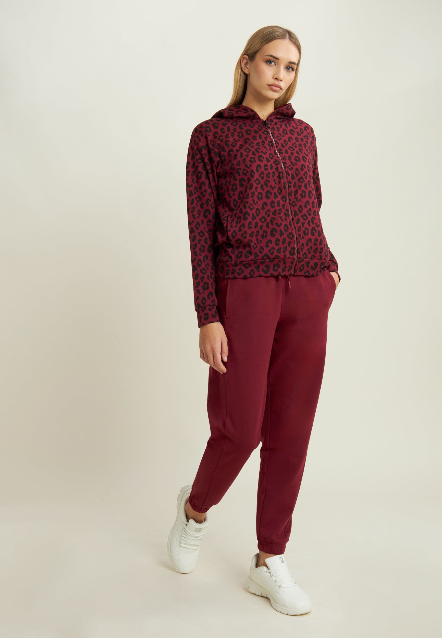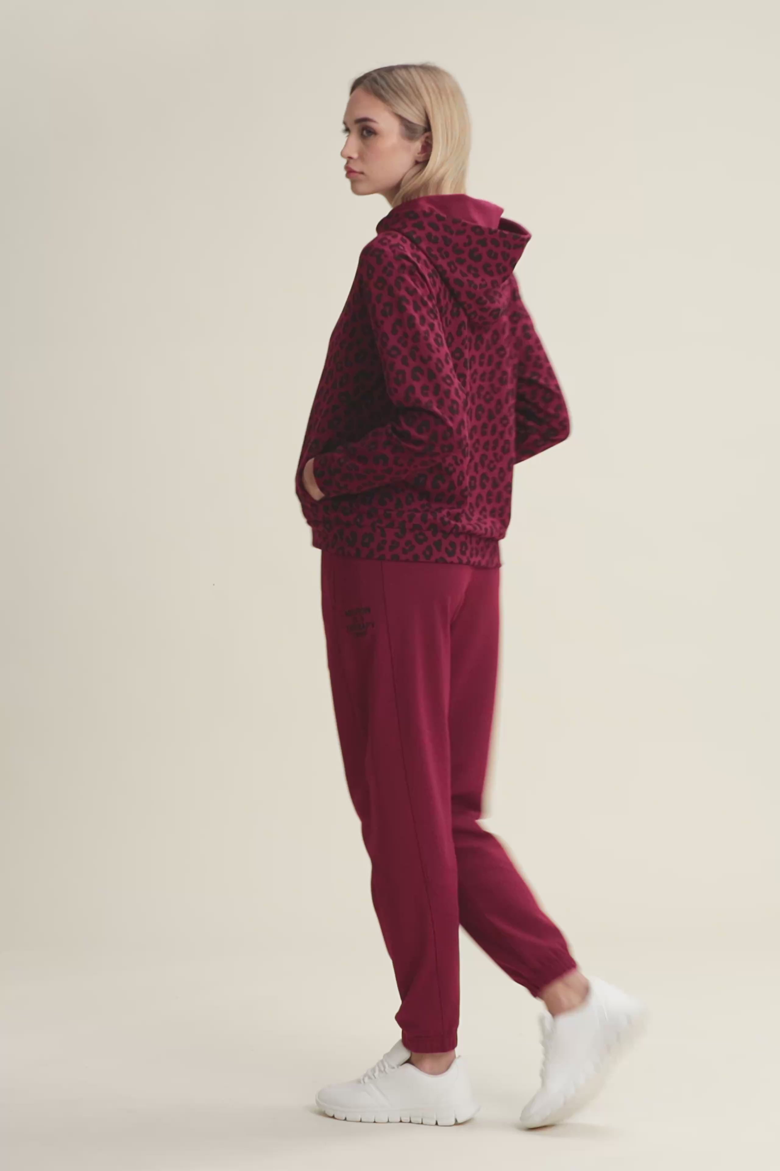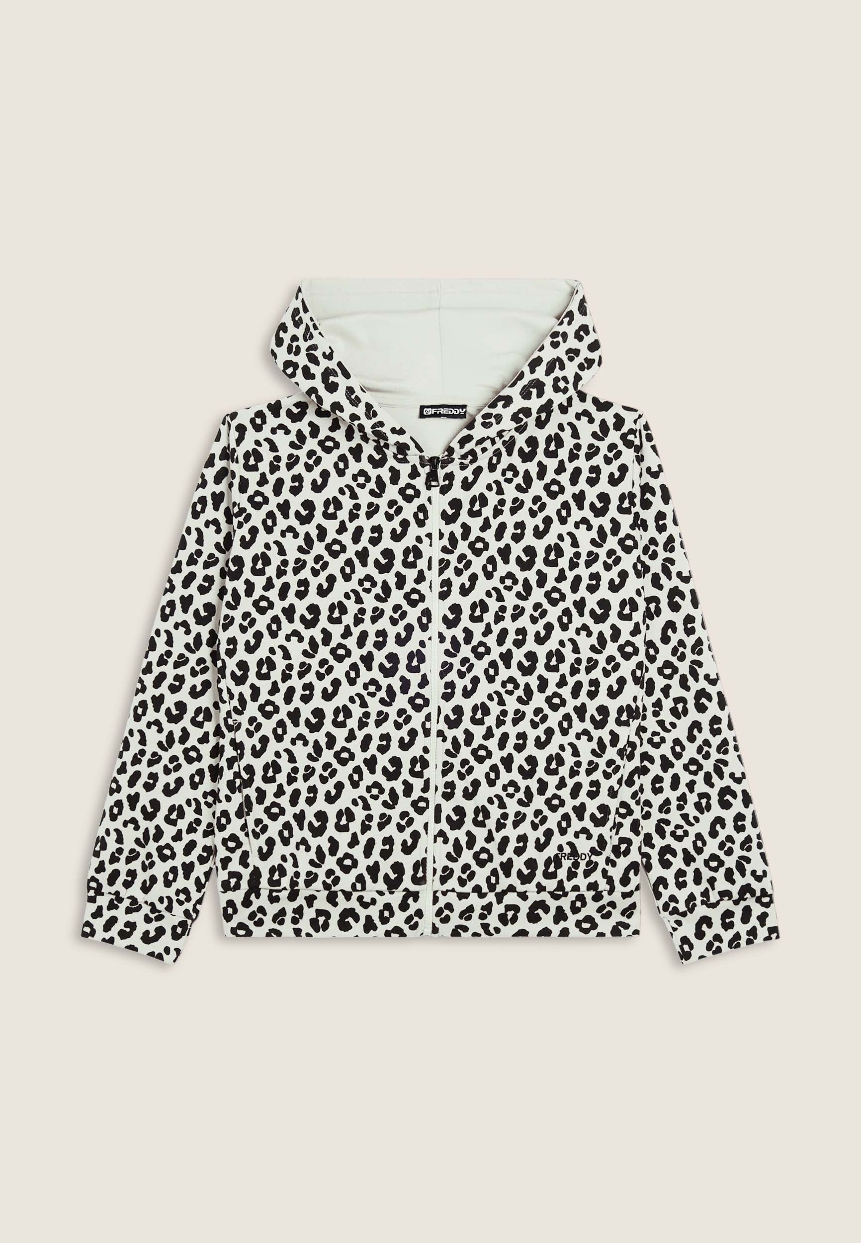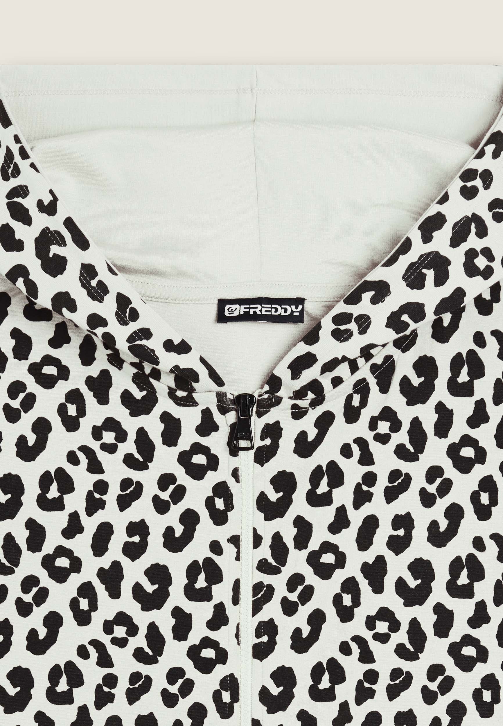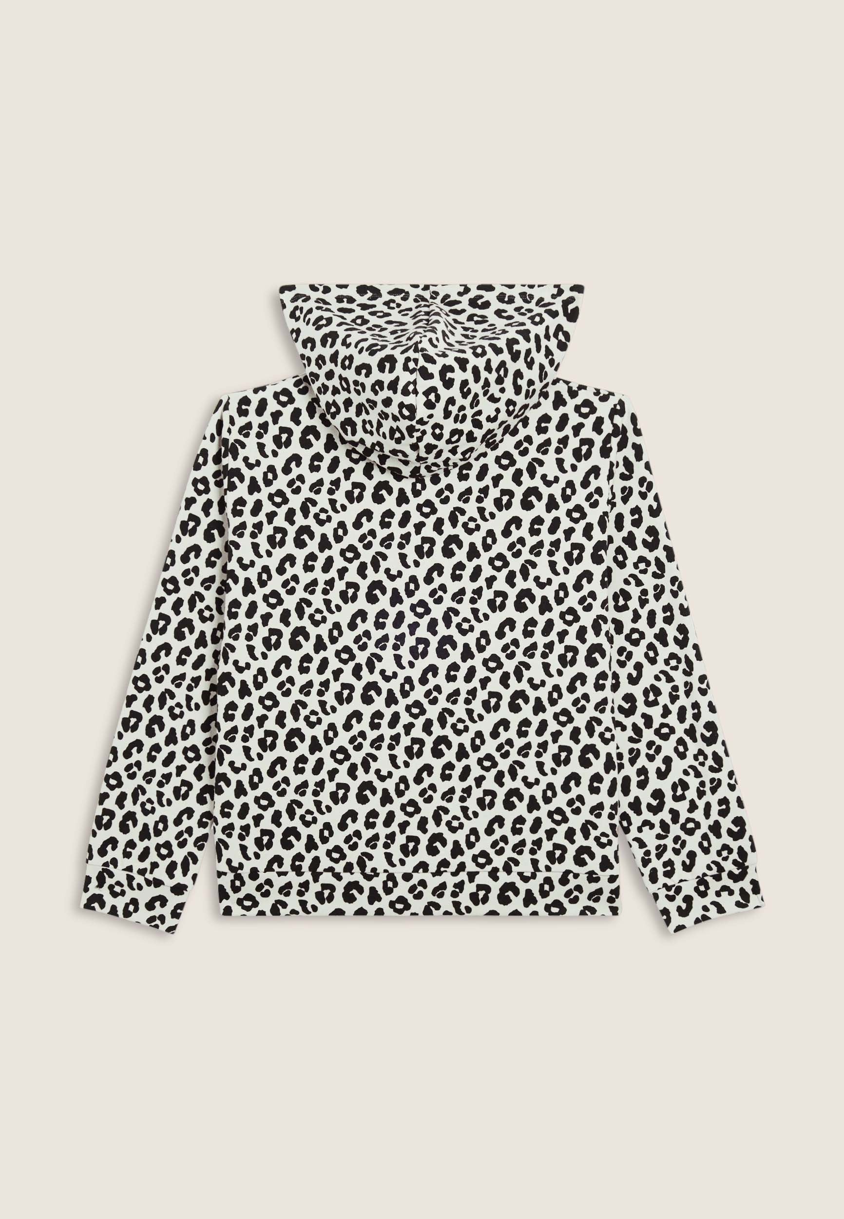 Felpa full-zip da donna in felpa garzata elasticizzata con stampa fantasia leopardata all-over. Cappuccio foderato in jersey, grafica con logo sul fondo sinistro e tasche interne per il massimo della praticità.
