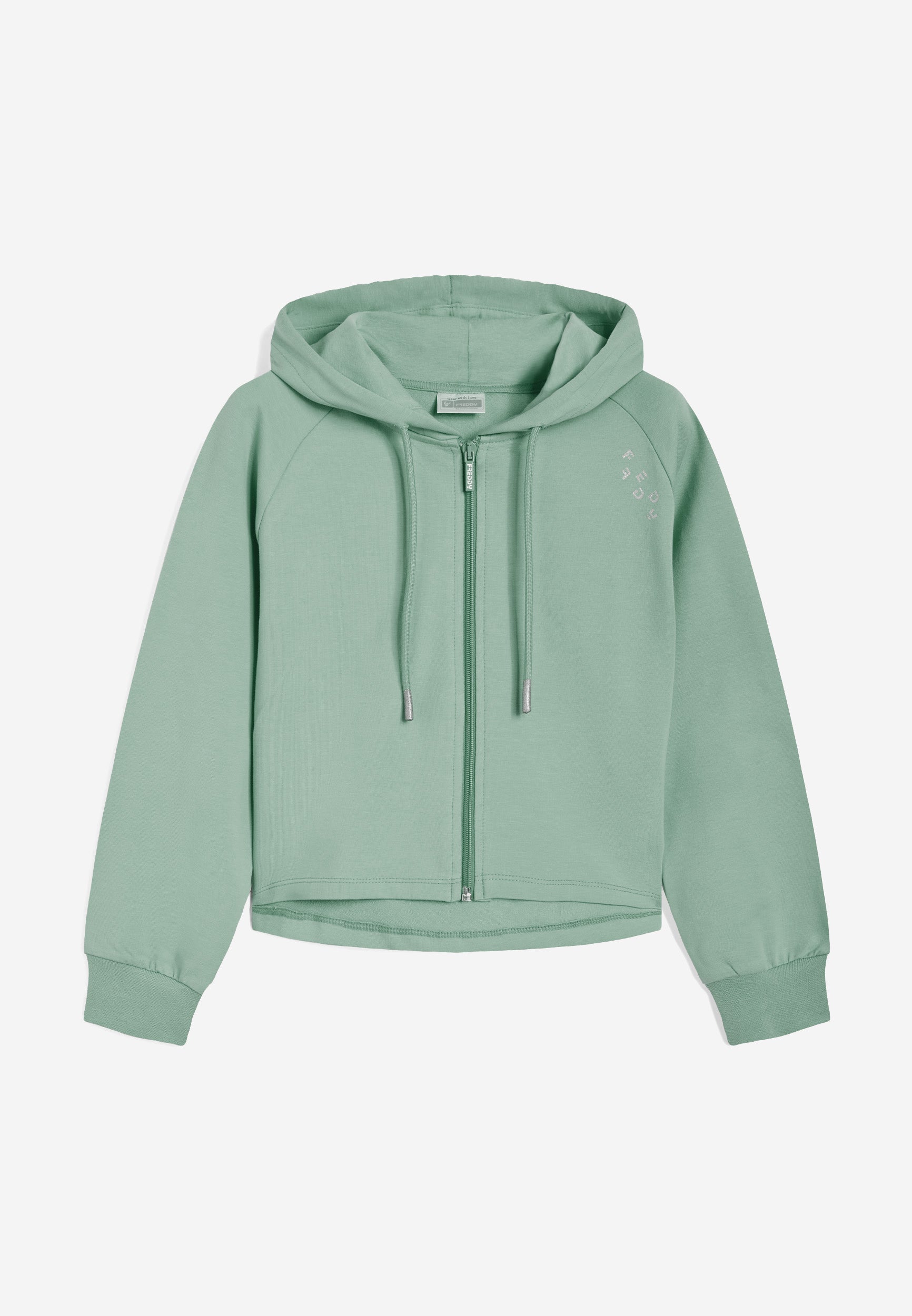 Felpa maniche raglan da bambina con zip e cappuccio