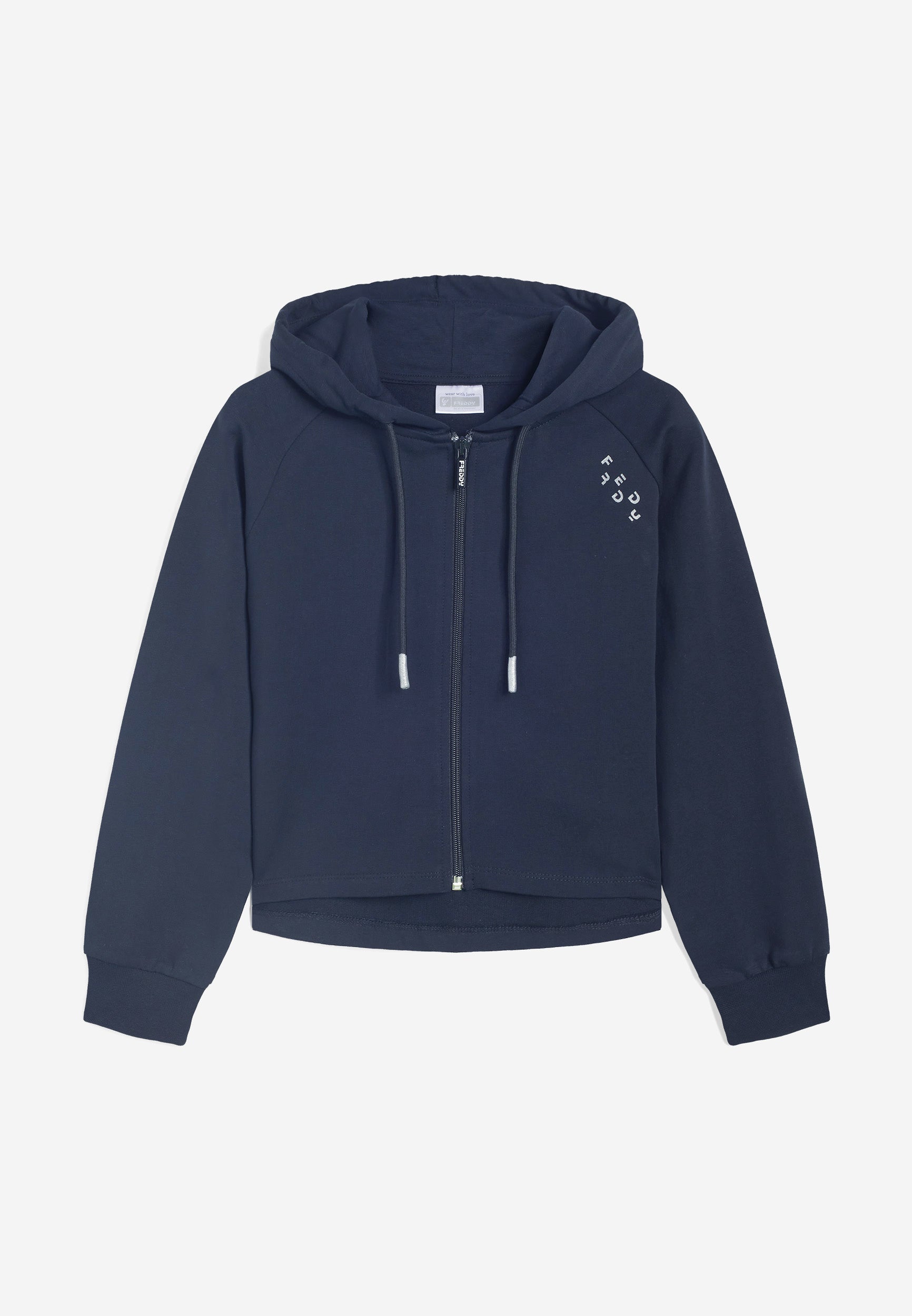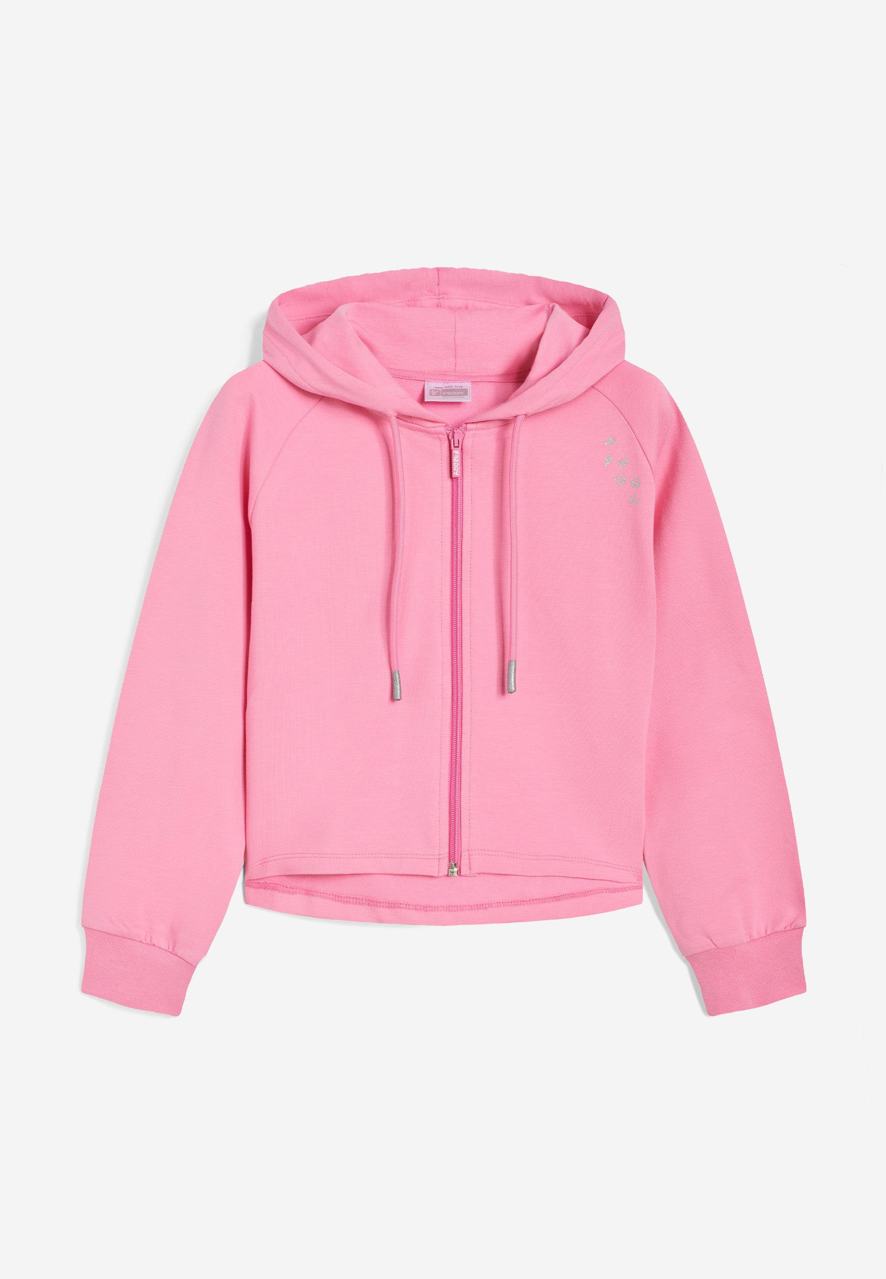 La chiusura full zip e il design confortevole rendono questa felpa da bambina e ragazza l'alleata perfetta per il tempo libero e le attività quotidiane all’insegna del piacere per la libertà di movimento. Il piccolo logo stampato in glitter argento dona un tocco di luce al capo.
