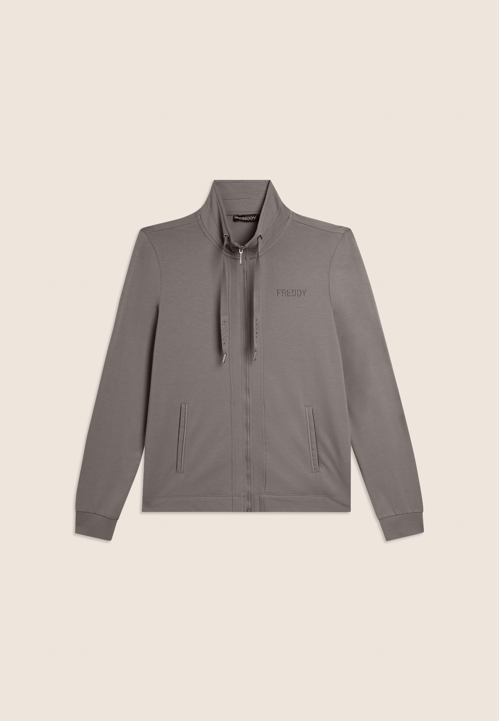 Felpa Zip e Collo Alto con logo FREDDY in strass