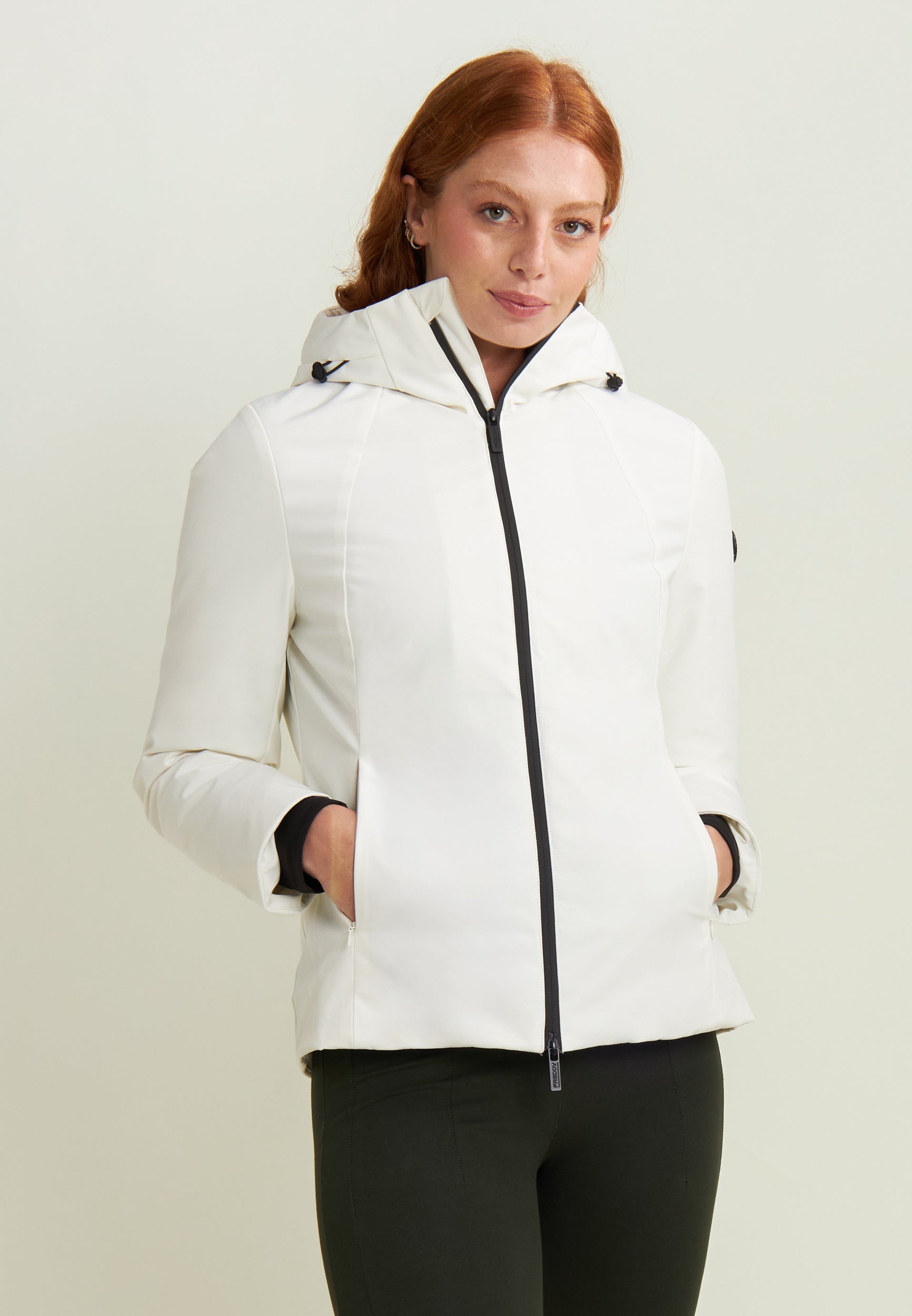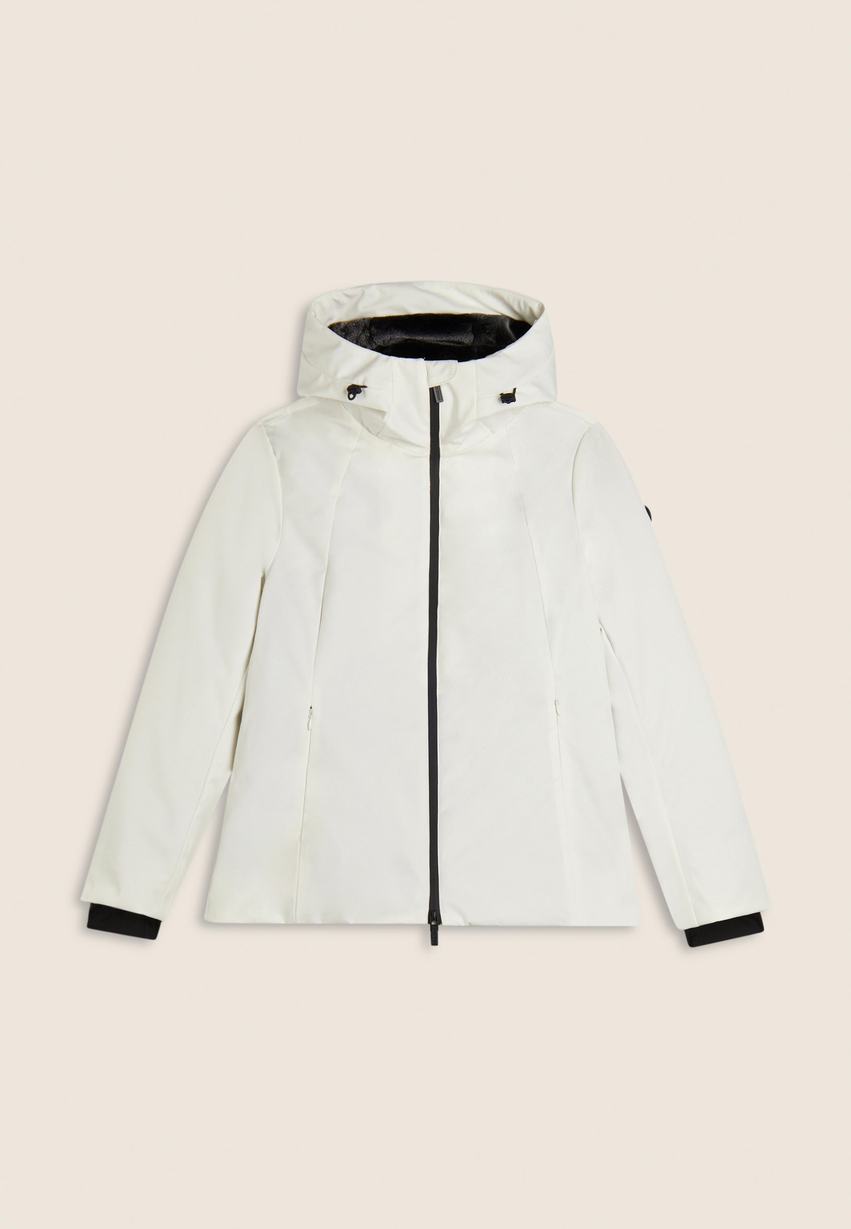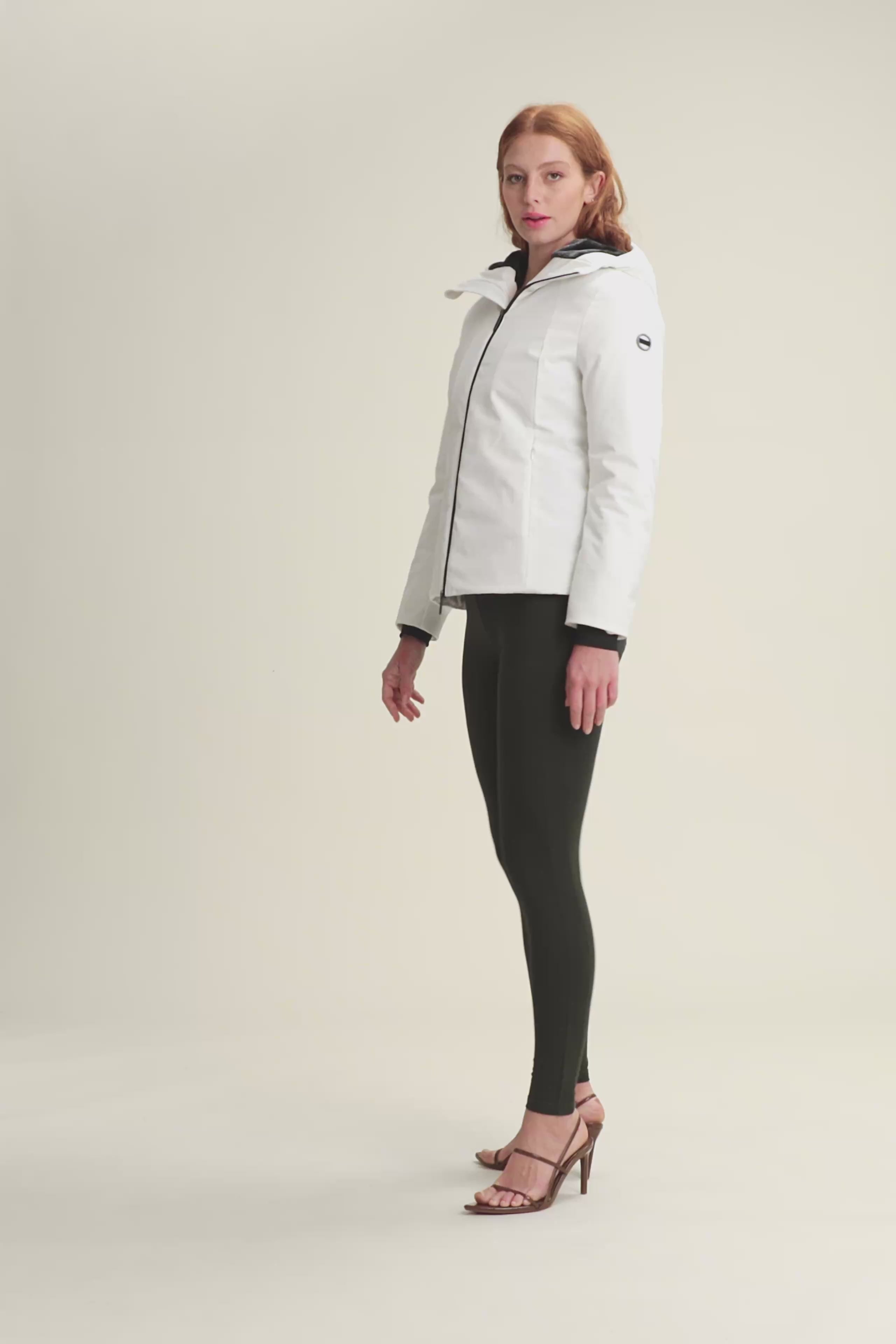 Giacca a vento da donna perfetta per l’inverno, con esterno waterproof e imbottitura in fake-down animal-friendly. Vestibilità regular e lunghezza ai fianchi, offre protezione da vento e umidità. Il collo alto e il cappuccio con coulisse assicurano comfort personalizzato, mentre i polsini interni migliorano l’isolamento termico. Pratica chiusura full zip con doppio cursore e tasche frontali con zip. Logo con strass sulla manica per un tocco femminile.
