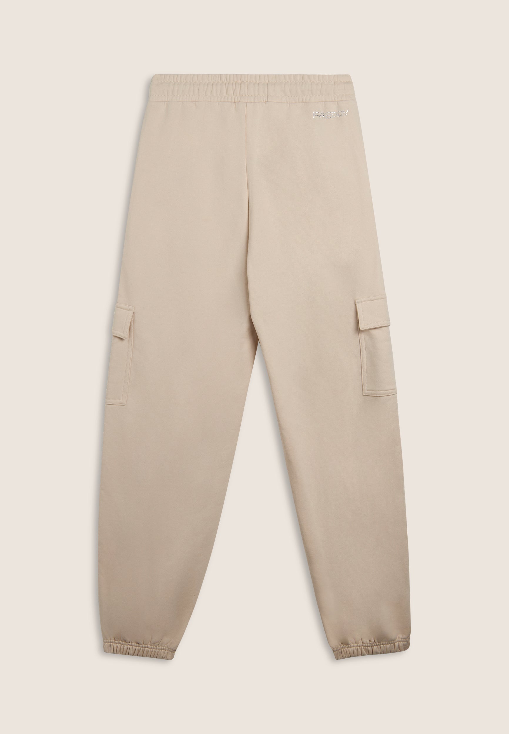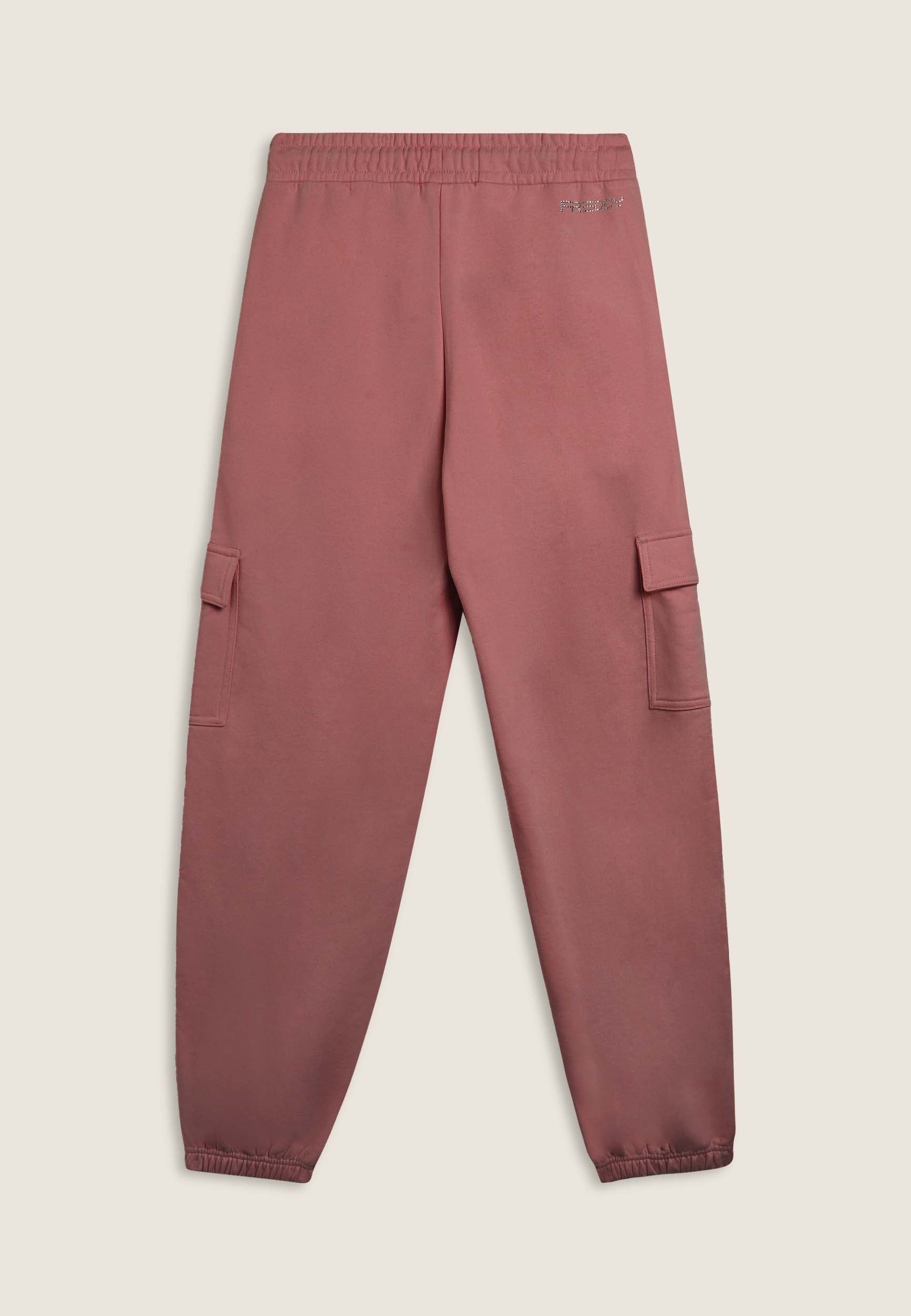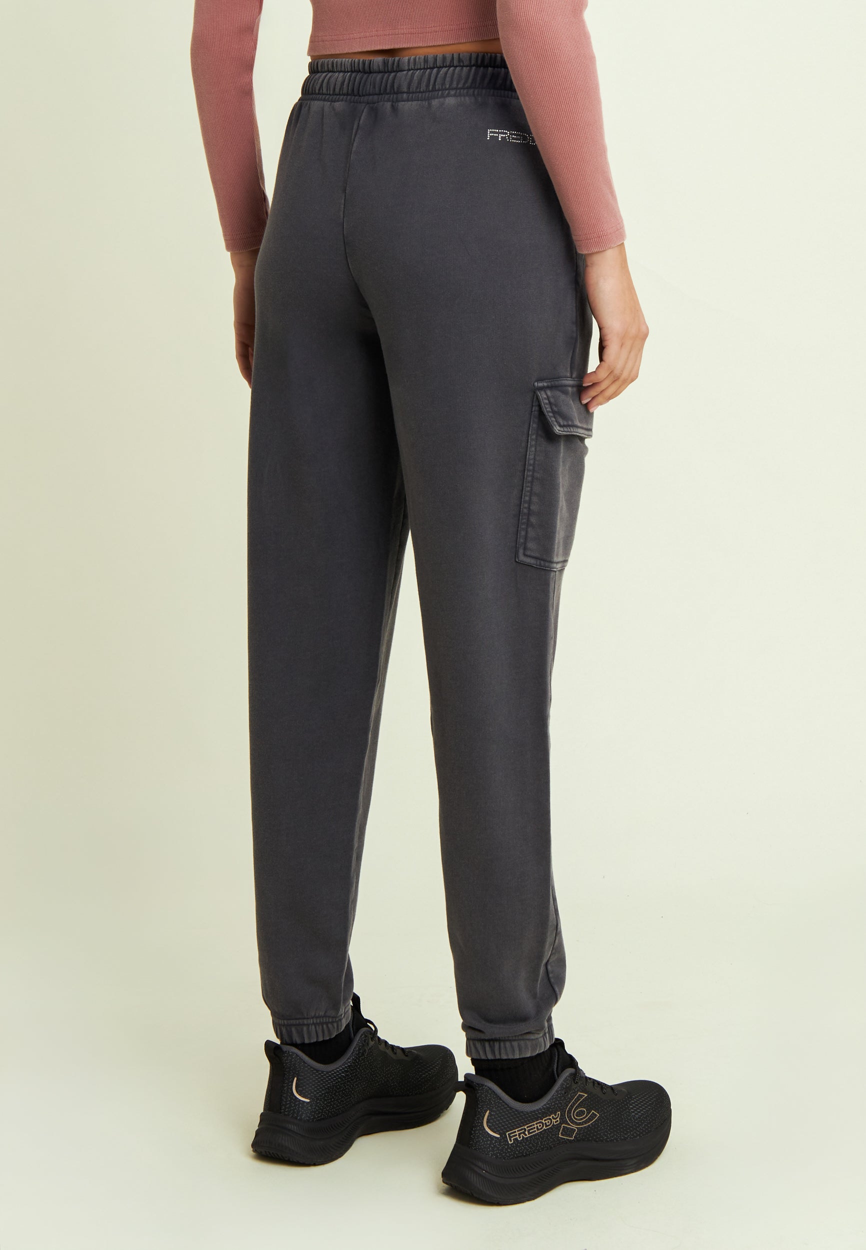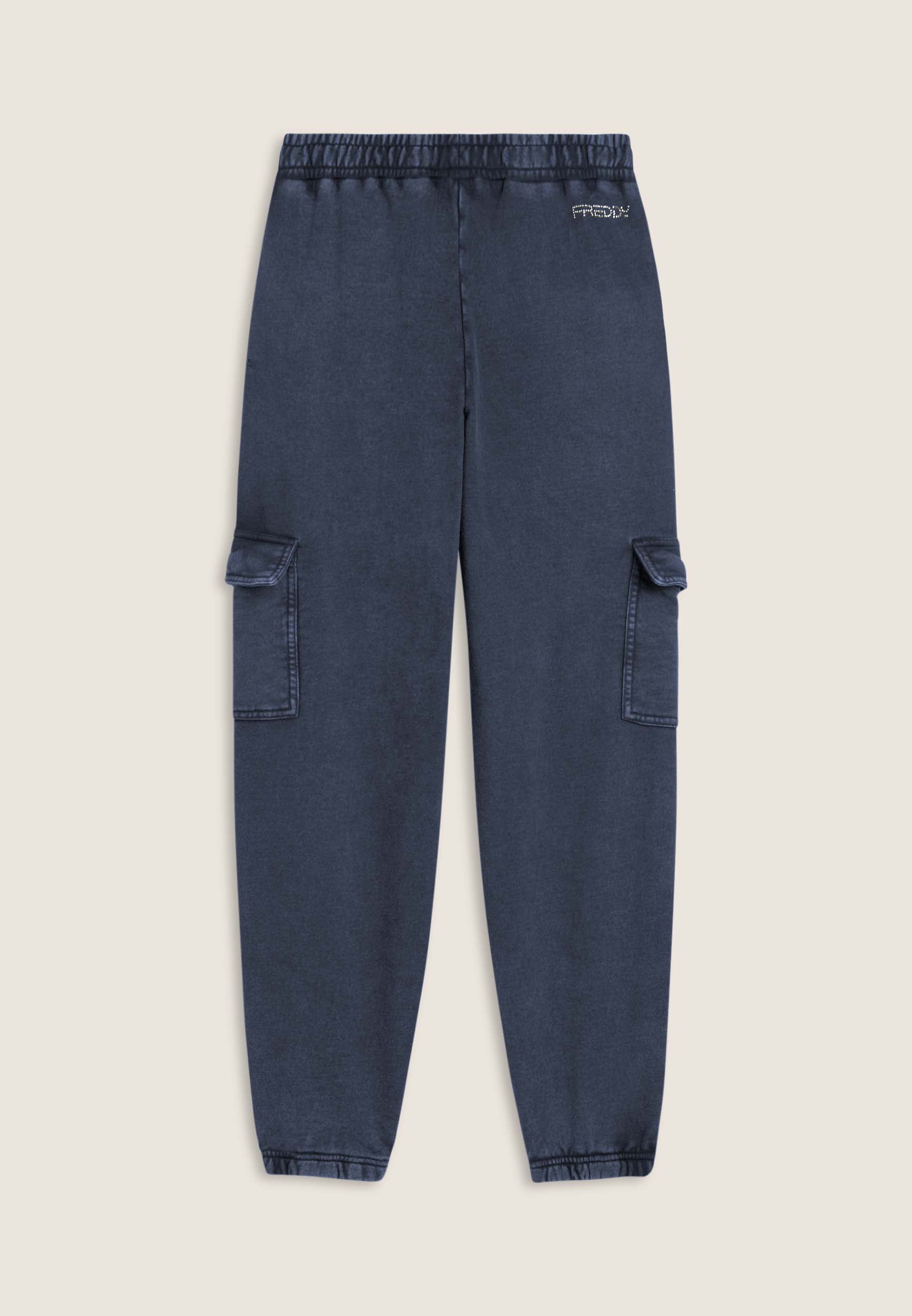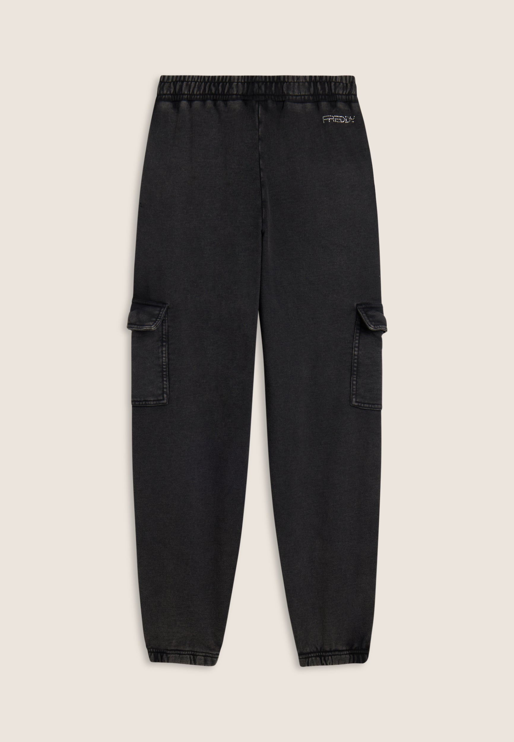 Pantaloni da donna in stile cargo con trattamento acid wash effect su French terry, che conferisce al capo un carattere autentico e sfumato. Hanno vestibilità regolare, gamba regular con fondo elasticizzato e vita regular con coulisse. Pratici e funzionali, grazie alle tasche alla francese e ai tasconi laterali. La grafica con Mickey Mouse e strass si abbina al logo Disney sul fianco e al logo FREDDY in strass sul retro.