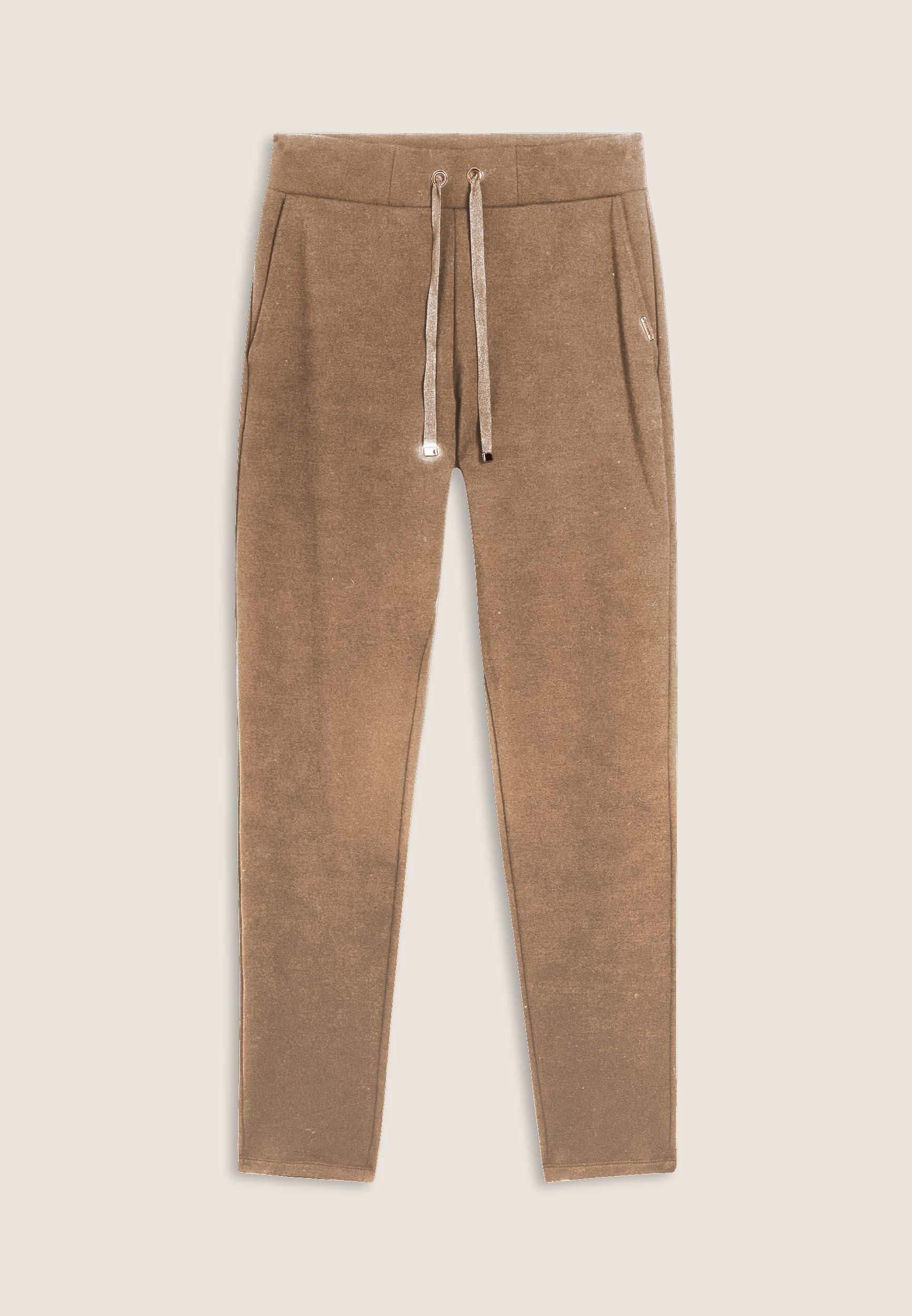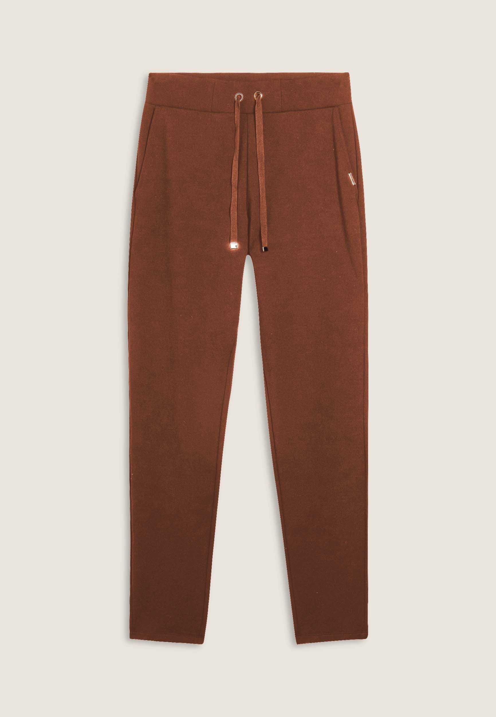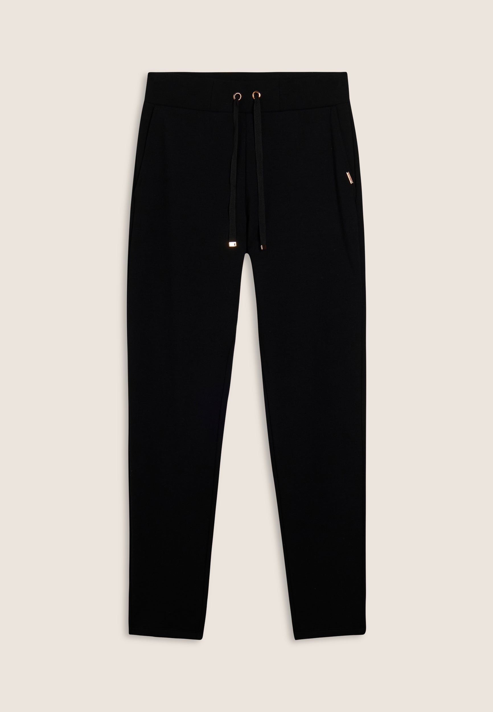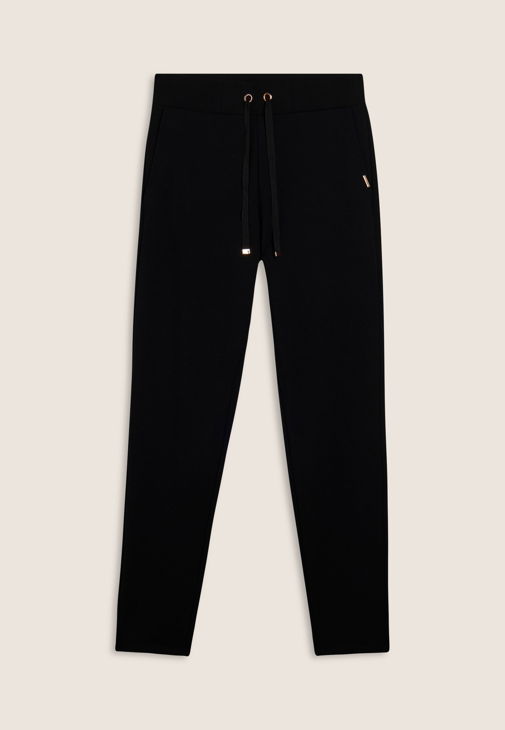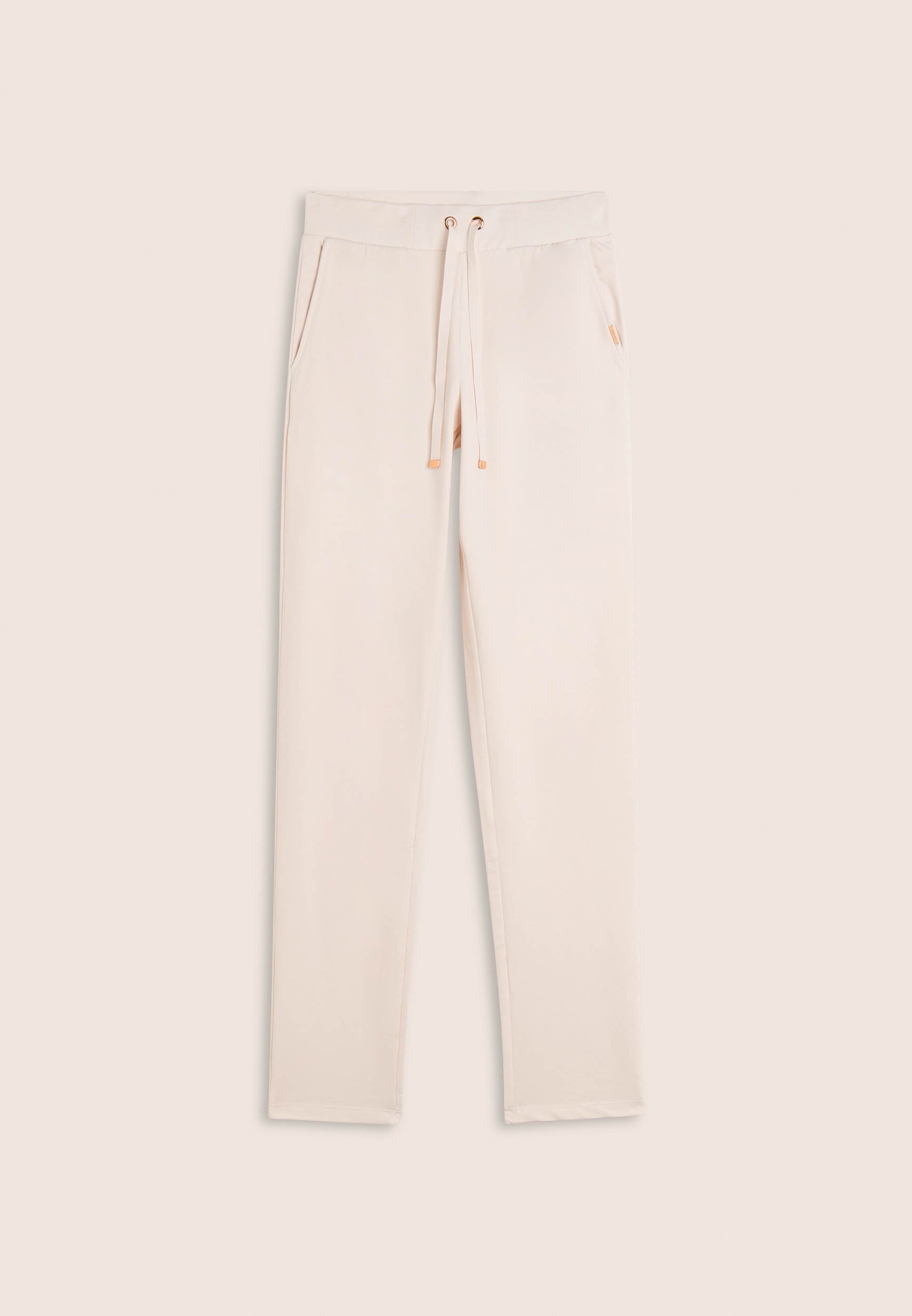 Pantaloni da donna a gamba dritta, in felpa modal garzata elasticizzata che assicura comfort e morbidezza. Con vita regular in costina e coulisse regolabile, tasche alla francese e placchetta logo sul bordo tasca sinistra.
