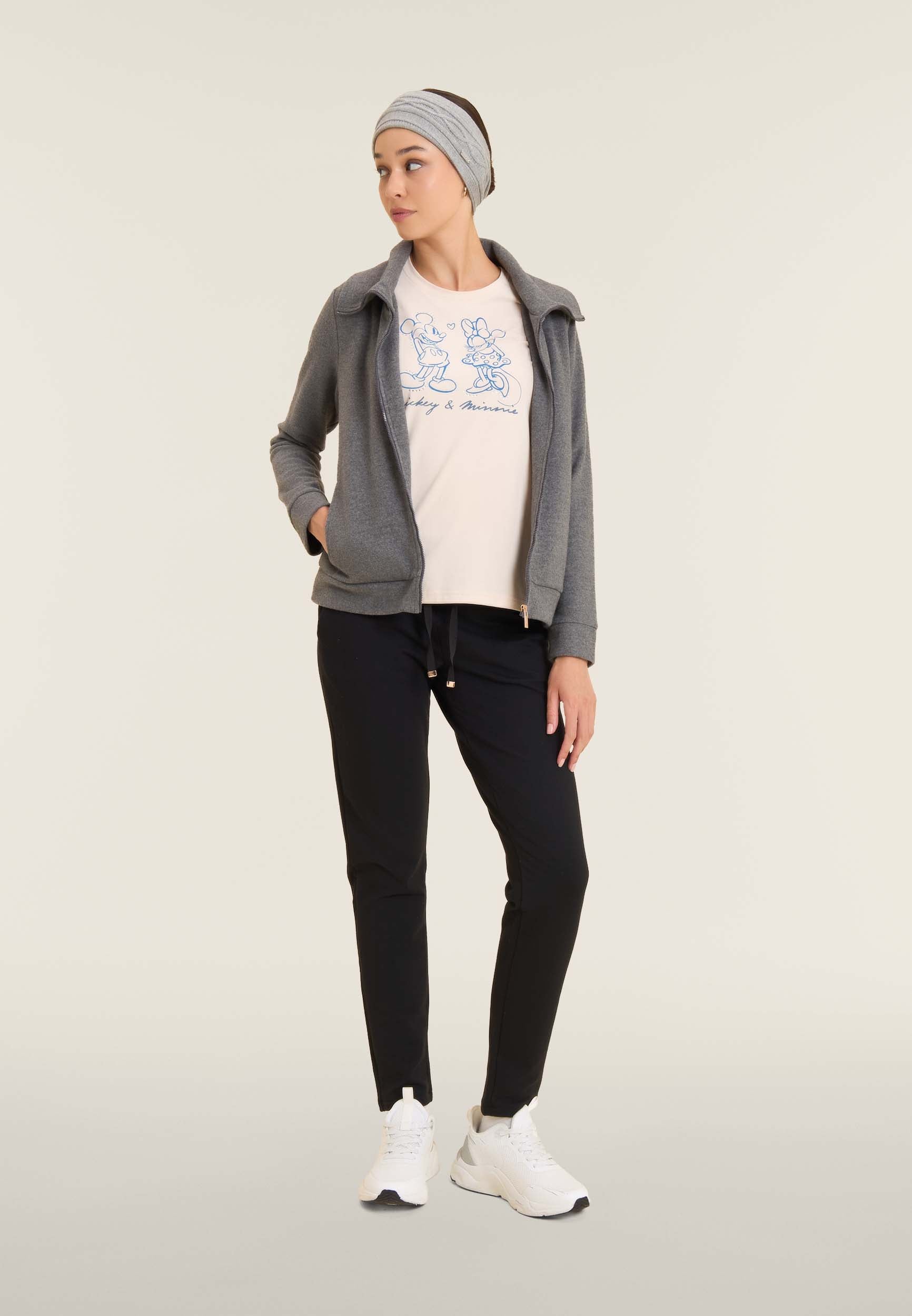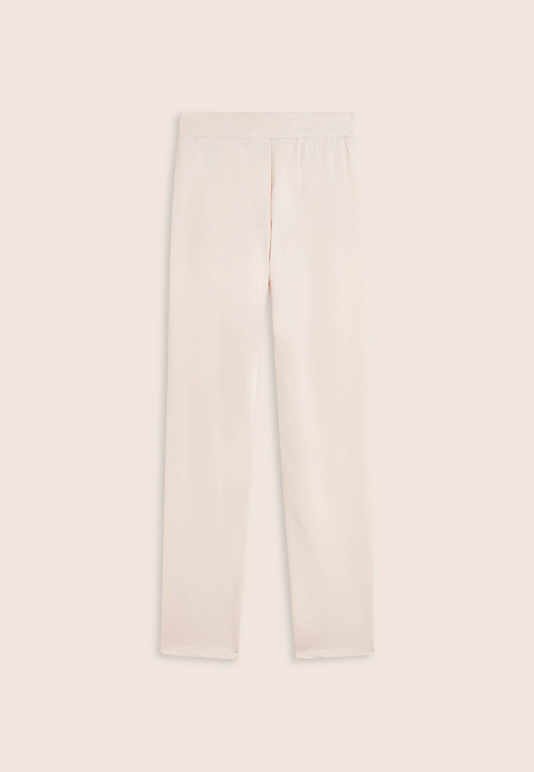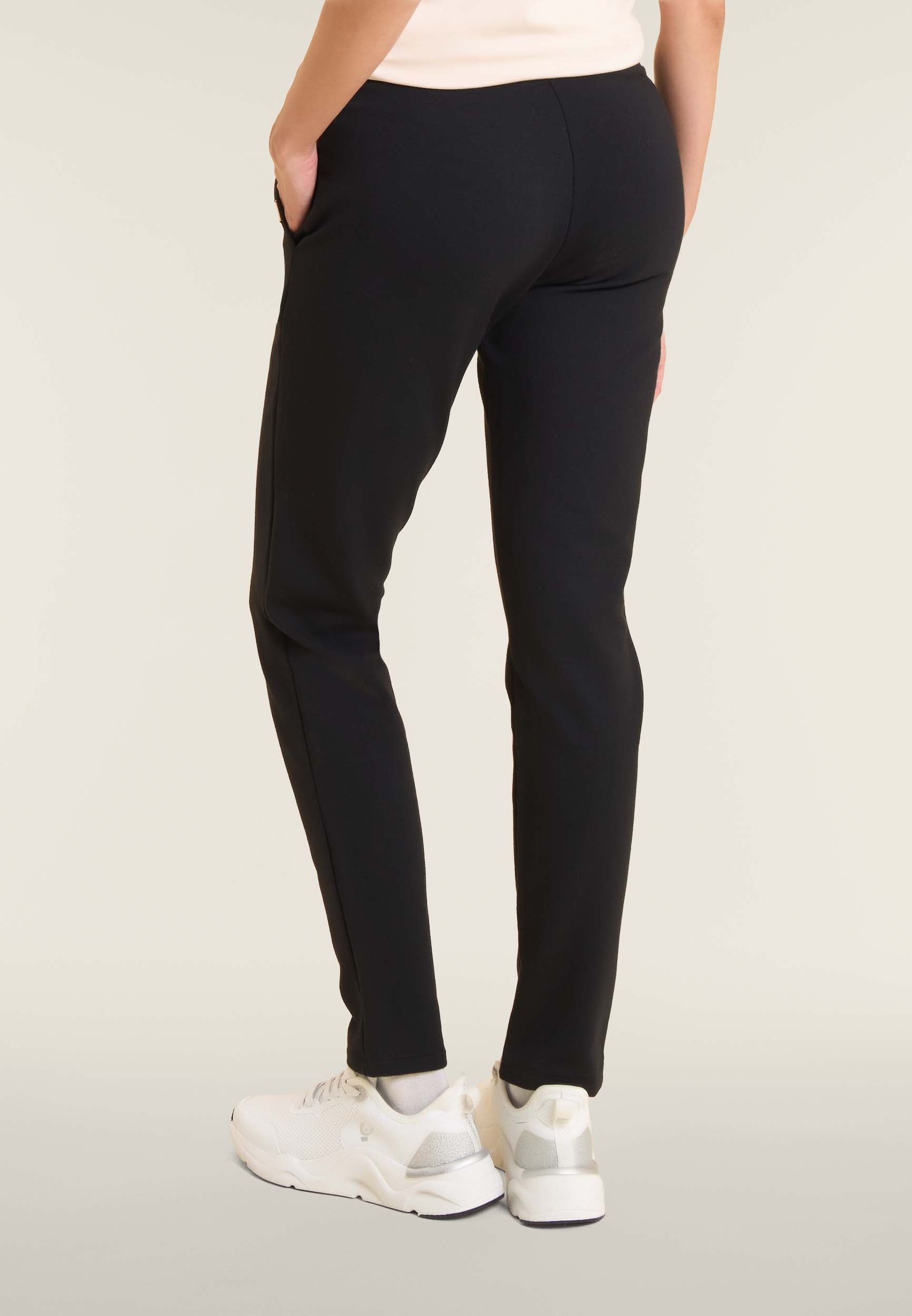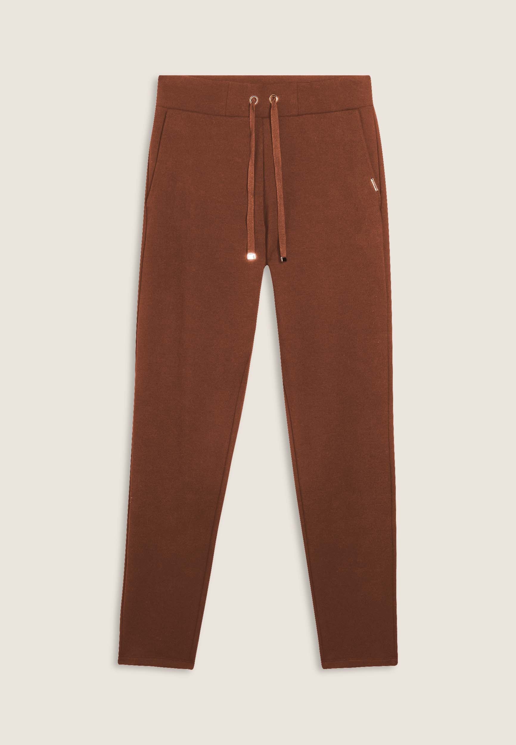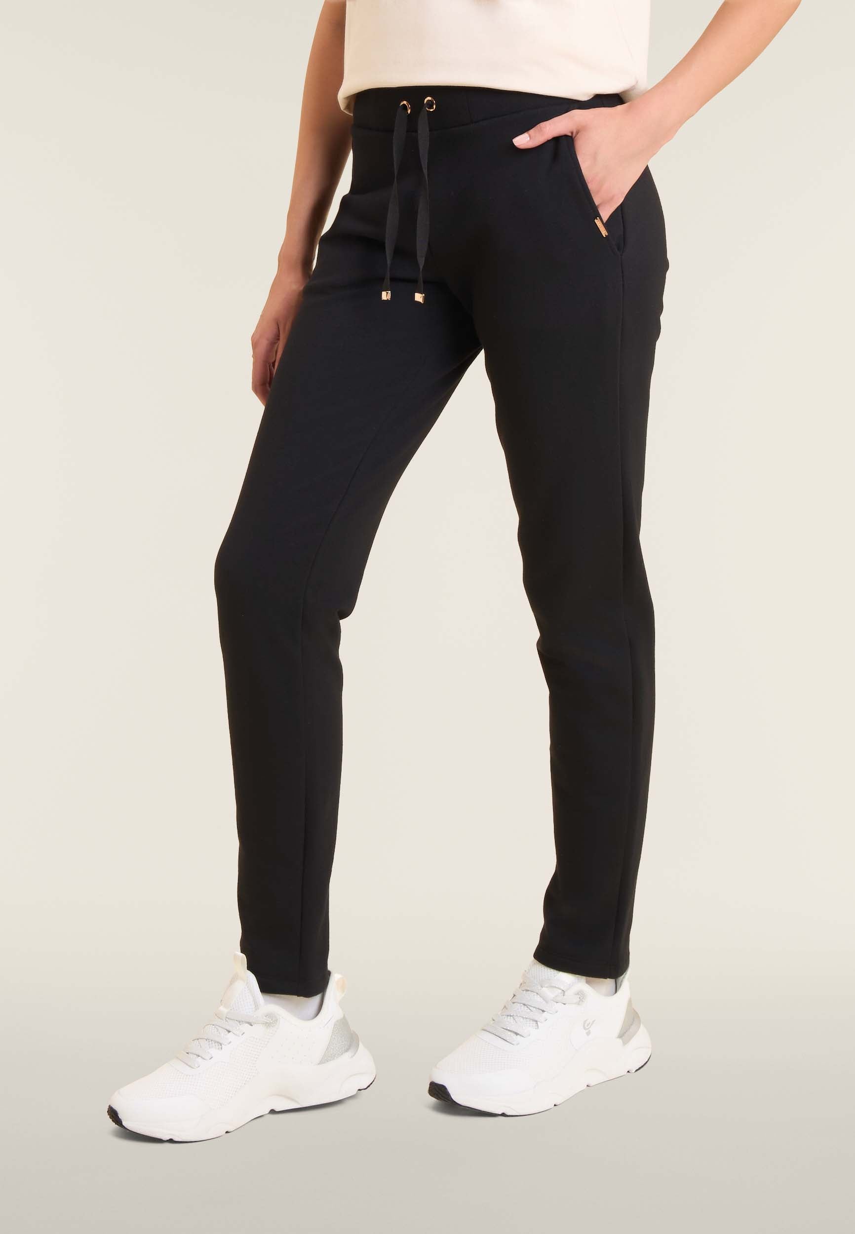 Pantaloni da donna a gamba dritta, in felpa modal garzata elasticizzata che assicura comfort e morbidezza. Con vita regular in costina e coulisse regolabile, tasche alla francese e placchetta logo sul bordo tasca sinistra.