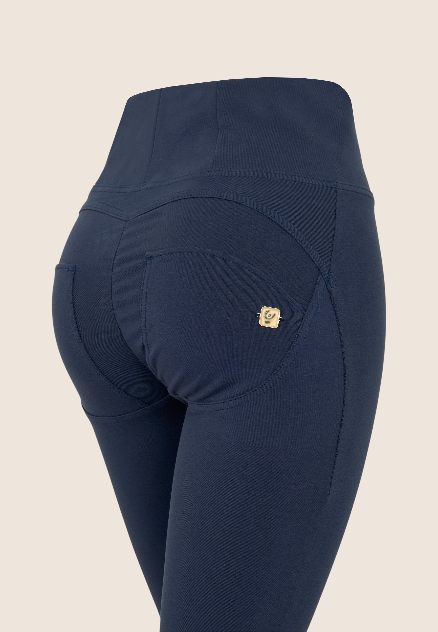 Pantaloni push up della linea WR.UP® in cotone organico elasticizzato concepiti per valorizzare le linee senza rinunciare al piacere della libertà di movimento. Questo modello presenta vita alta chiusa da zip frontale che avvolge il girovita, lunghezza 7/8 alla caviglia che slancia la gamba e vestibilità superskinny che dona la massima aderenza.